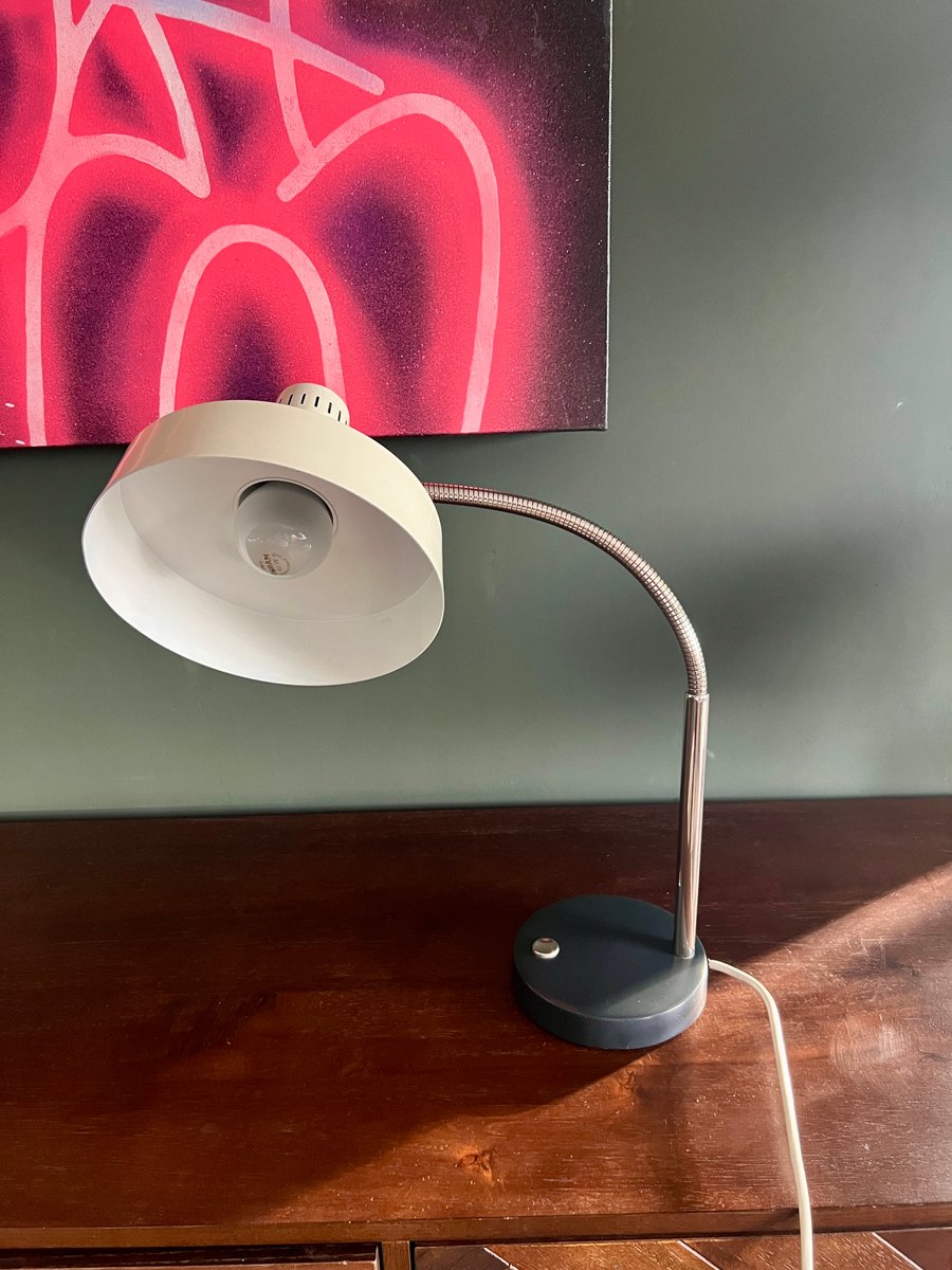 Lampada da scrivania Mid-Century con collo di cigno e cappello da strega di Hillebrand Lighting, Germania, anni '50