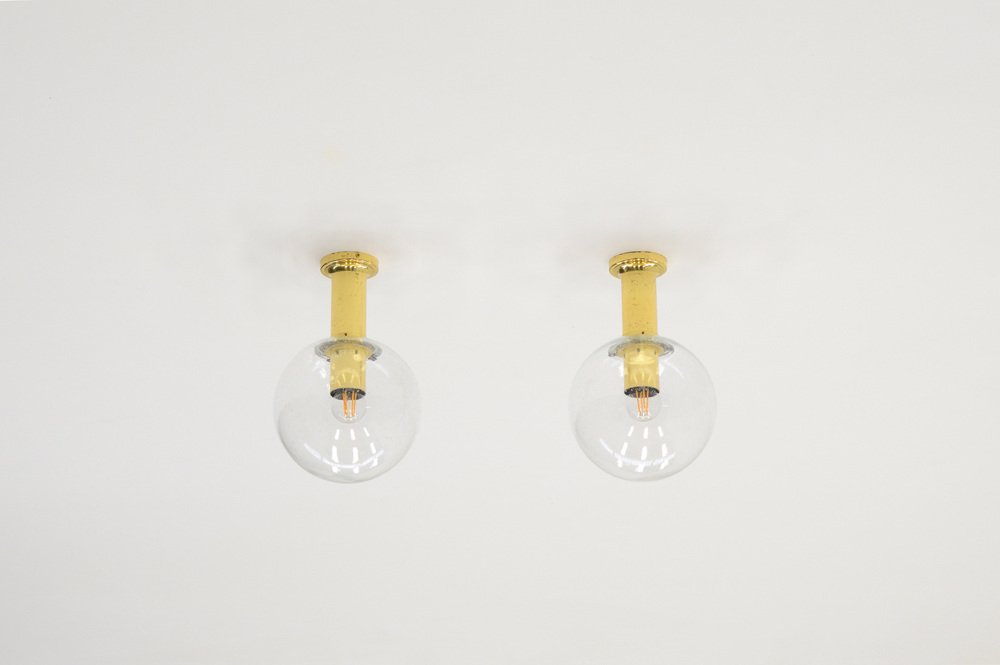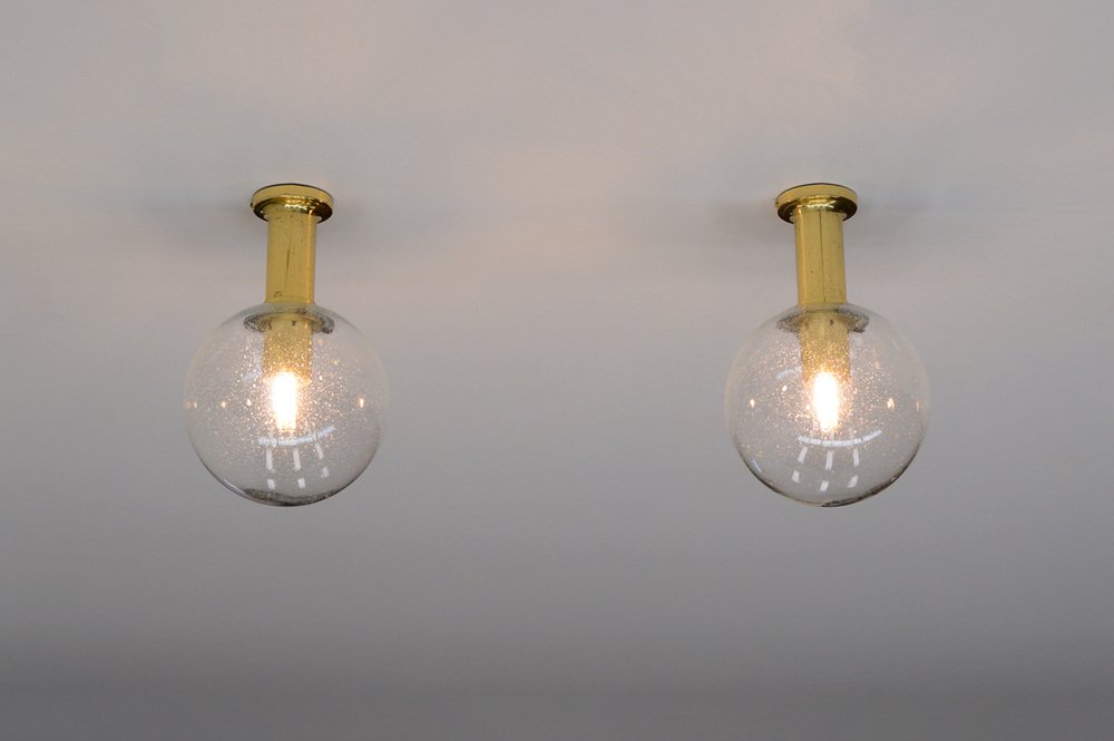 Lampada da soffitto in ottone di Glashütte Limburg, Germania, anni '70