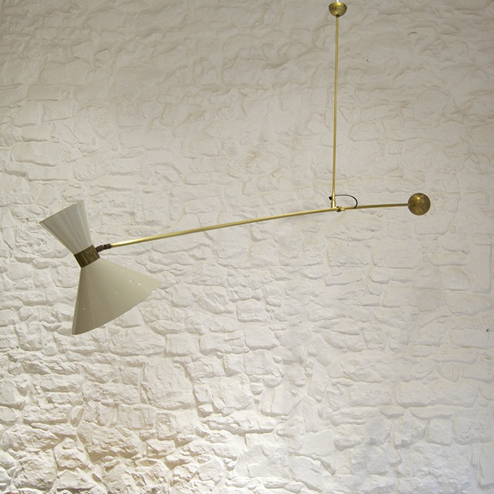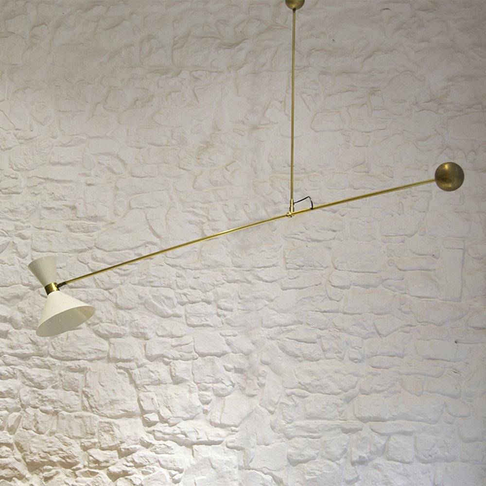 Lampada da soffitto in ottone in stile Arredoluce, Italia, anni '60