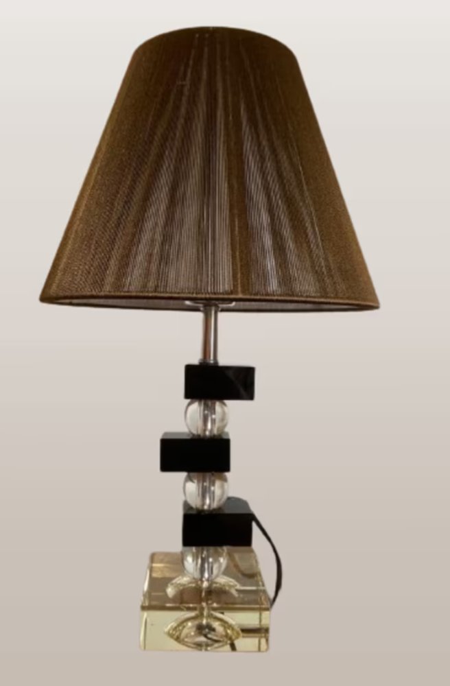 Introducing the Lead Crystal Cubes and Spheres Table Lamp with Linen Thread Shade Finished in Silk Touch, an impressive piece crafted with meticulous attention to detail. Designed with lead crystal alternating transparent spheres and black cubes, this unique lamp embodies the timeless elegance of Vintage design from the 2000s. The glassware used in its construction presents a cubist effect, adding an artistic touch to any space. A minimalist wonder, this lamp blends into any corner of the house.