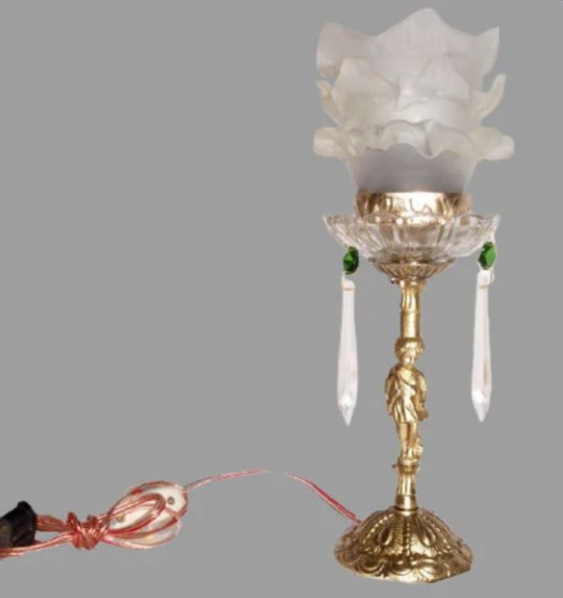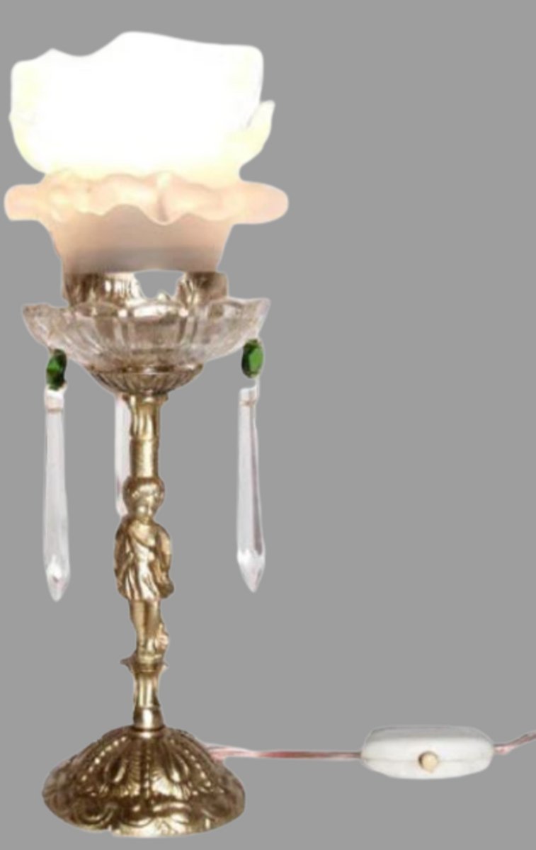 Lampada da tavolo con figura di Cupido in bronzo e vetro, anni '20