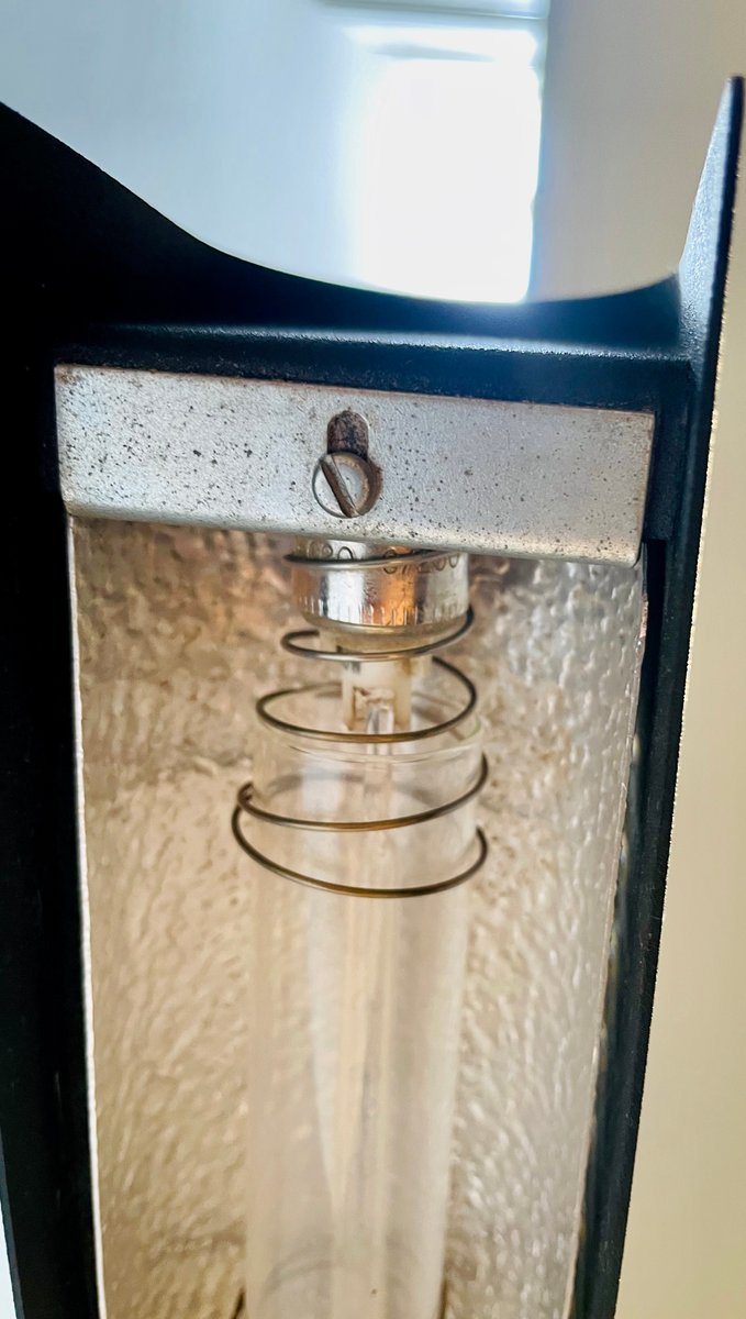 The white metal wings act as a light diffuser, they are adjustable. The bulbs are housed and protected by a glass protector that isolates the heat emitted by the bulb.