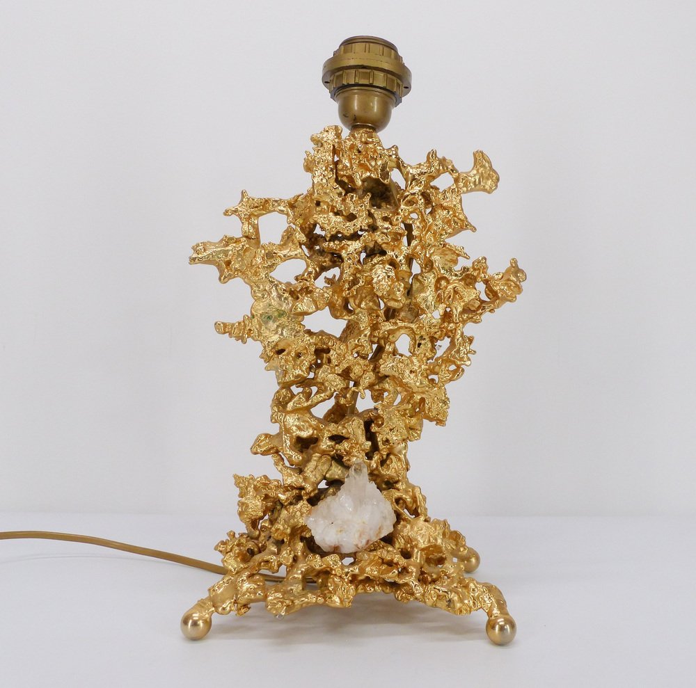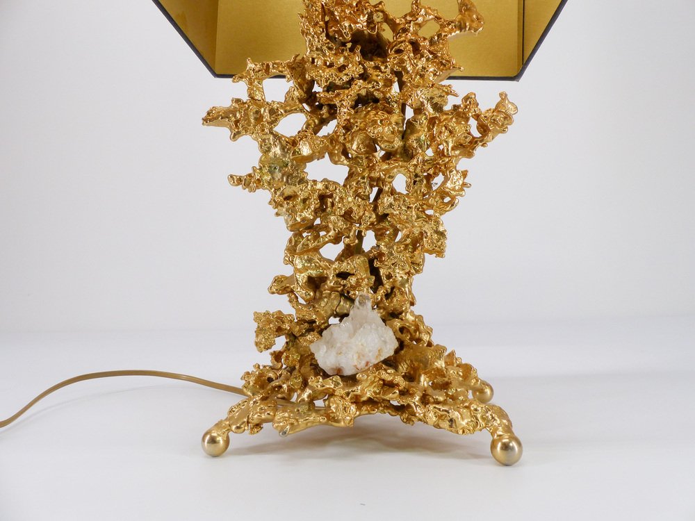 Pied de lamp scultoreo in bronzo dorato e quarzo che evoca rocce marine attribuito a Claude Victor Boeltz (nato nel 1937)