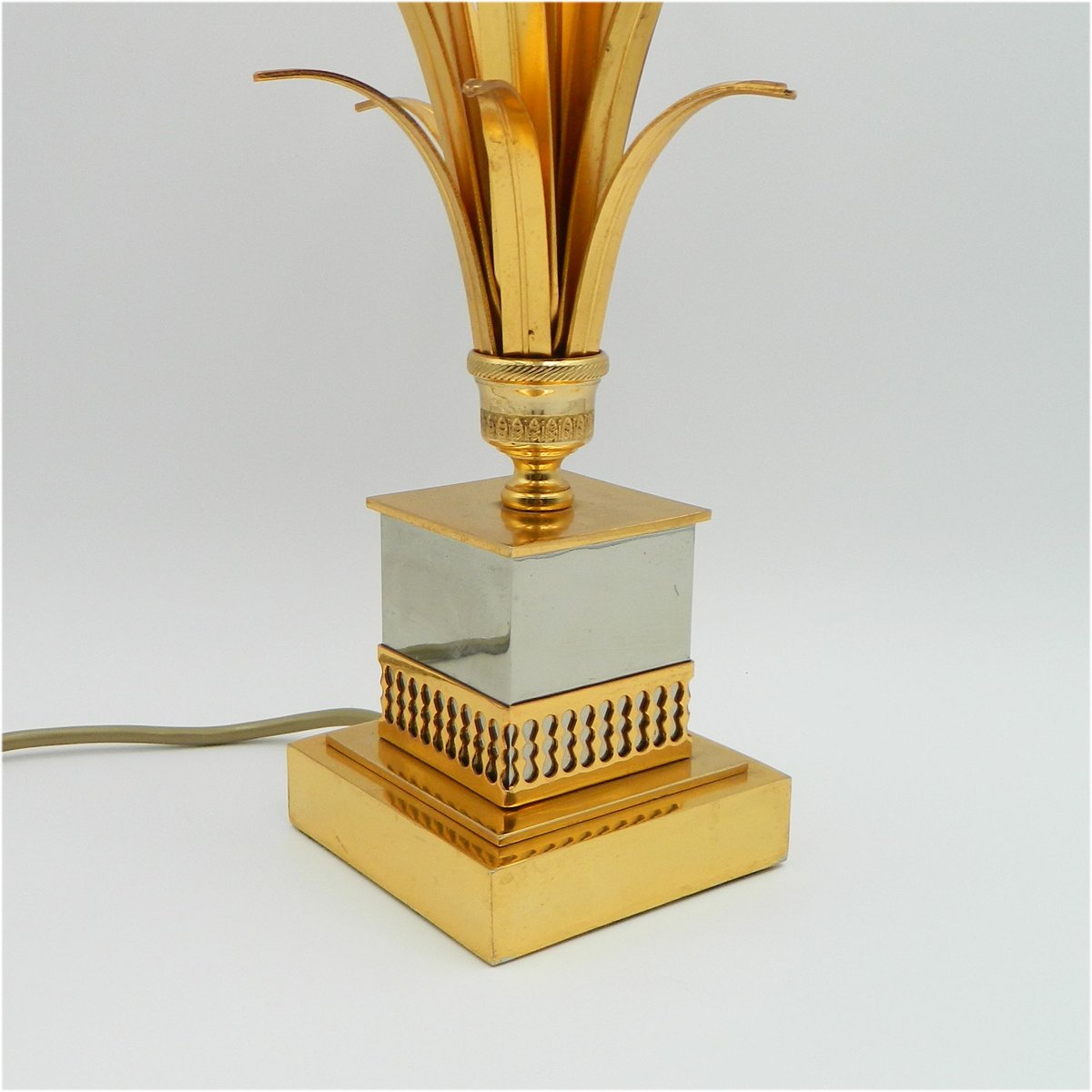 Lampada da tavolo in ottone con foglie dorate di Boulanger, anni '70
