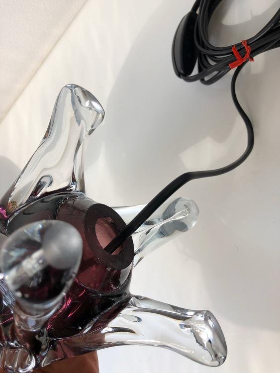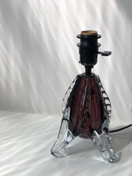 Lampada da tavolo Mid-Century in vetro colorato bordeaux, anni '60