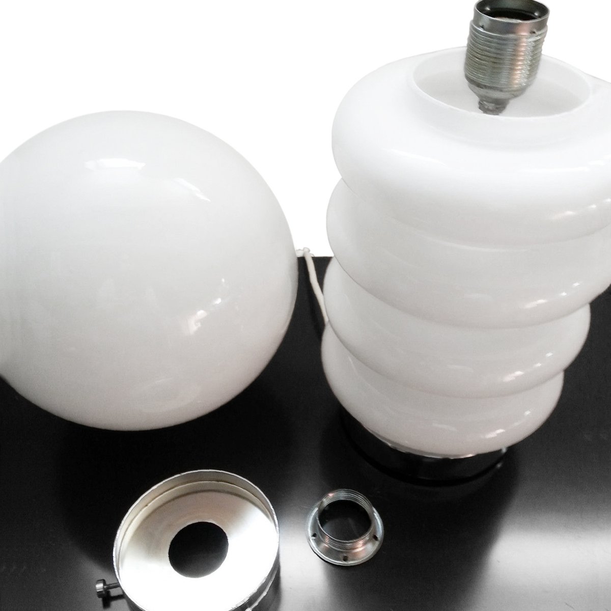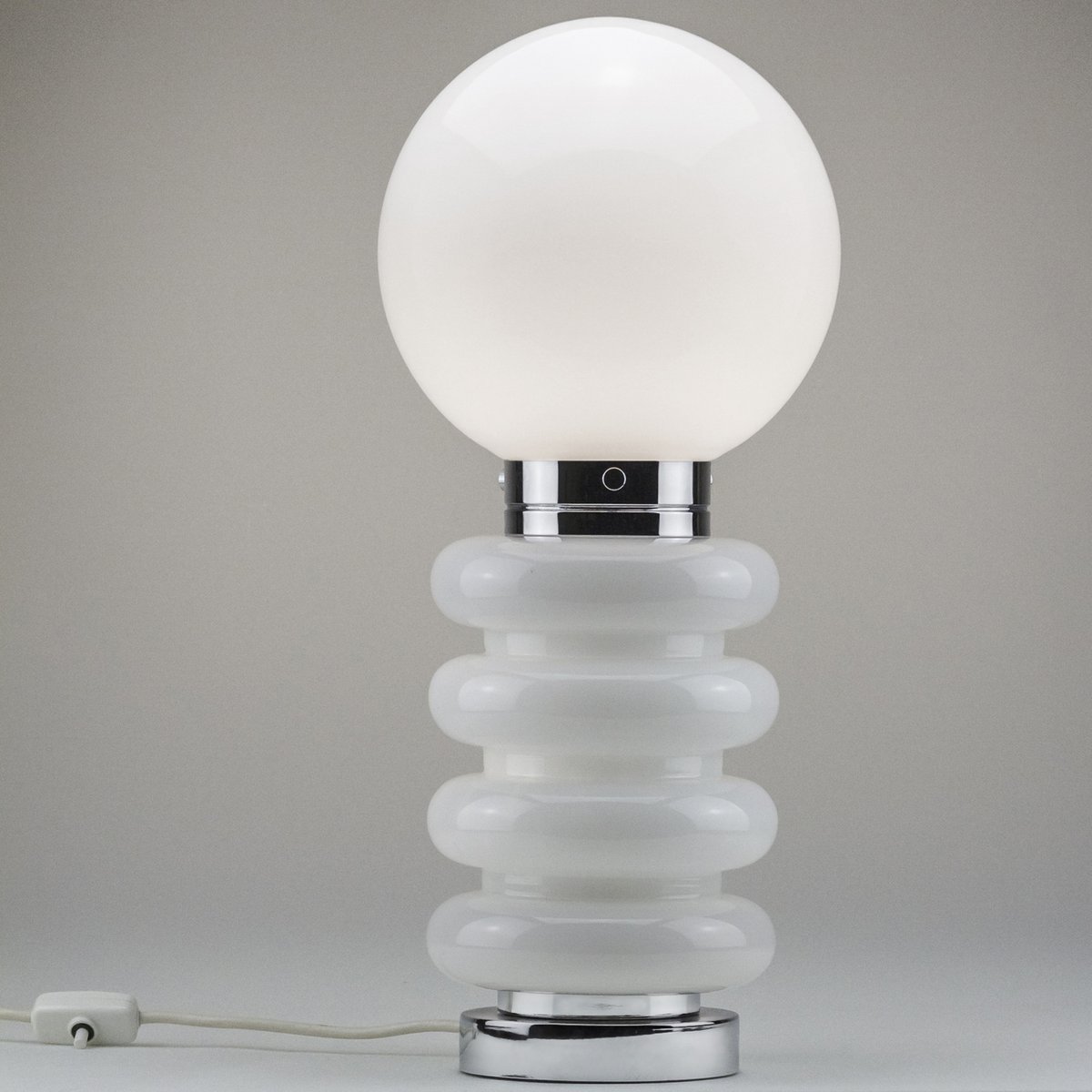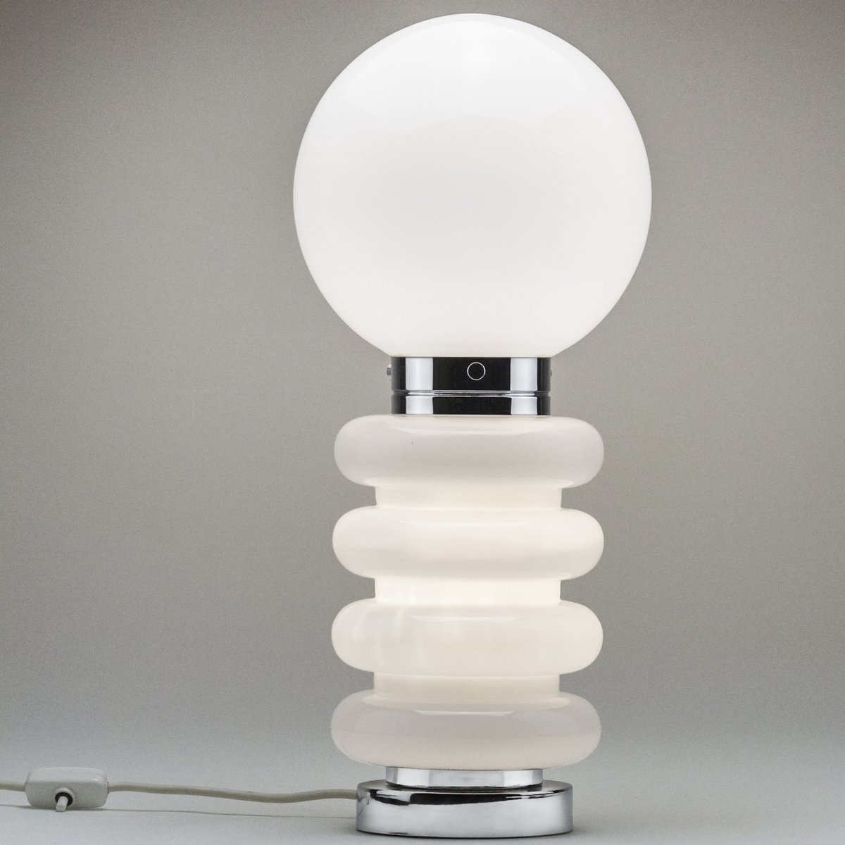Lampada da tavolo Mid-Century in vetro smerigliato e metallo cromato attribuita a Carlo Nason per JBS, anni '60