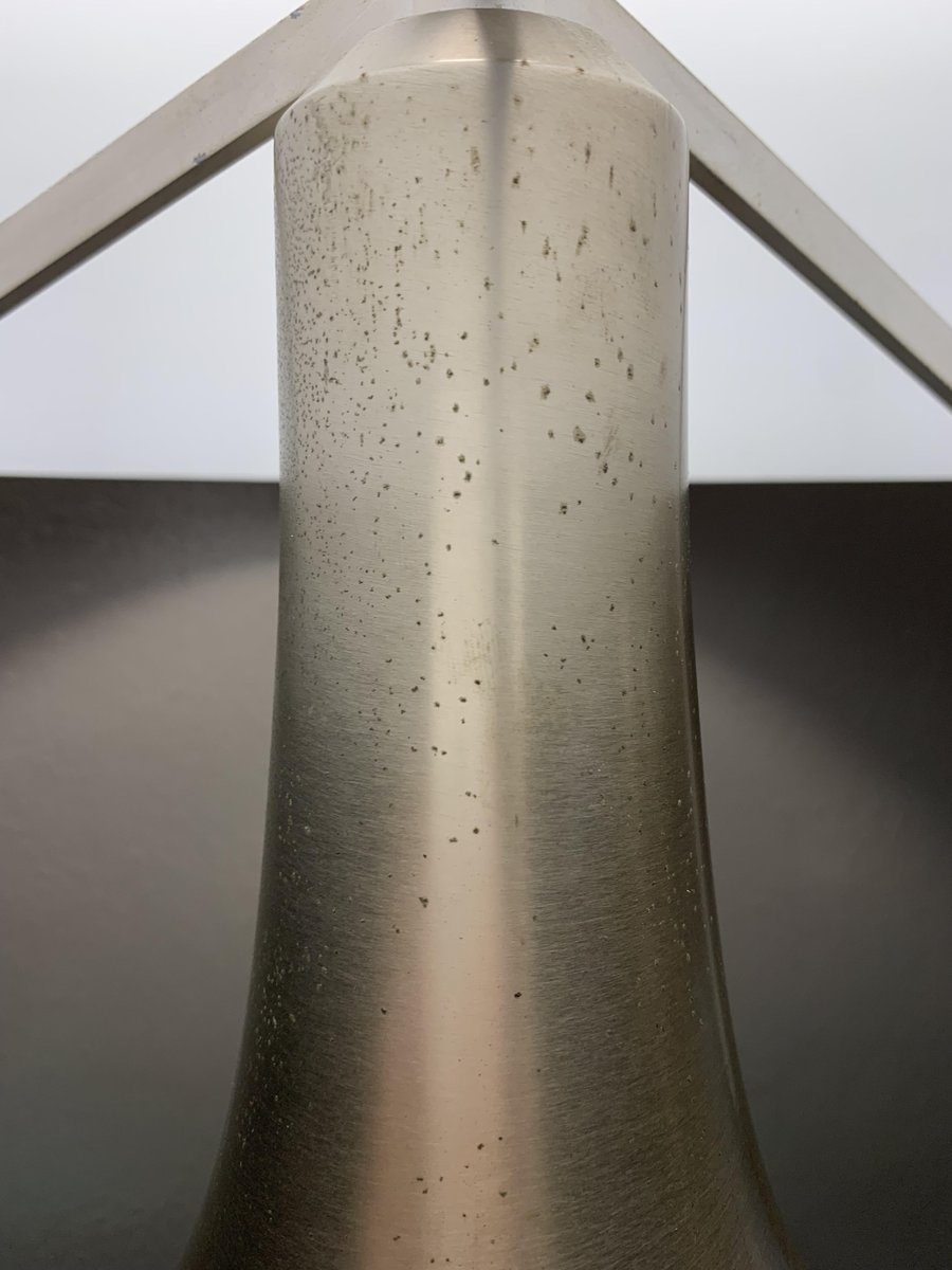 Tavolo da pranzo circolare in acciaio e vetro di Michel Boyer, Francia, anni '70