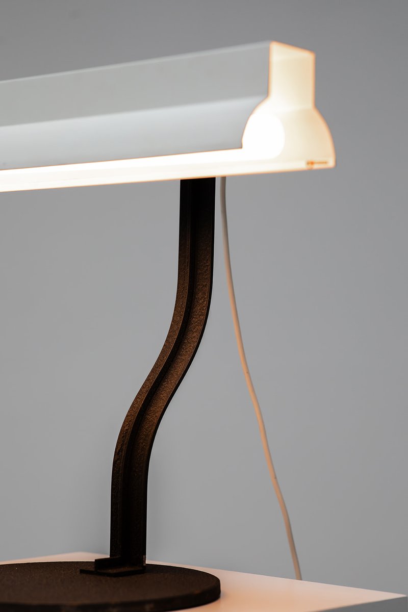 L'azienda di illuminazione italiana Arteluce viene fondata nel 1939 dal giovane designer- imprenditore veneziano Gino Sarfatti. I disordini politici del tempo costringono Sarfatti ad interrompere la sua laurea in ingegneria aeronautica a Genova e a trasferirsi con la sua famiglia a Milano. Qui, nonostante la mancanza di un apprendistato formale sul design, Sarfatti comincia la sua carriera nel mondo dell'illuminazione. Probabilmente proprio per il fatto che abbia imparato tutto da solo ha fatto sì che Sarfatti si occupasse di tutte le fasi del processo di design, dalla concezione alla produzione, collaborando con artigiani e architetti per creare le lampade moderniste più forti, accese, ed economiche che l'Italia abbia mai visto.