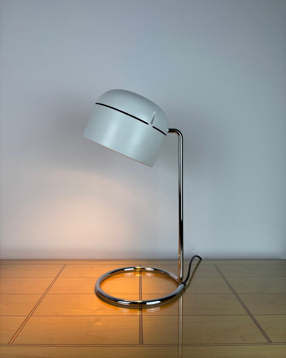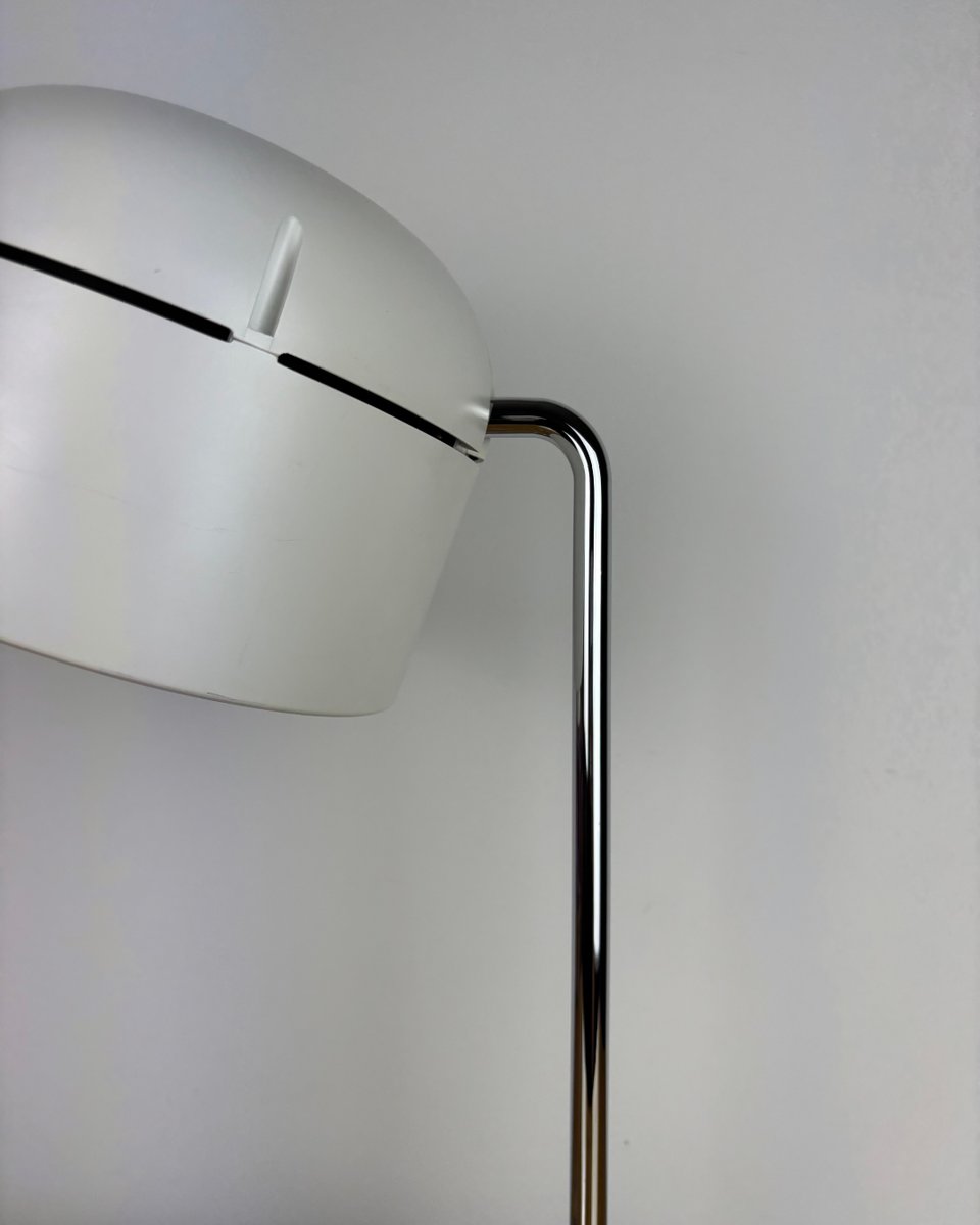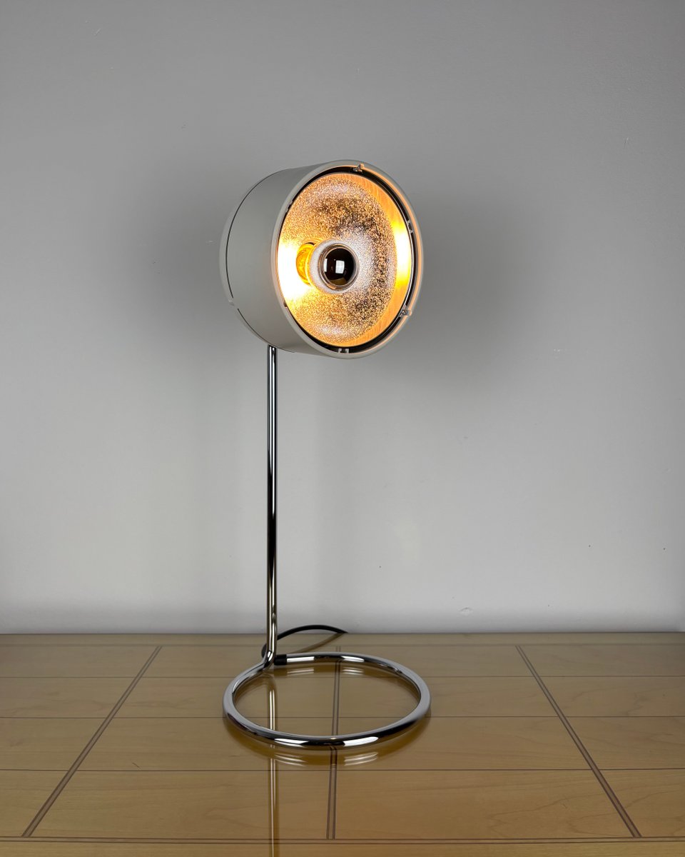 Marchio e design: Fondata nel 1945 a Lemgo, Staff & Schwarz (Staff Leuchten) è salita alla ribalta internazionale negli anni '60-'70 con apparecchi pluripremiati e collaborazioni transeuropee, culminate con l'acquisizione da parte di Zumtobel nel 1994; questa lampada riflette l'ingegneria funzionale e l'elegante estetica Space Age dell'azienda. Le lampade da tavolo a faretto di quest'epoca sono spesso collegate a designer come Arnold Berges e dimostrano l'enfasi di Staff sulla regolabilità, il controllo ottico e le forme sobrie.