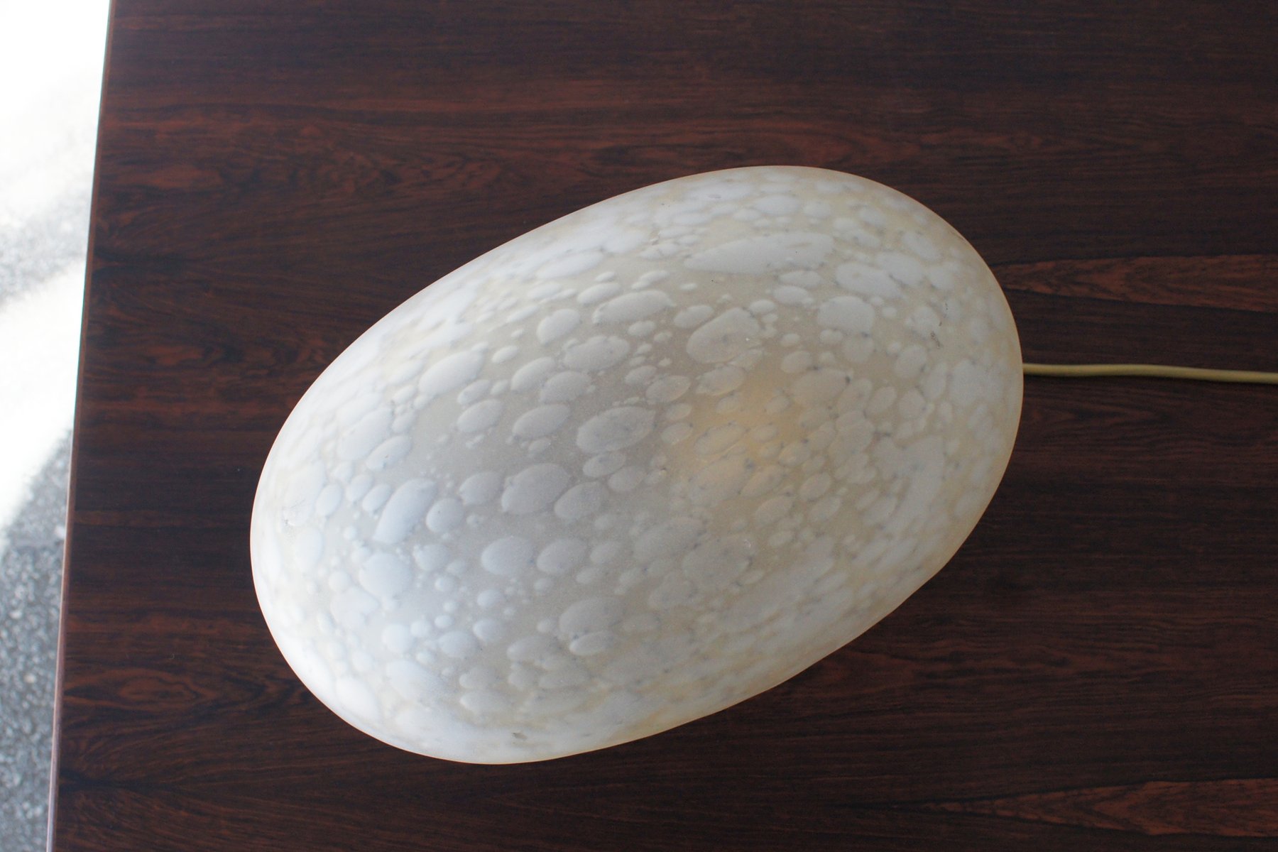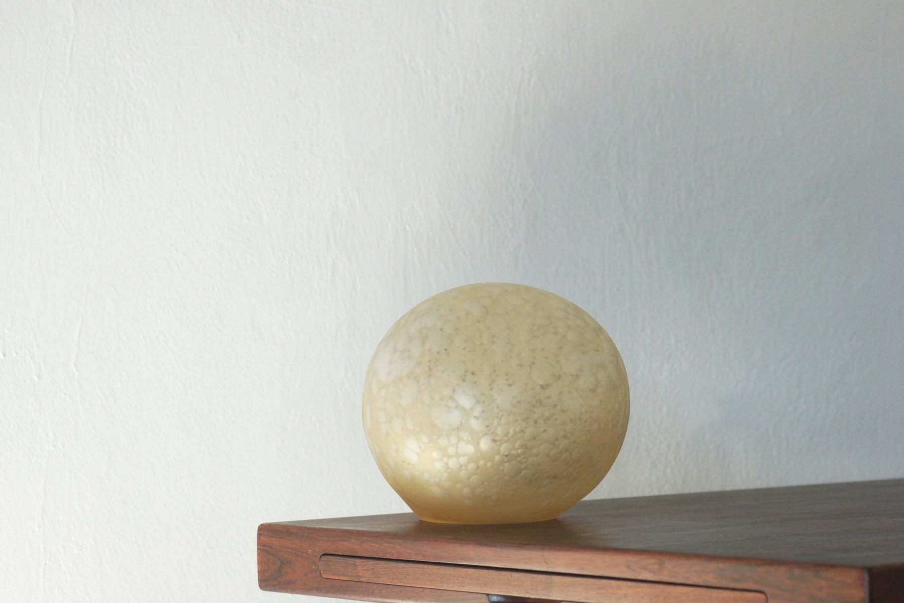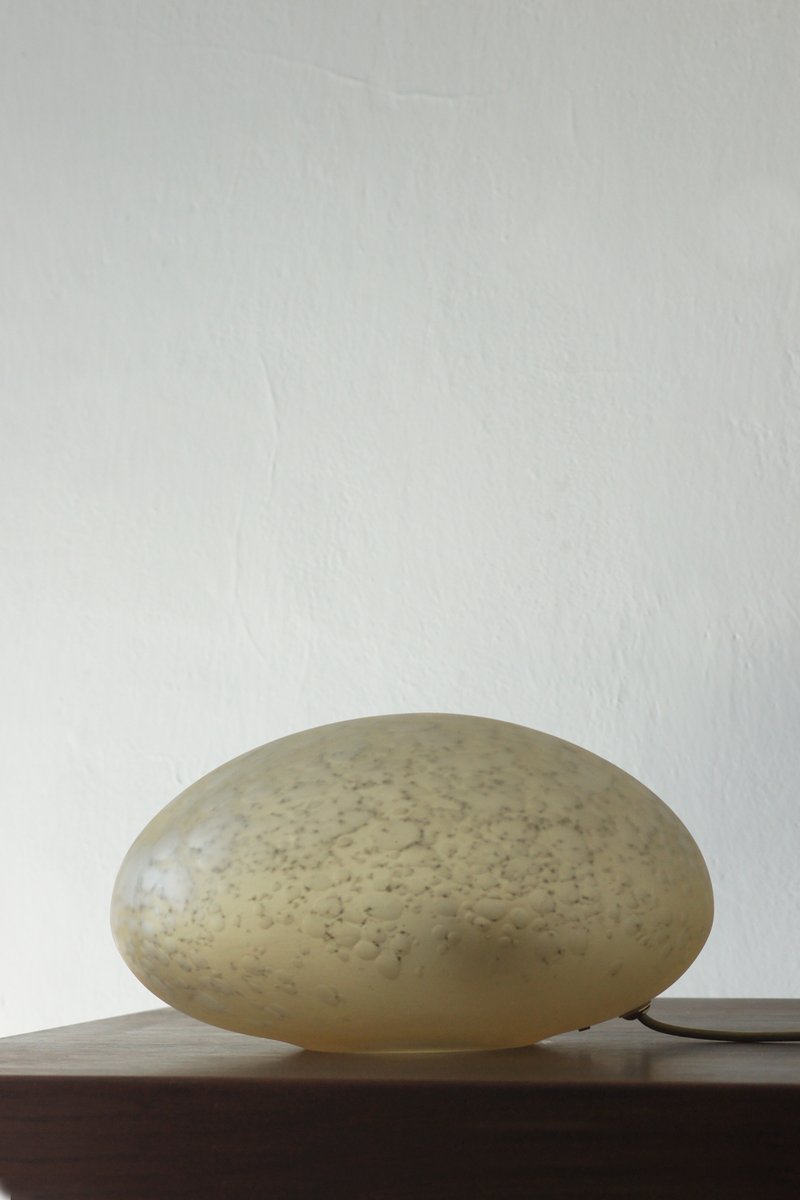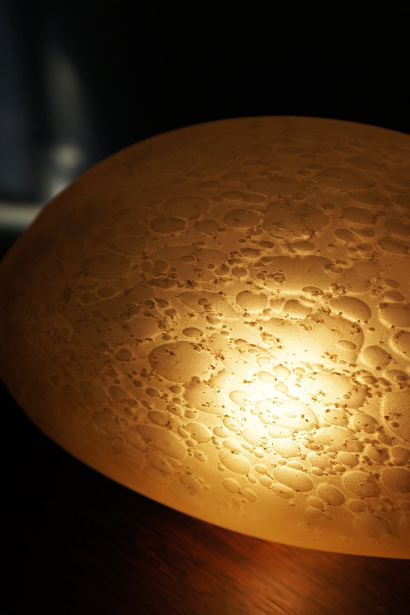 Its shape resembles a stone smoothed by water or a delicately blown glass bubble – full of subtlety, light, and elegance. When illuminated, the glass comes to life, creating an impressive light pattern that diffuses into the surroundings in soft, golden tones.