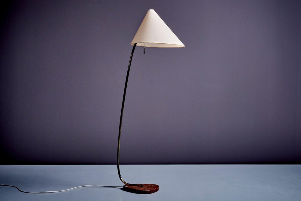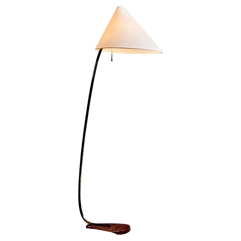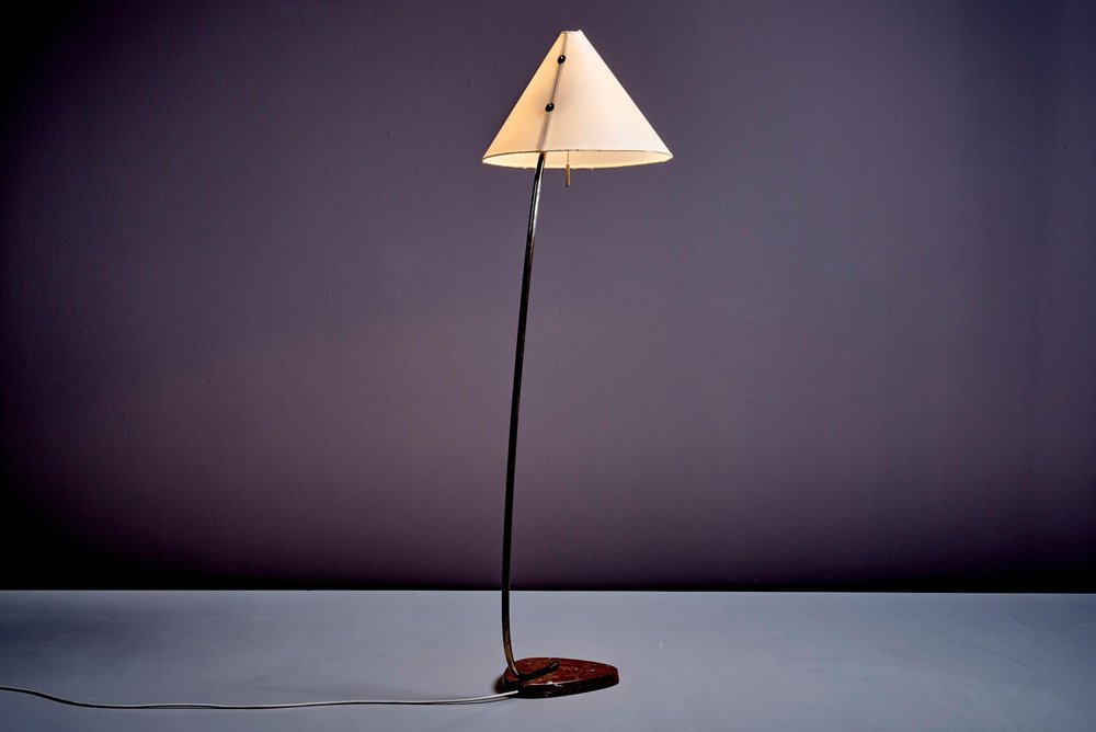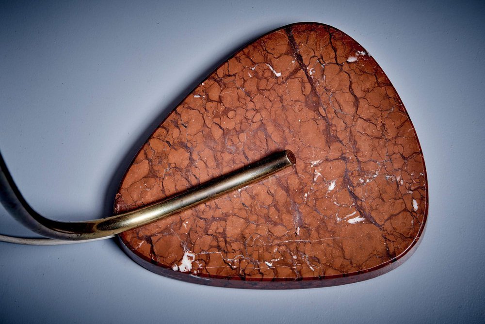 Lampada da terra con base in marmo rosso di Rupert Nikoll, anni '50