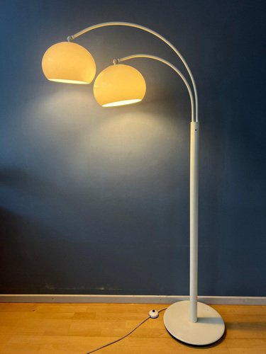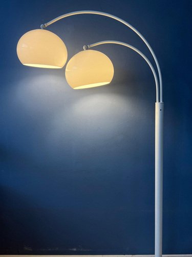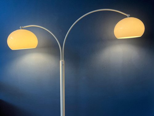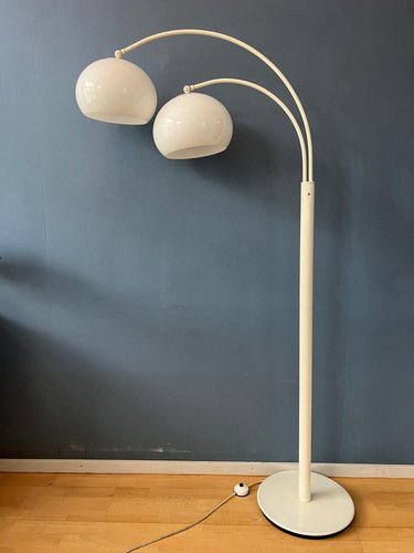 Lampada da terra Double Arc bianca a fungo di Dijkstra