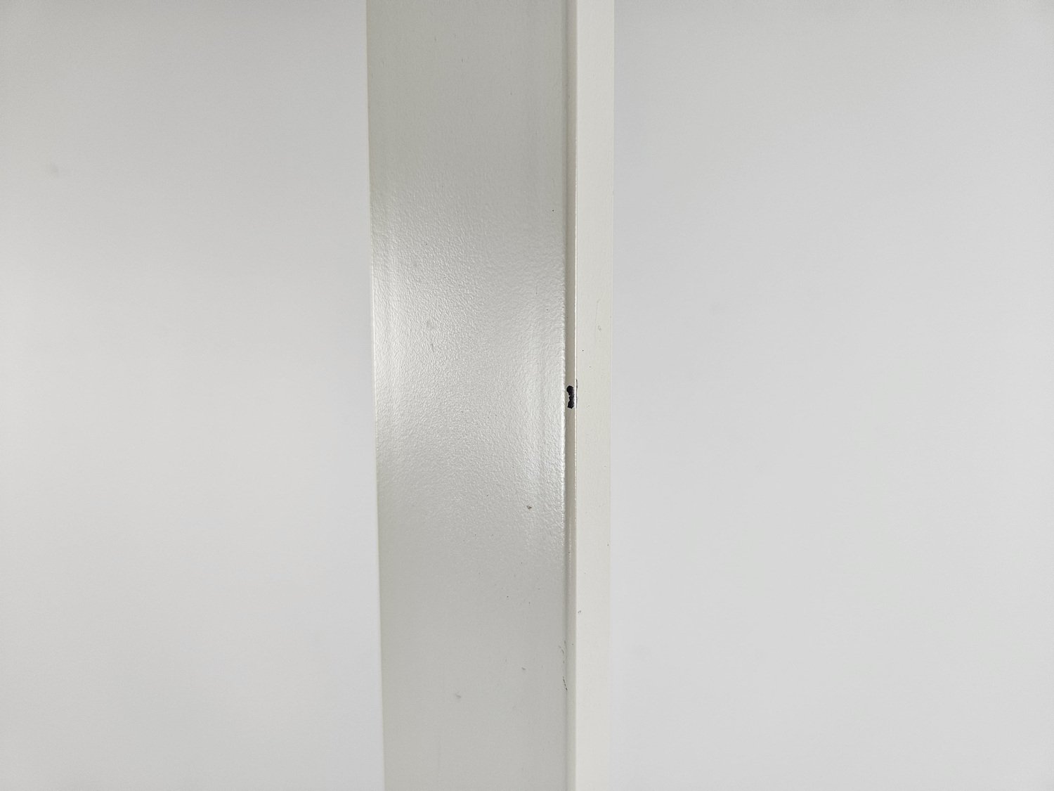 The lamp is in white lacquered enamelled iron with a rectangular base, a worked glass light point and perfectly intact.