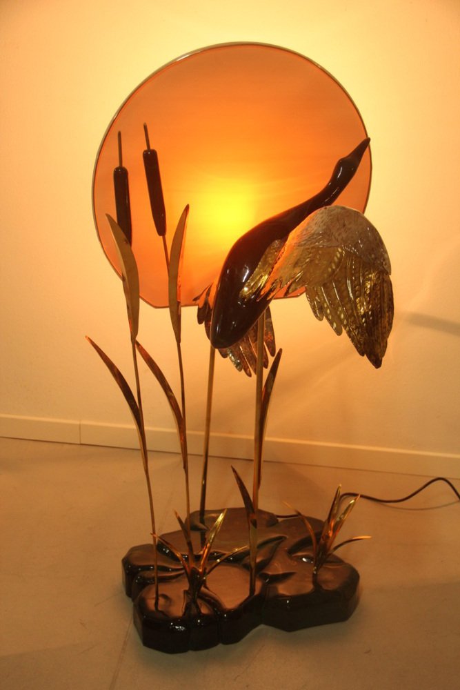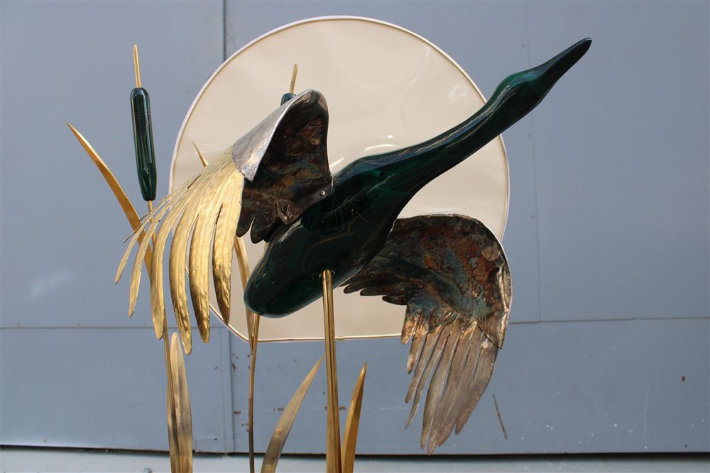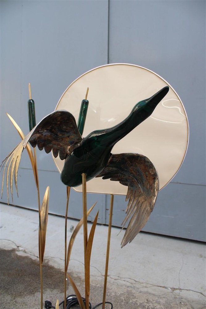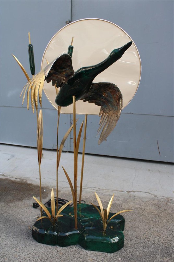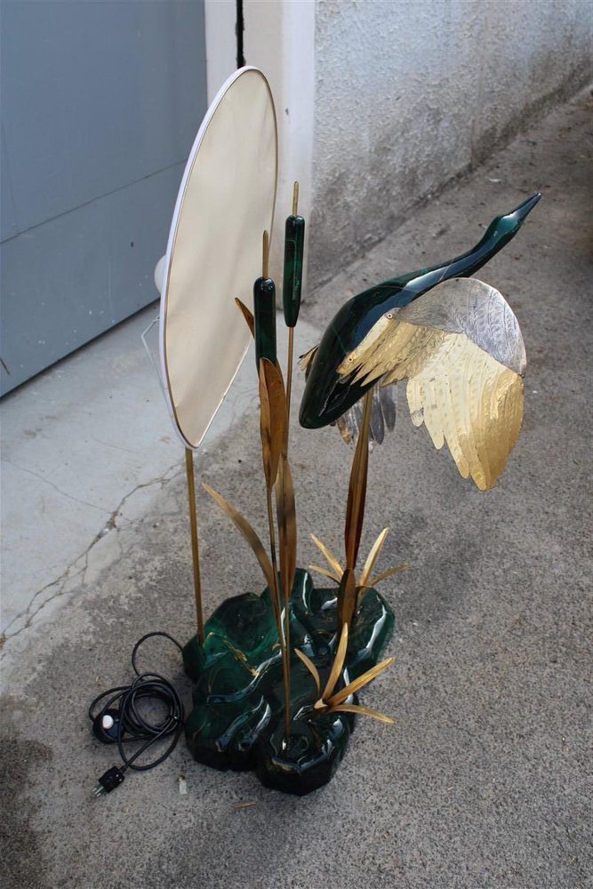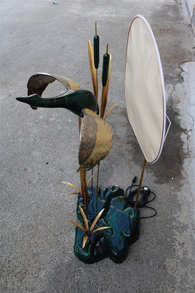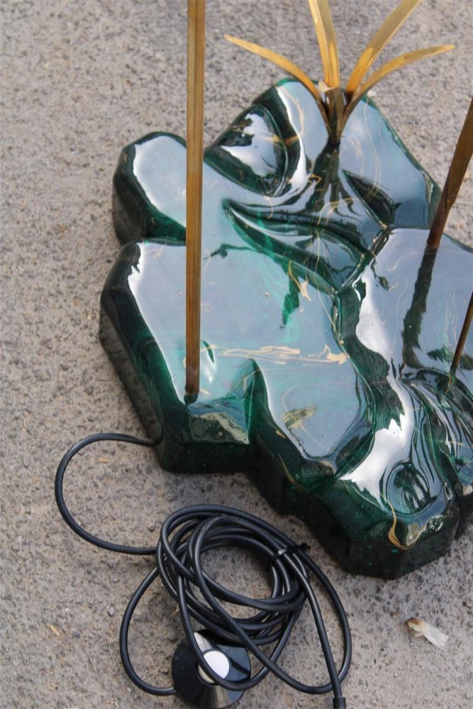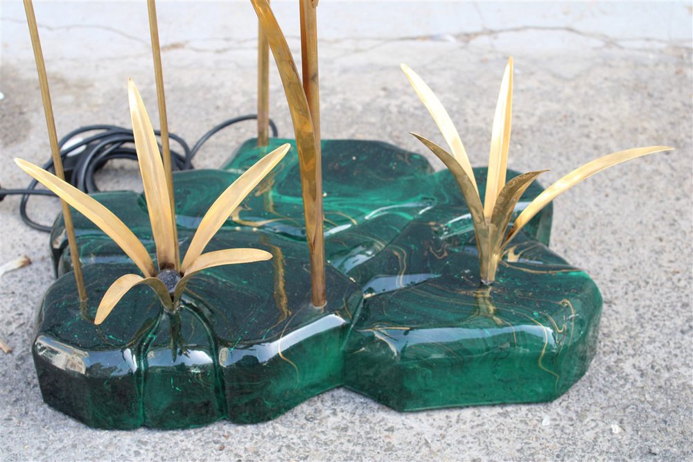 Lampada da terra in malachite e ottone, Italia, anni '70
