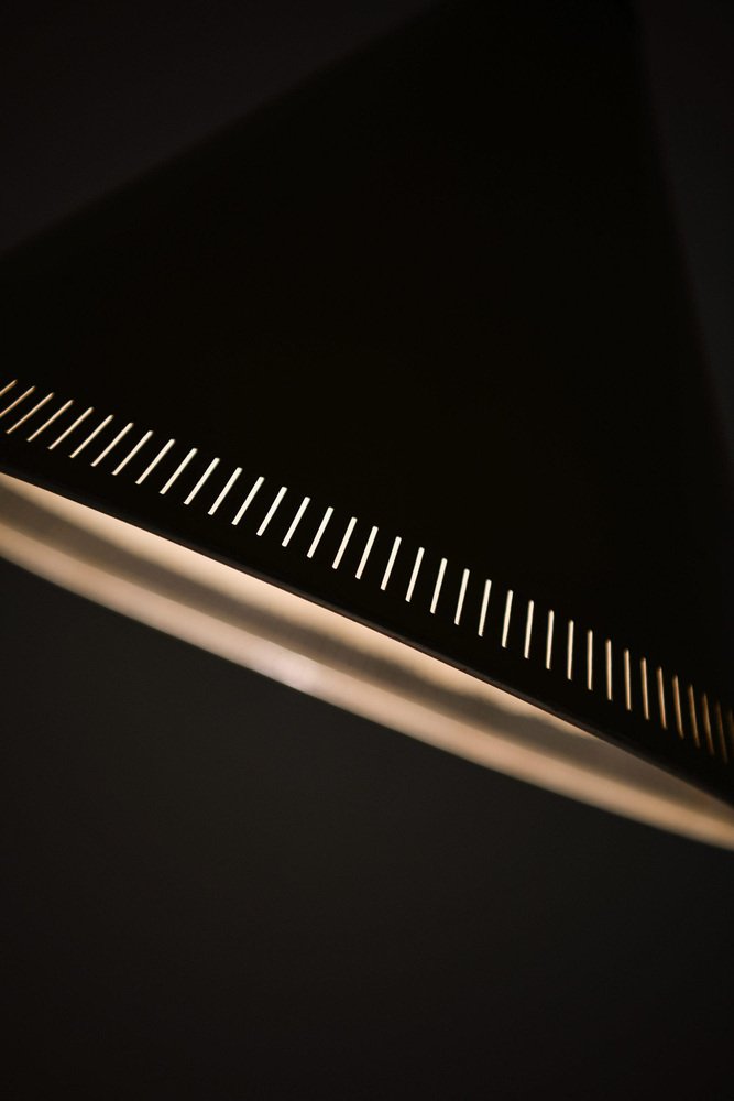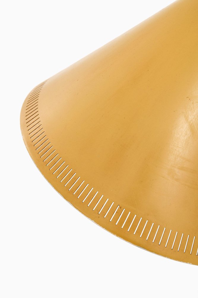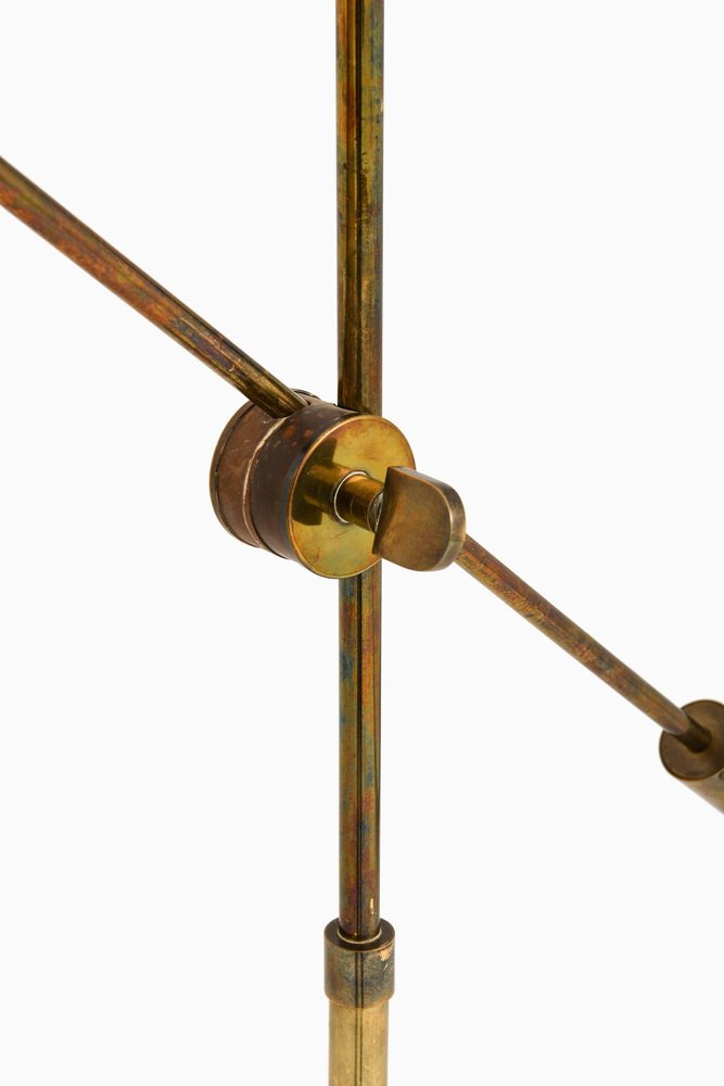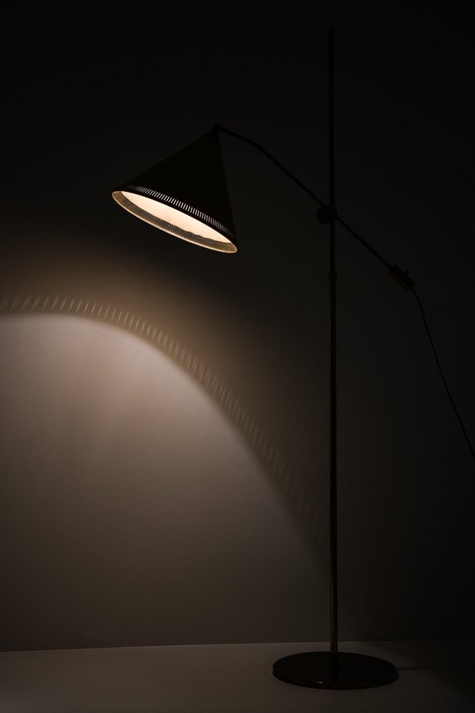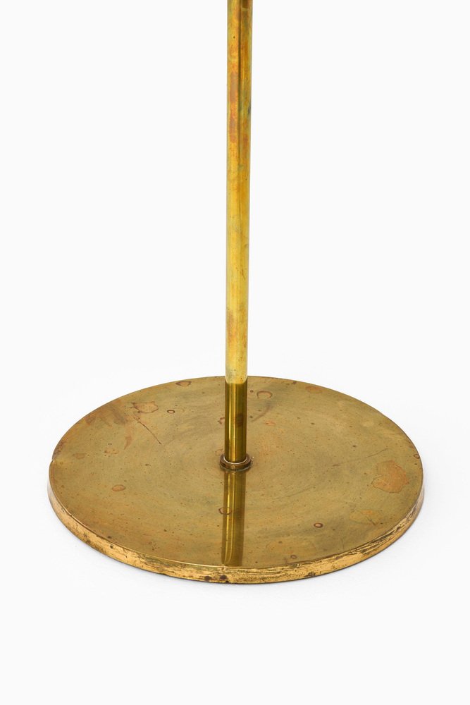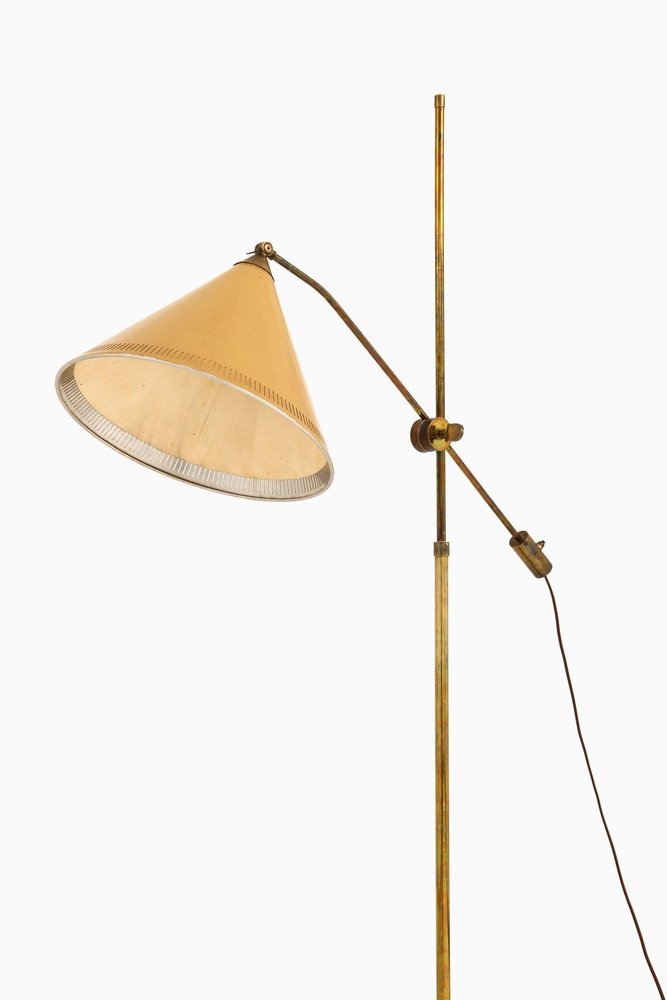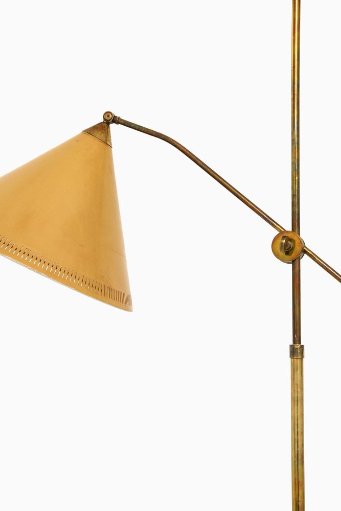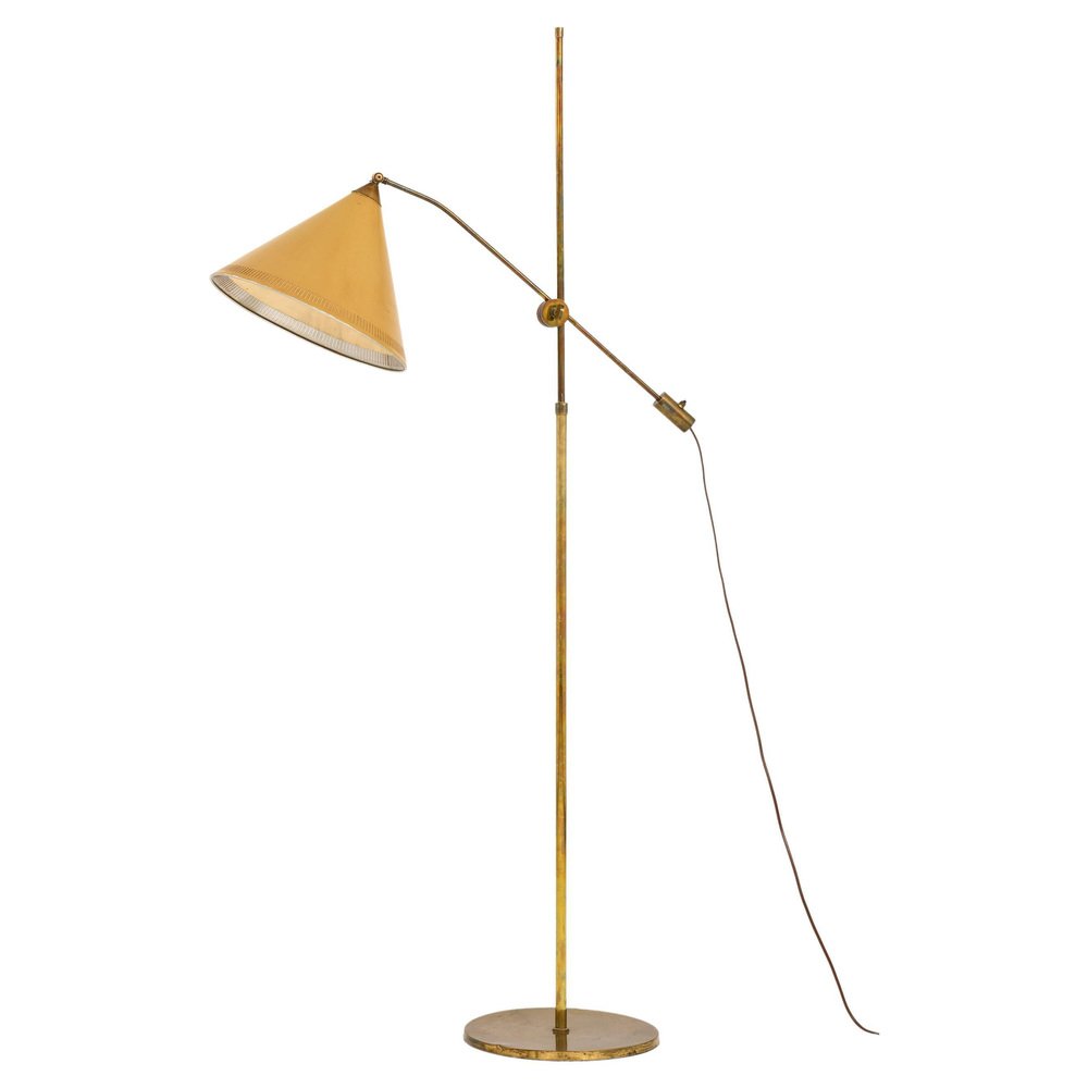 Lampada da terra in ottone con paralume giallo originale, anni '50