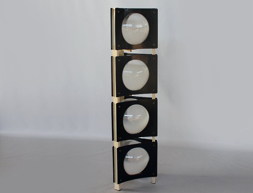 Lampada da terra vintage in metallo blu e bianco, Italia