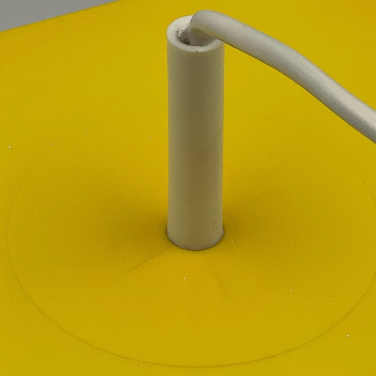 Il design distintivo di questa lampada, con la sua estetica spaziale, aggiunge un tocco retro-futuristico a qualsiasi ambiente. Il cubo giallo lucido offre una dichiarazione audace, mentre il vetro bianco opalino fornisce una luce morbida e diffusa, creando un'atmosfera calda e invitante. In salotto, nella zona pranzo o in camera da letto, questa lampada a sospensione diventerà sicuramente un punto di riferimento.