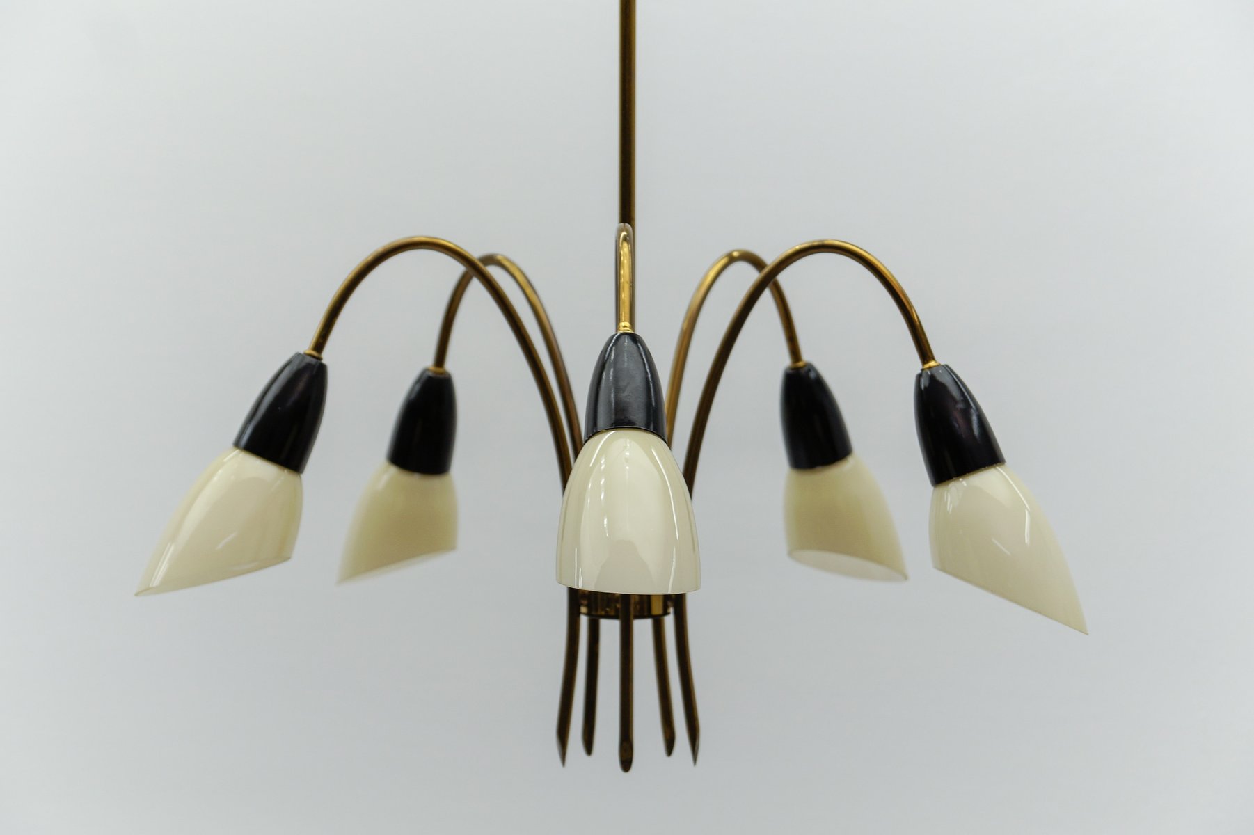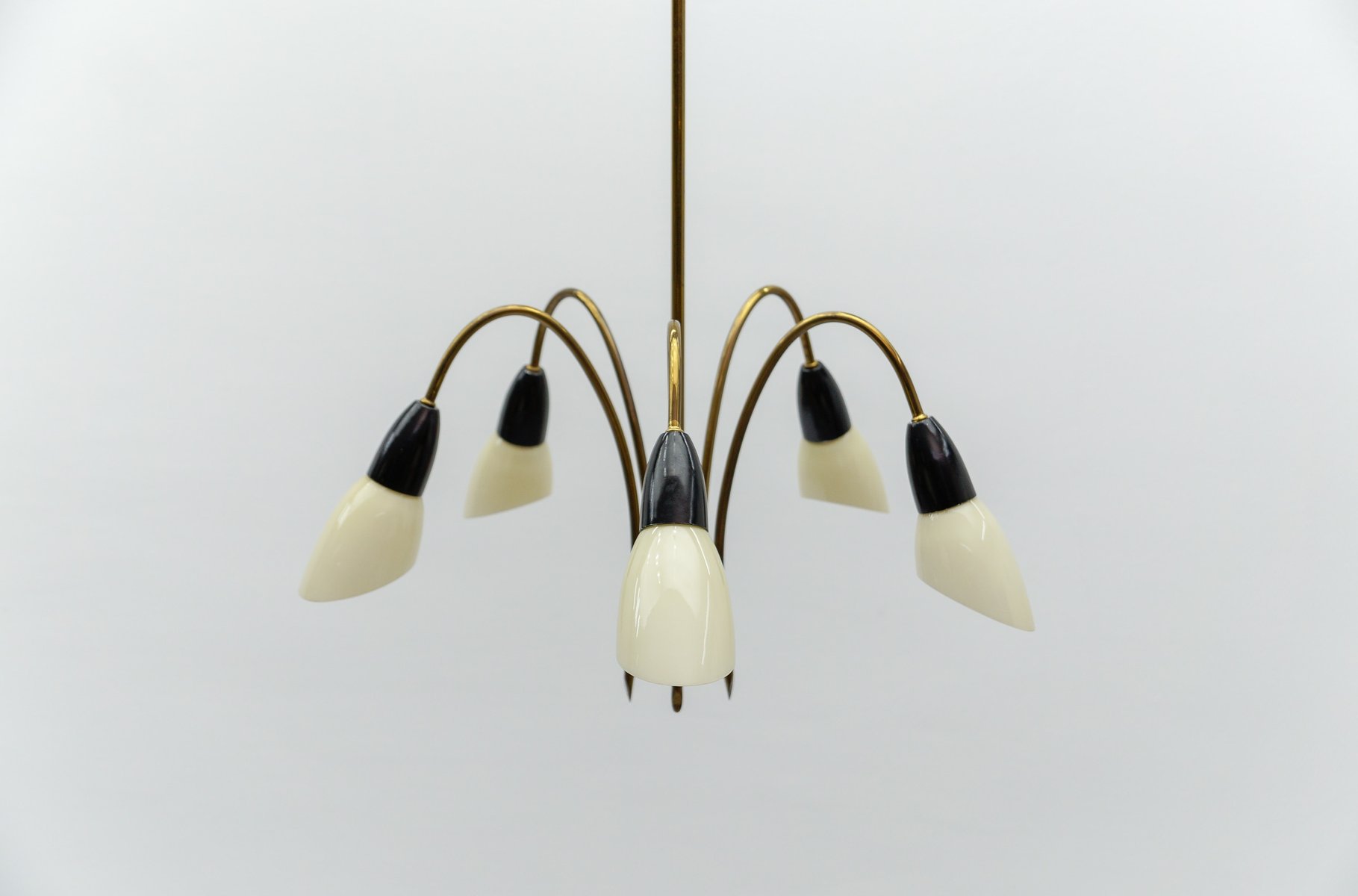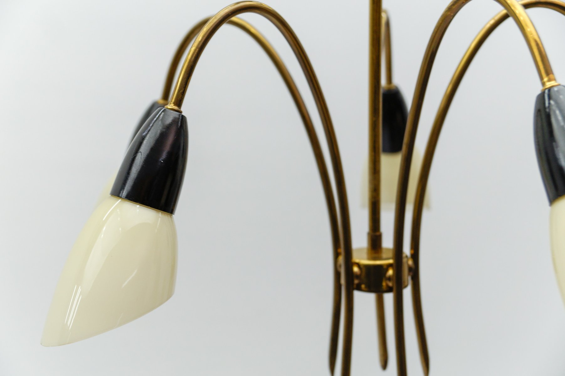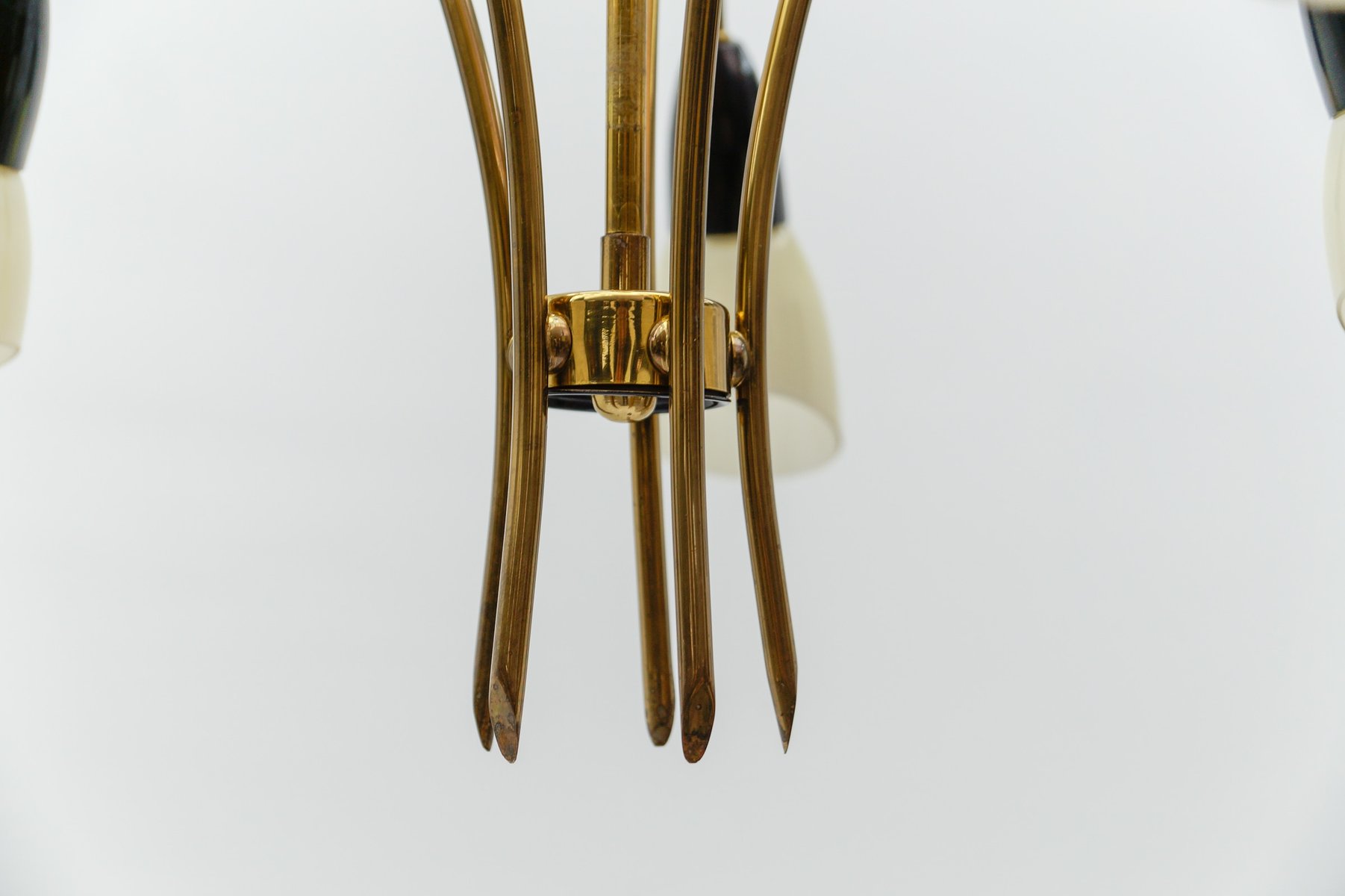 Lampada Spider vintage in ottone con paralumi in vetro, Italia, anni '50