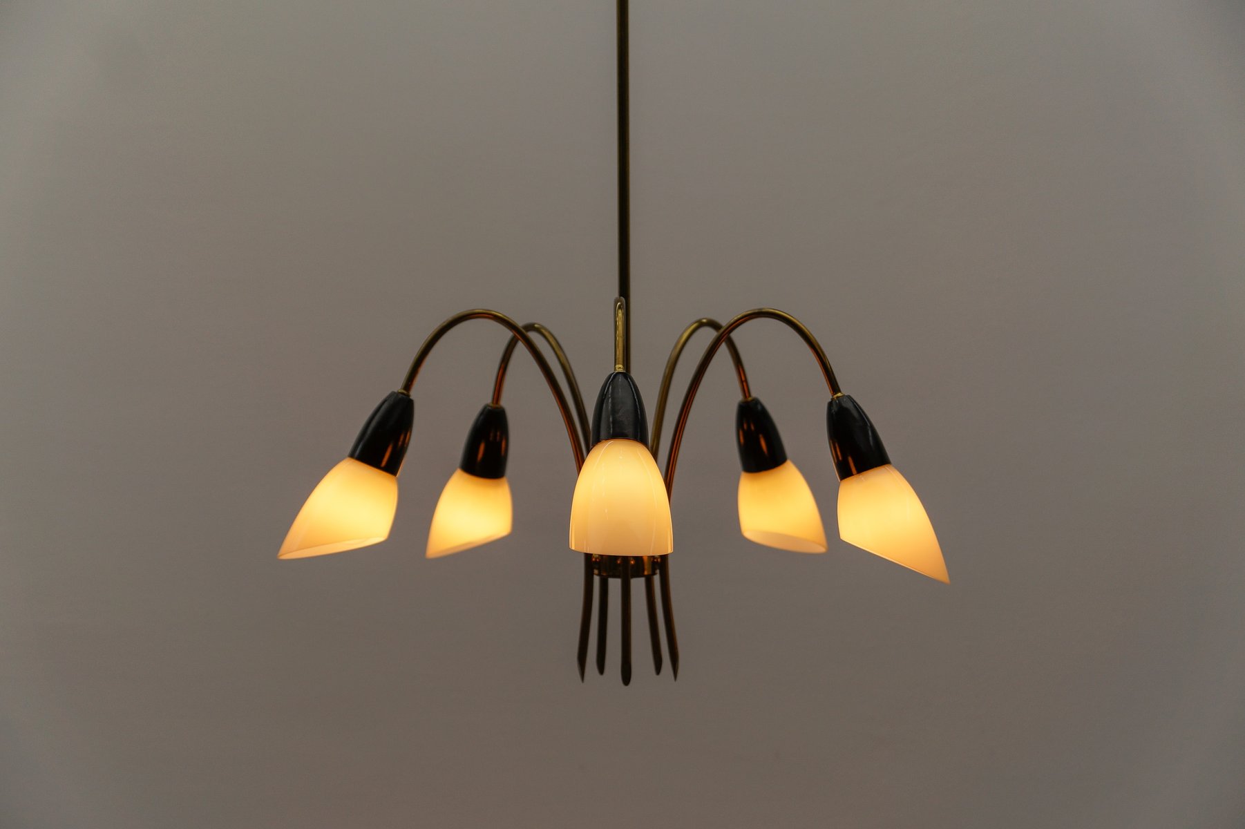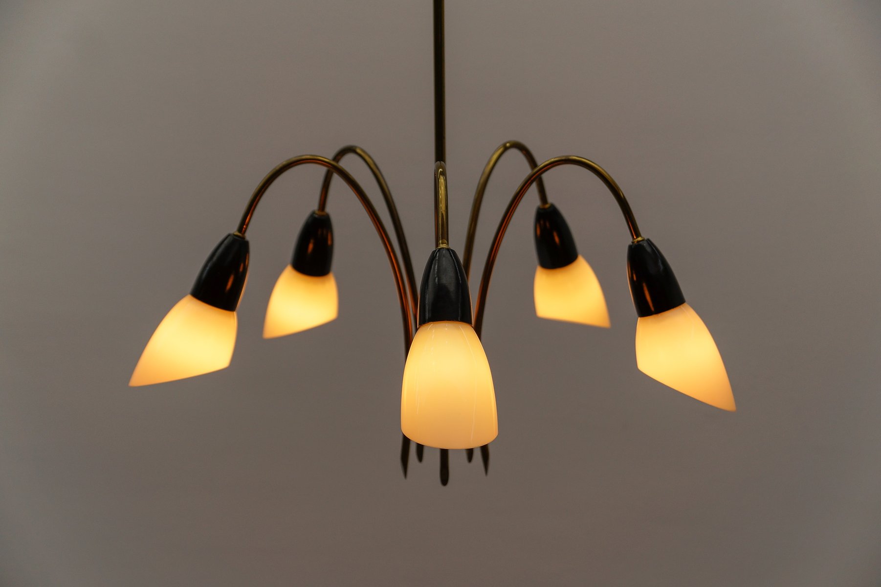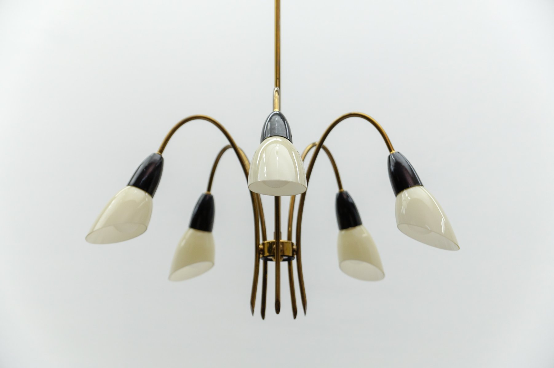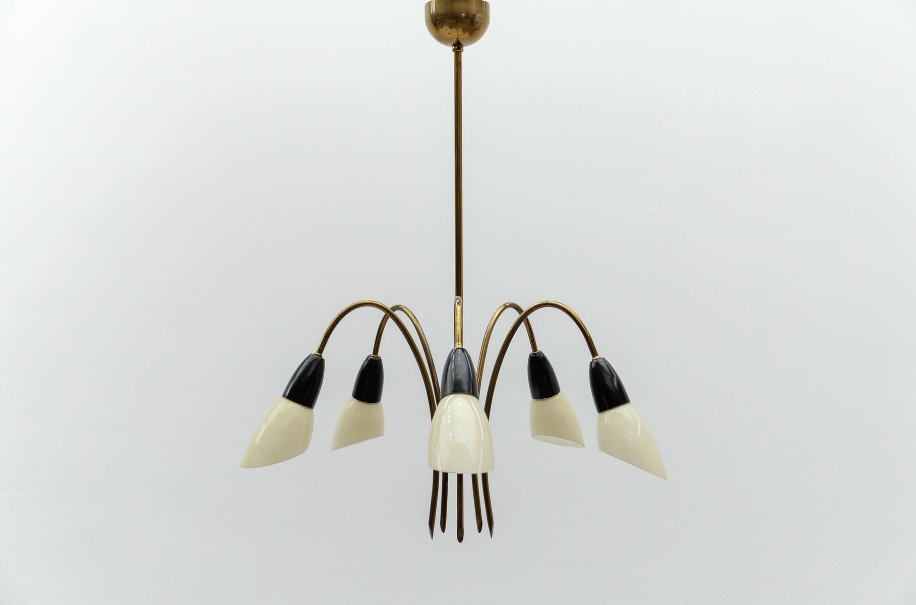 Lampada Spider vintage in ottone con paralumi in vetro, Italia, anni '50