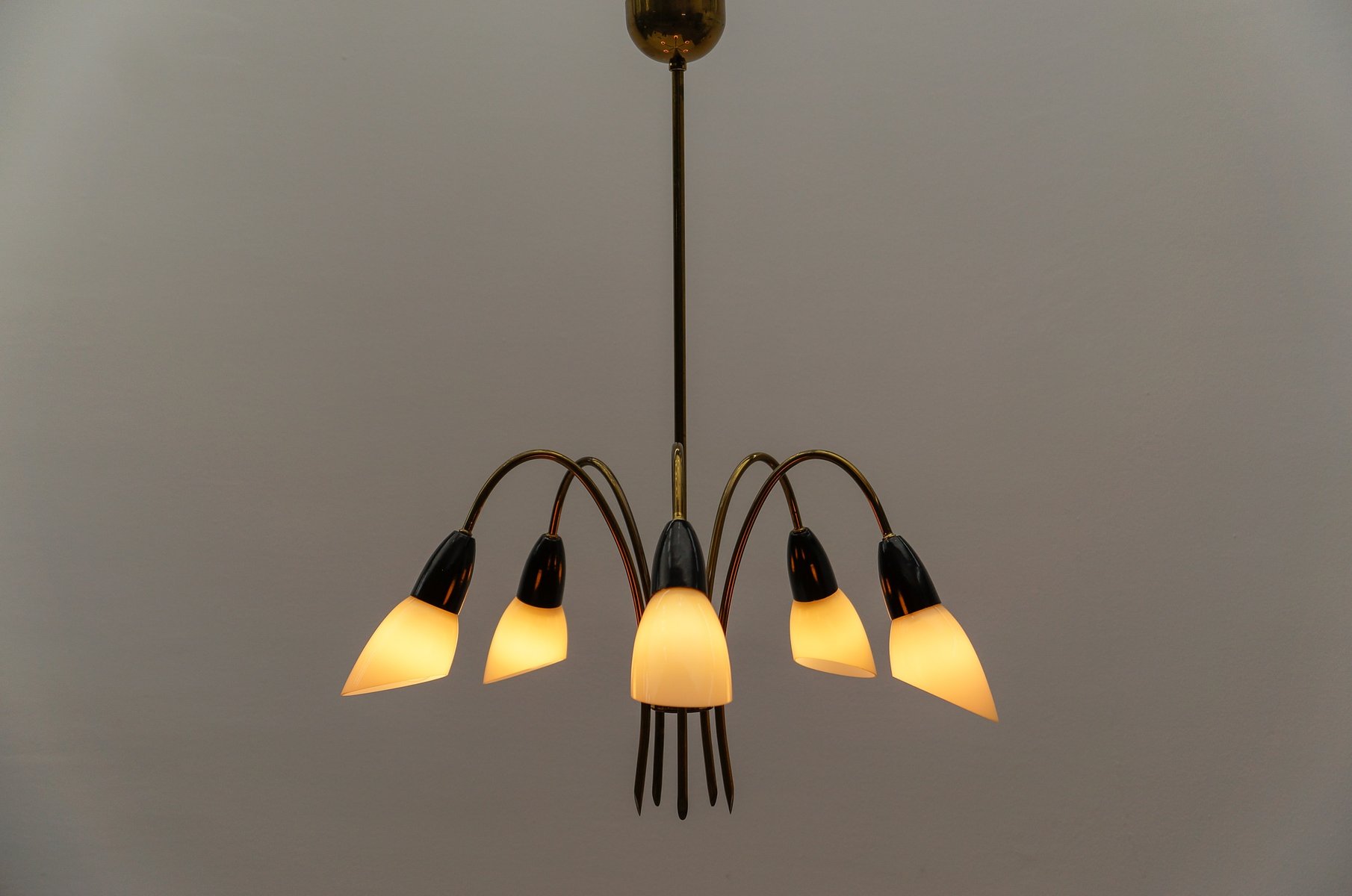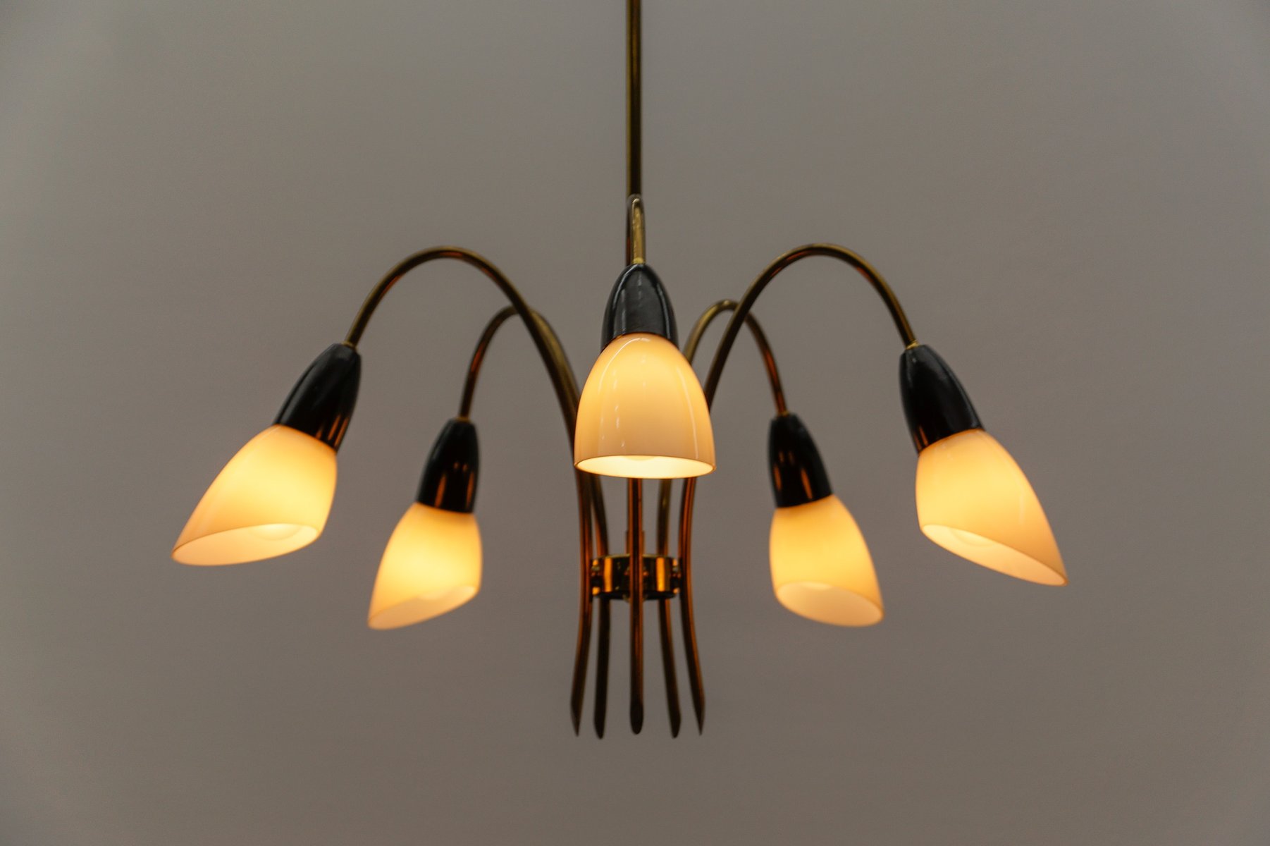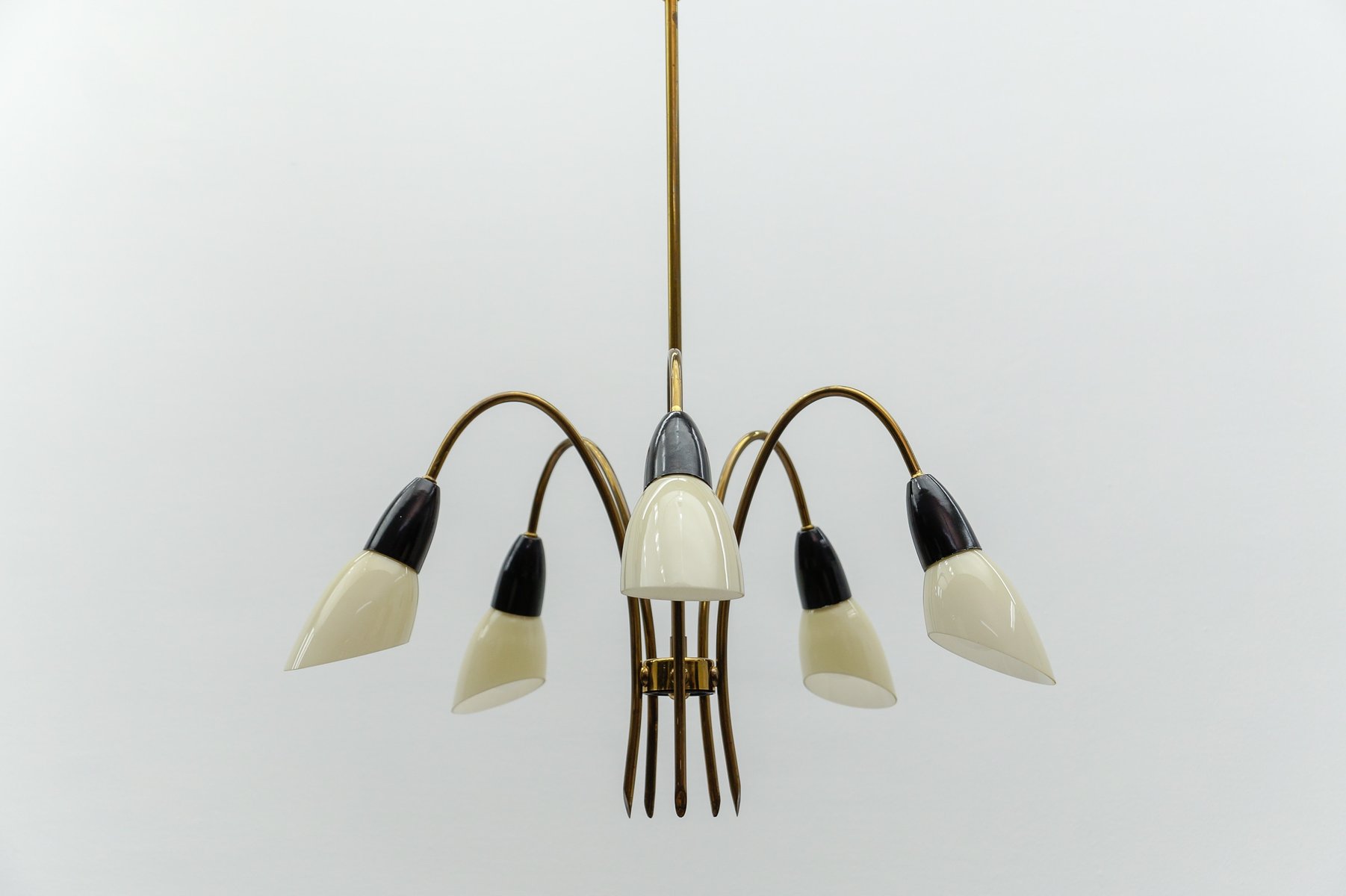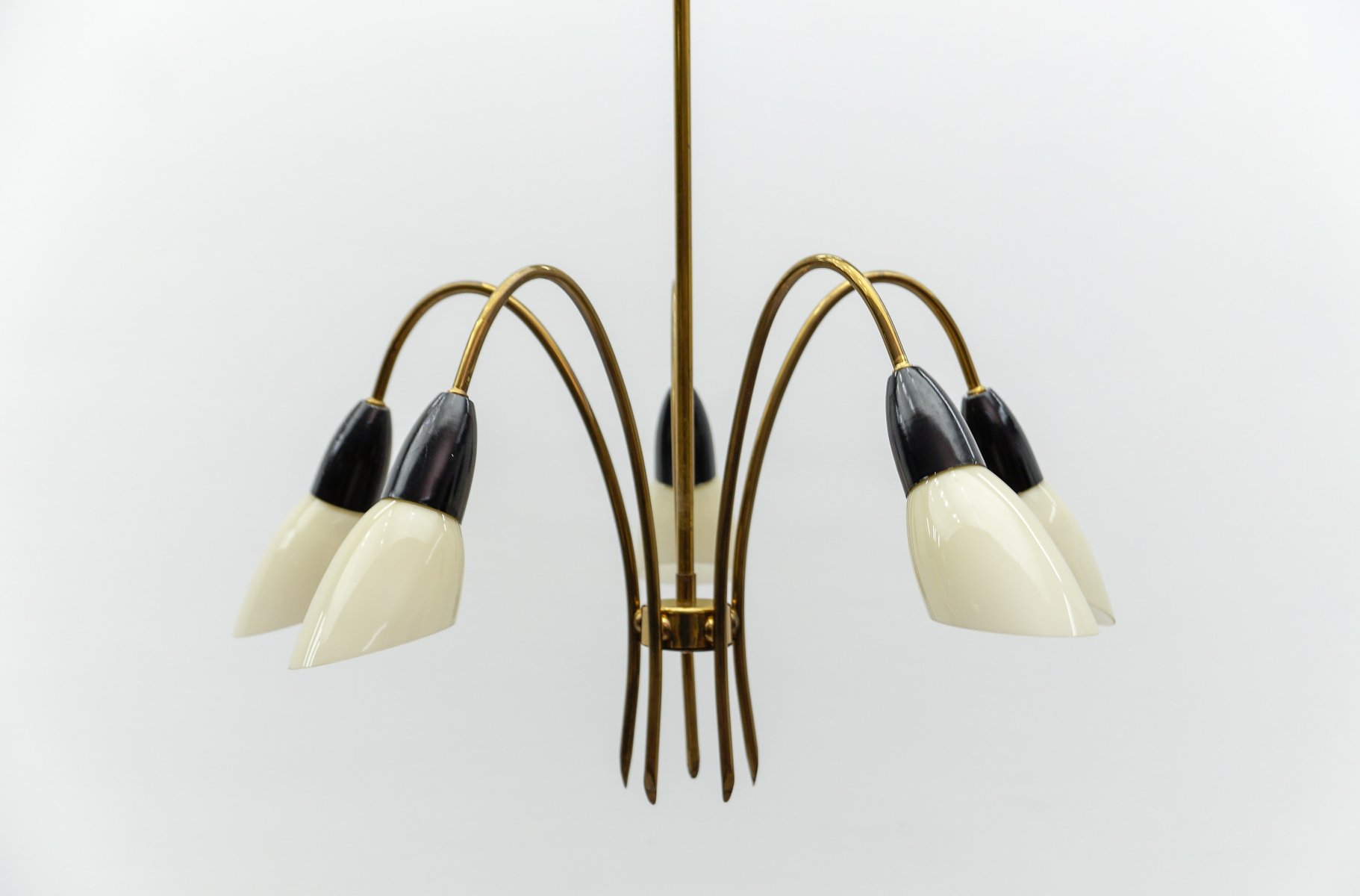 Lampada Spider vintage in ottone con paralumi in vetro, Italia, anni '50