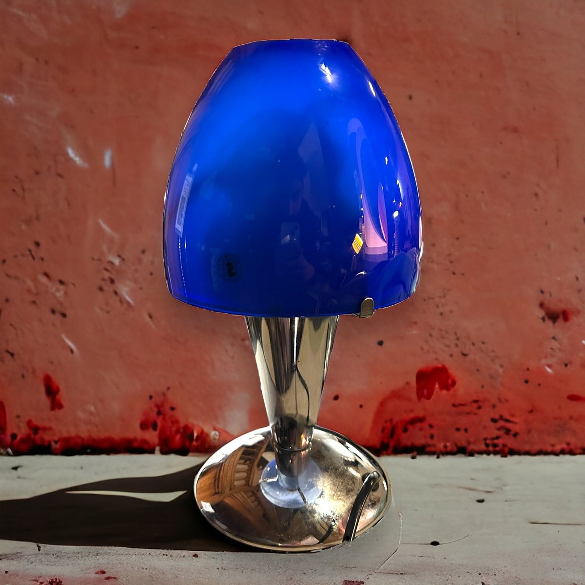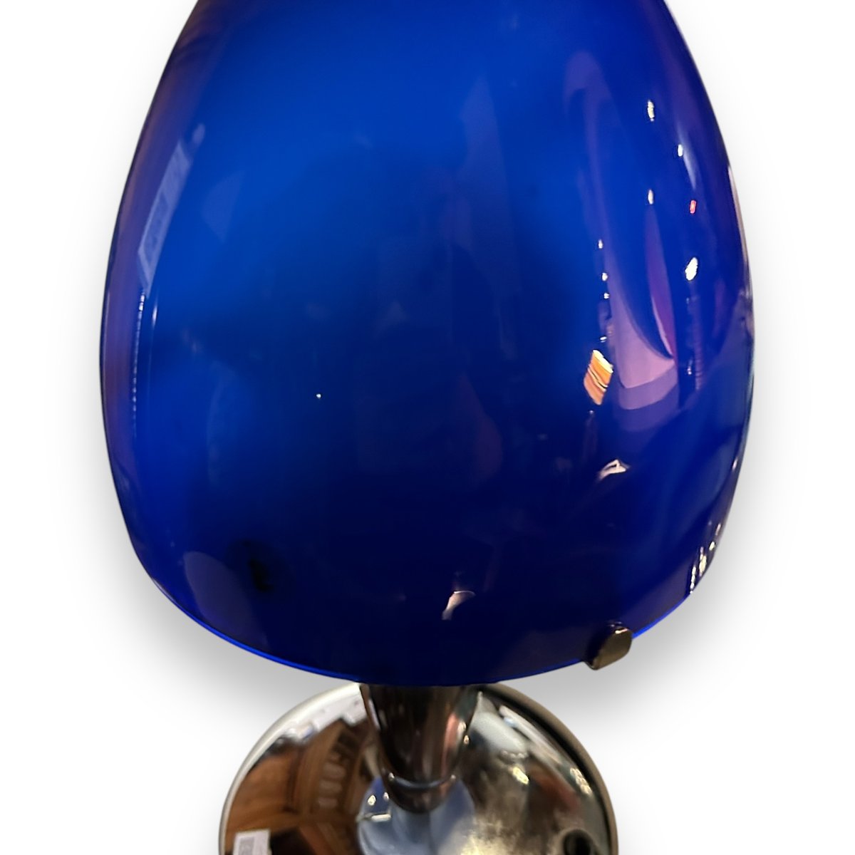 Lampada vintage in vetro blu e metallo cromato di Ikea, anni '90