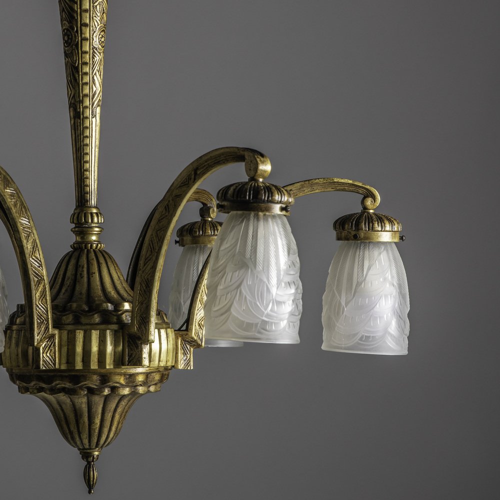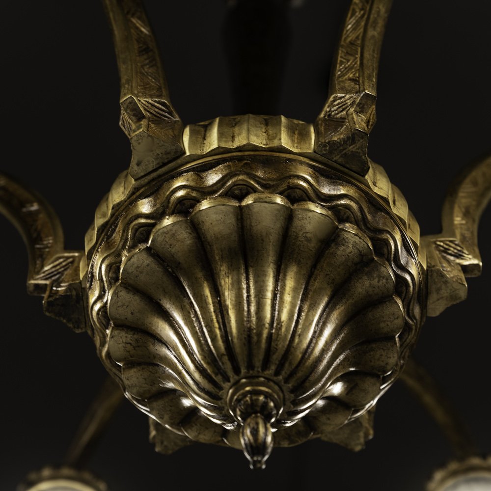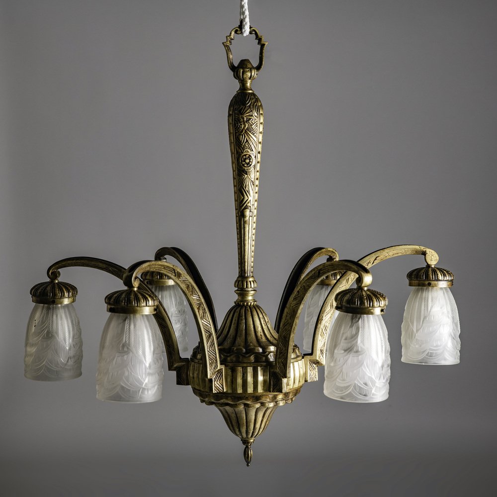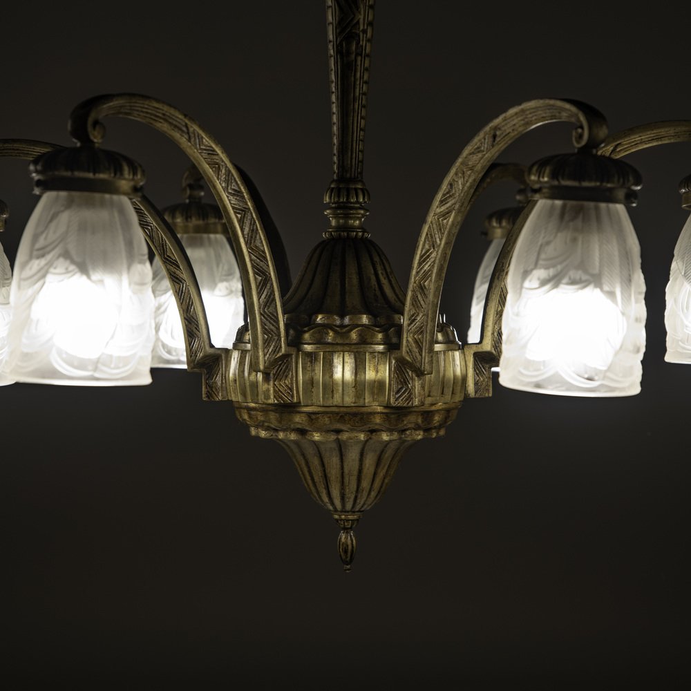 Lampadario Art Déco in bronzo di Hetier & Vincet, anni '30