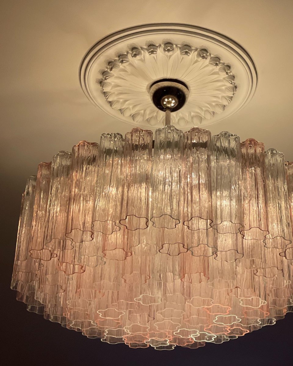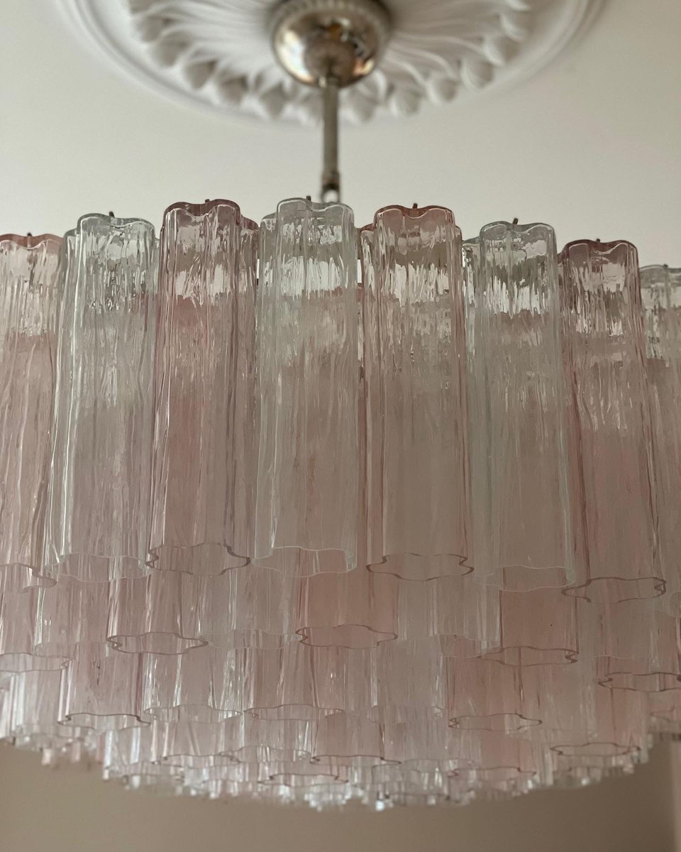 Lampadario grande in vetro di Murano rosa