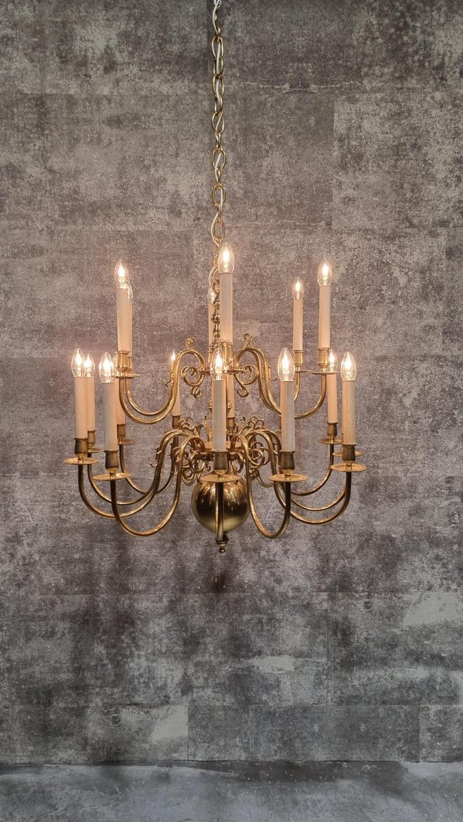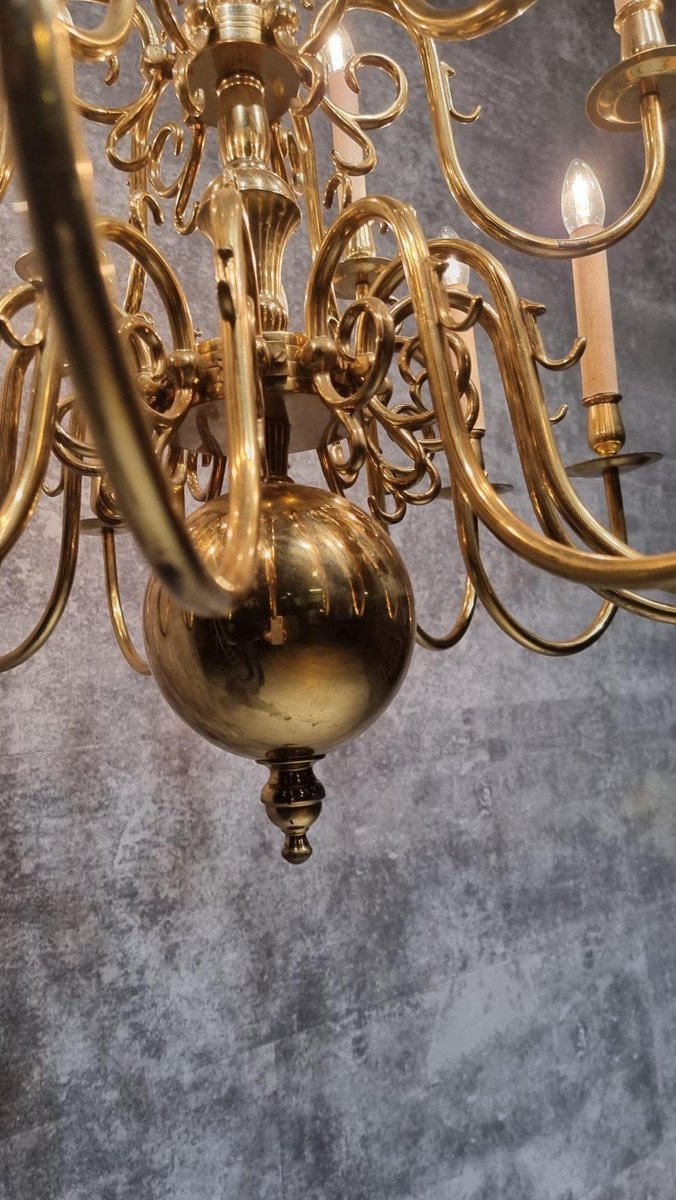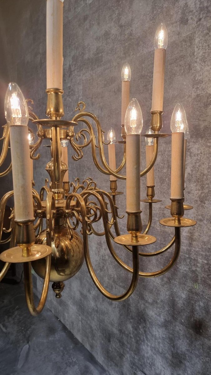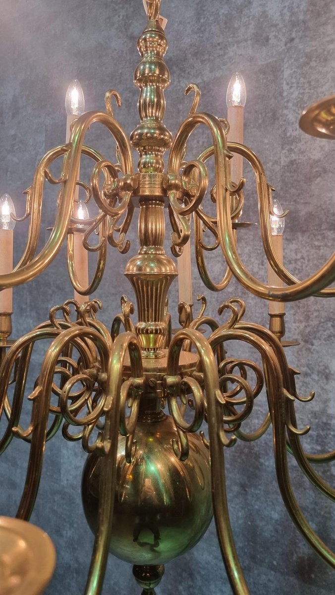 Lampadario in ottone a due livelli, Paesi Bassi, XX secolo