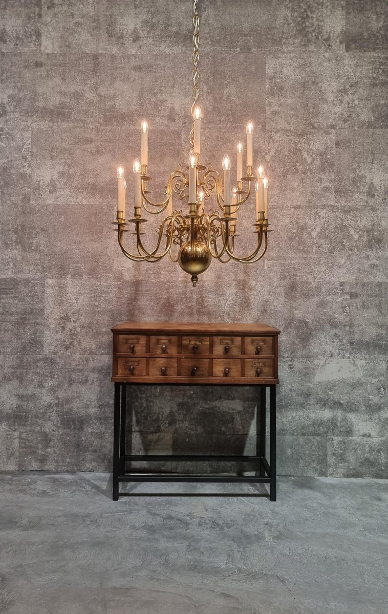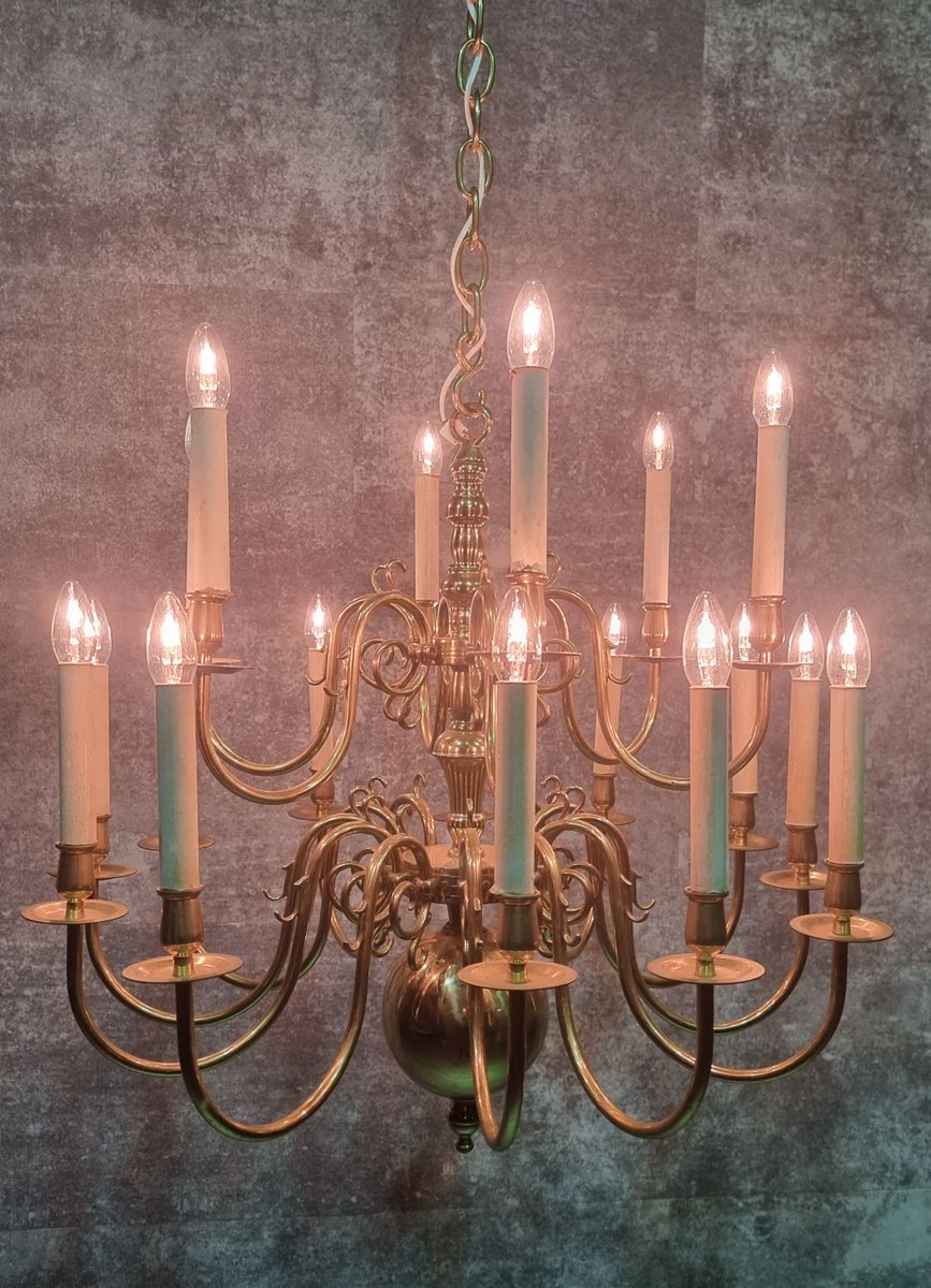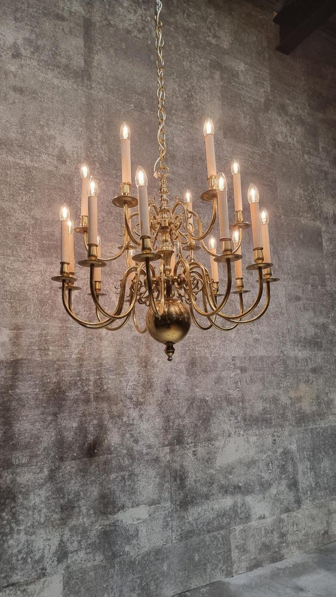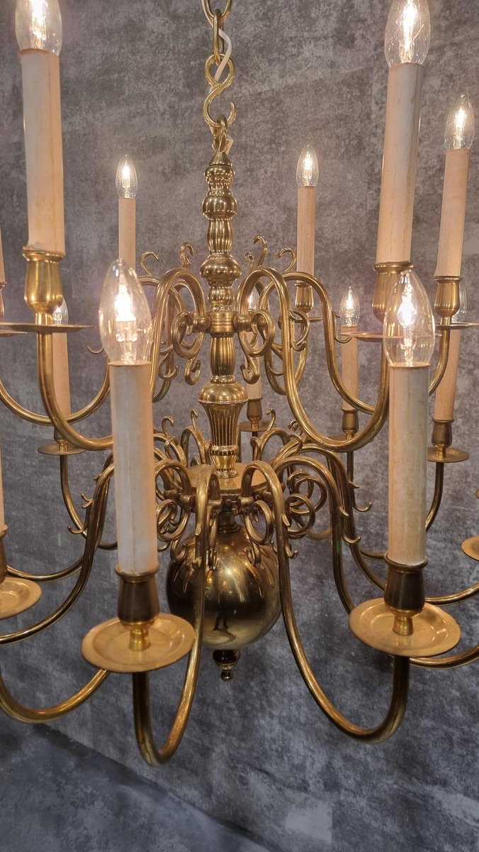 Lampadario in ottone a due livelli, Paesi Bassi, XX secolo