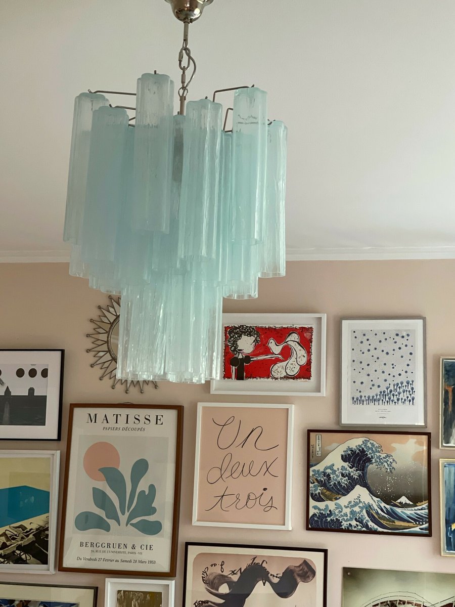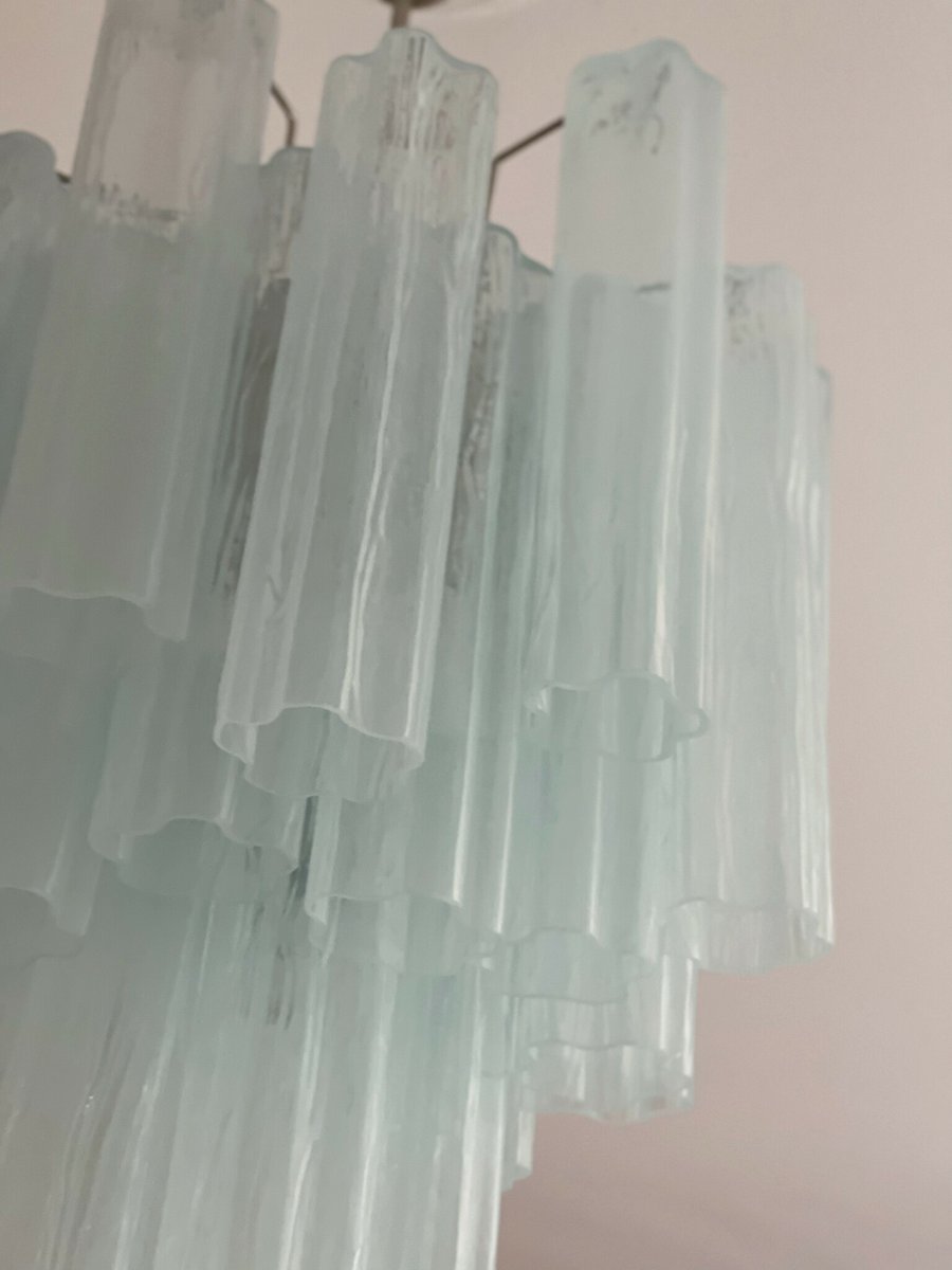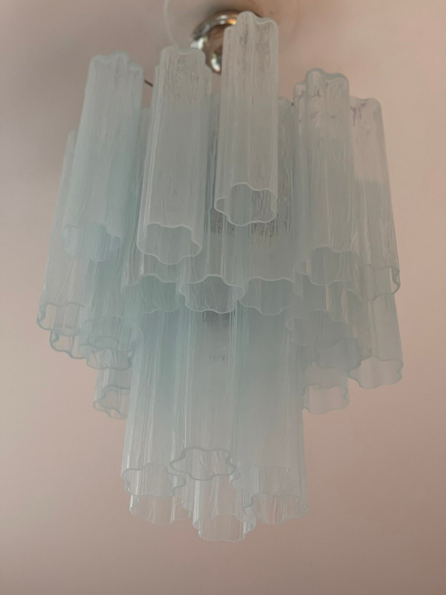 Lampadario in vetro di Murano blu ghiaccio