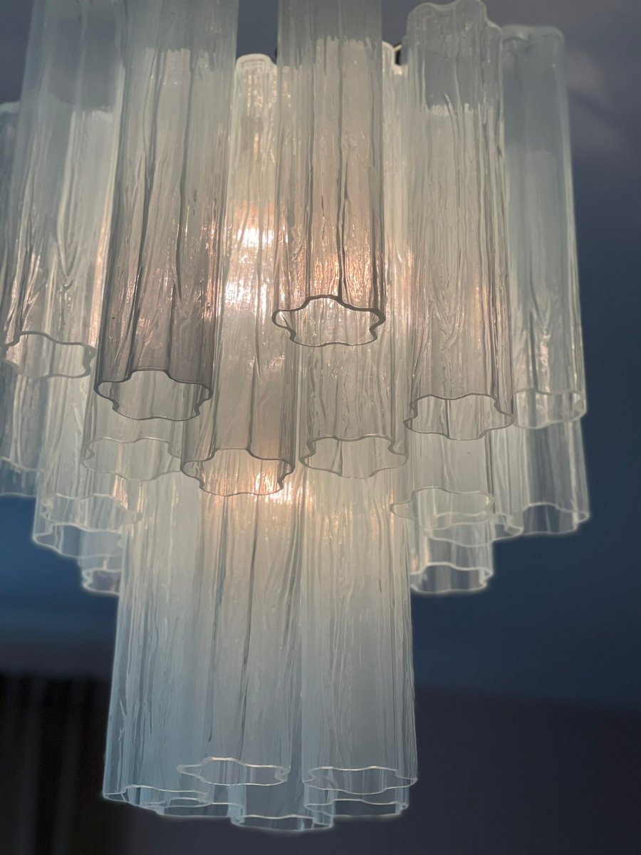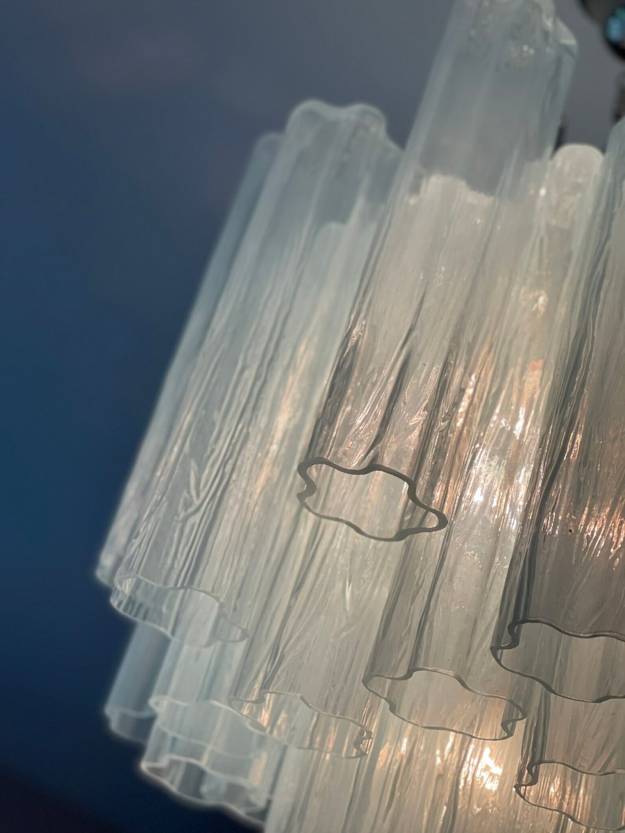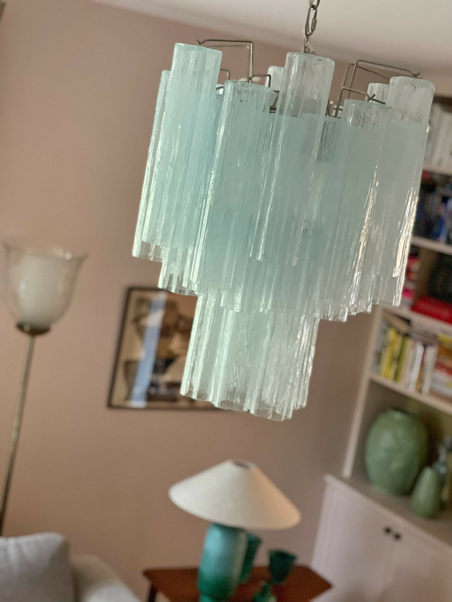 Lampadario in vetro di Murano blu ghiaccio