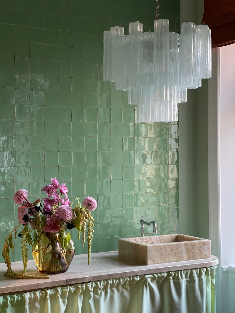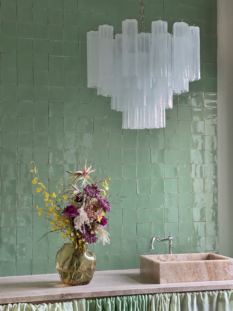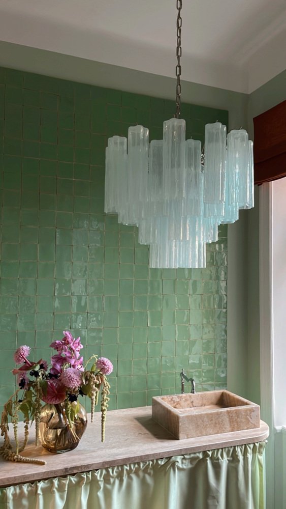 Lampadario in vetro di Murano color menta