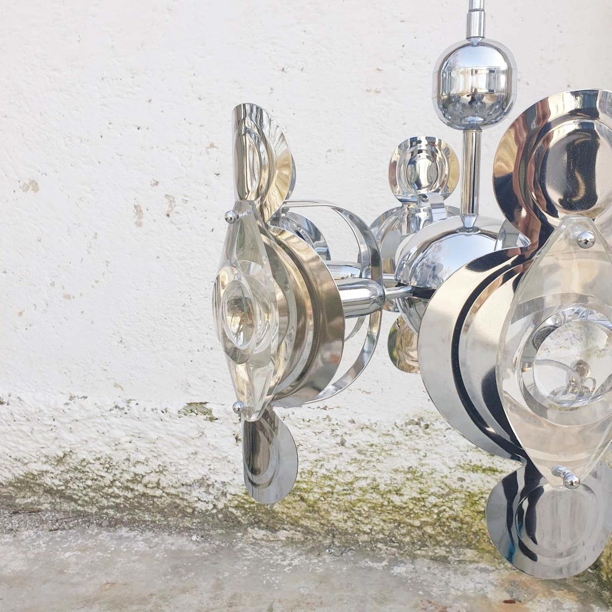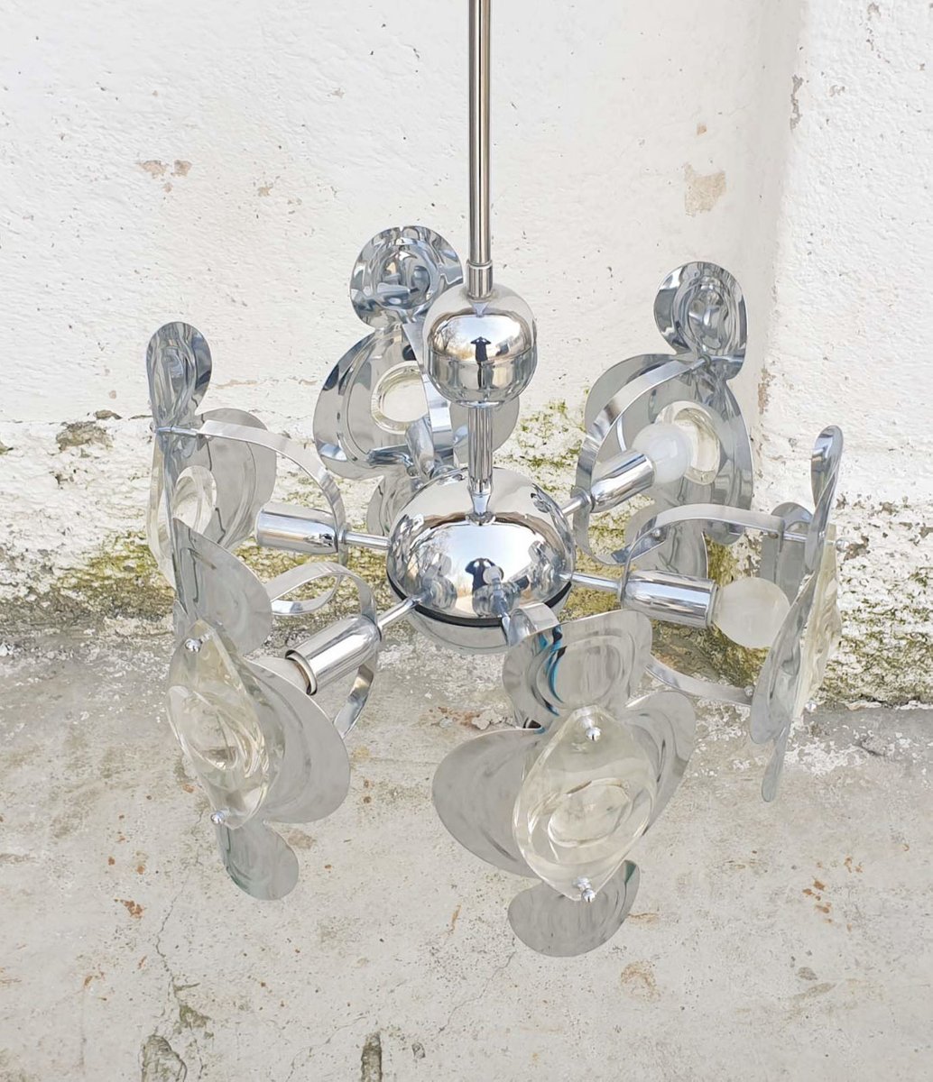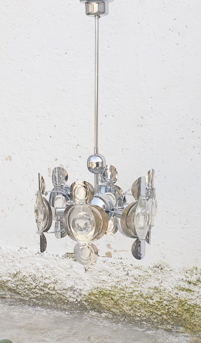 Lampada da soffitto vintage placcata in cromo e vetro di Targetti, anni '70