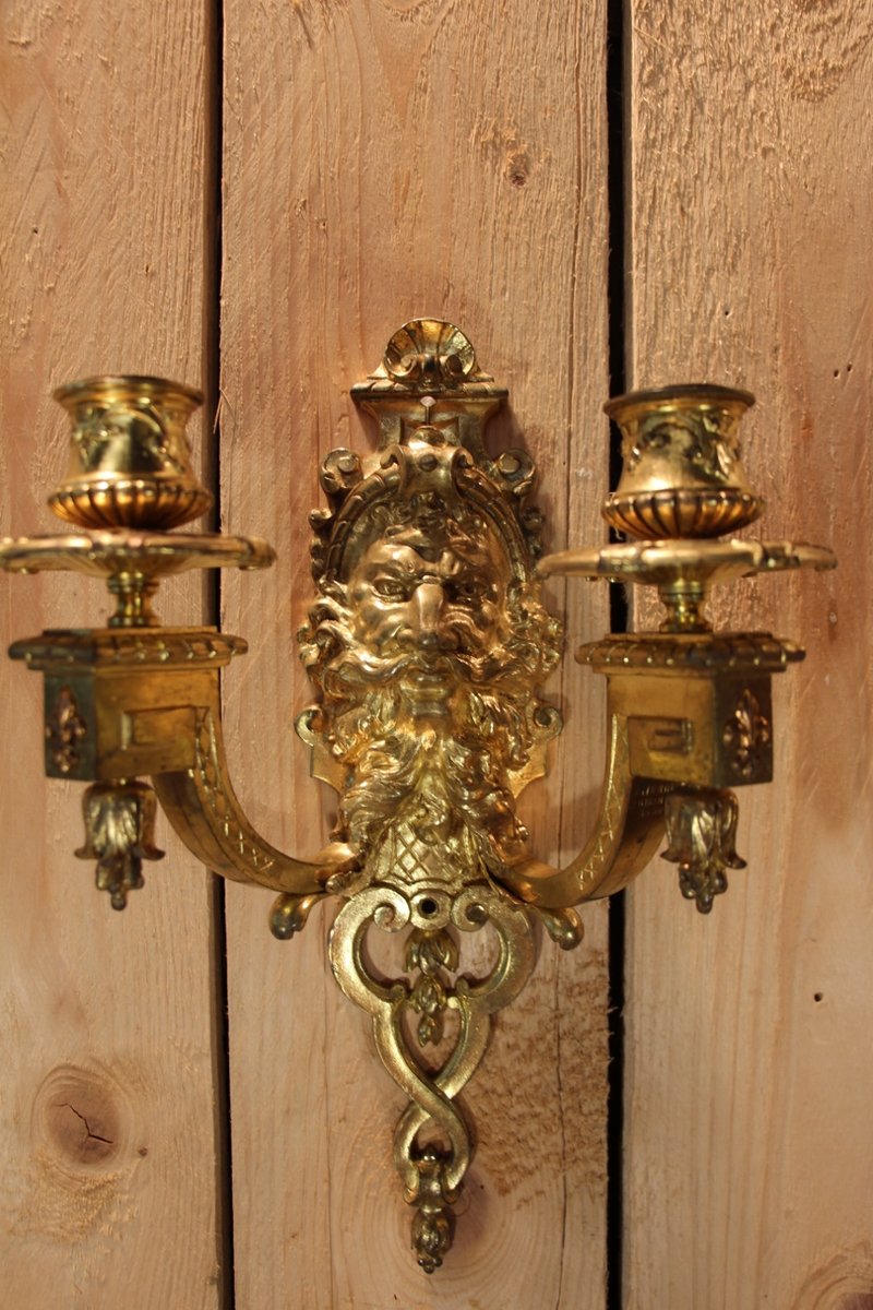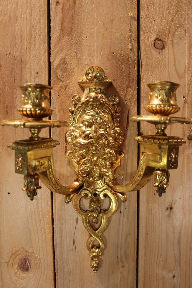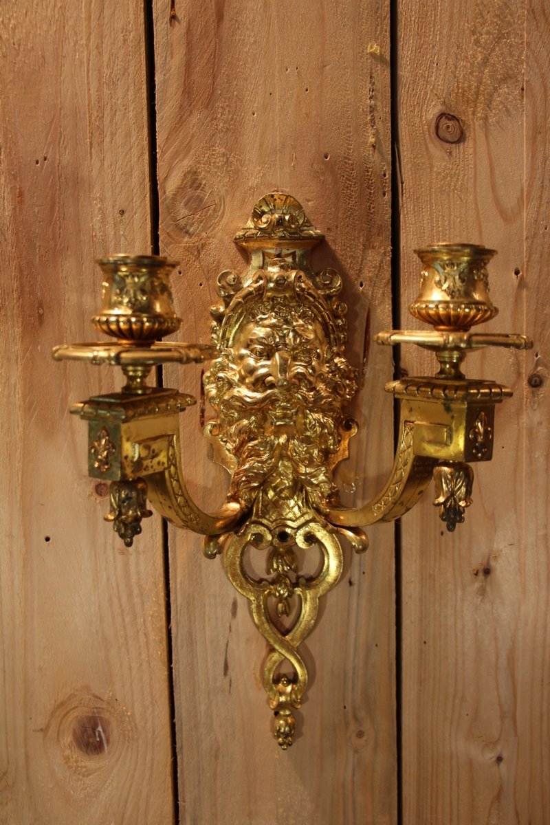 Lampade da parete in bronzo dorato di Etienne Giraud, Lione, Francia, set di 2