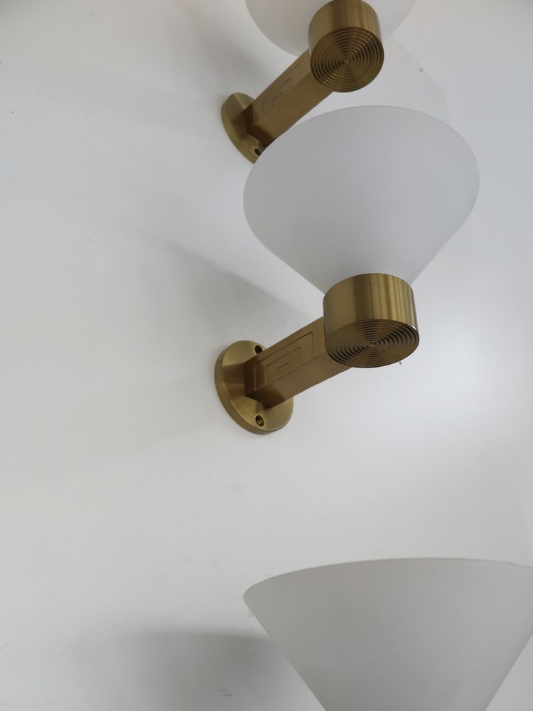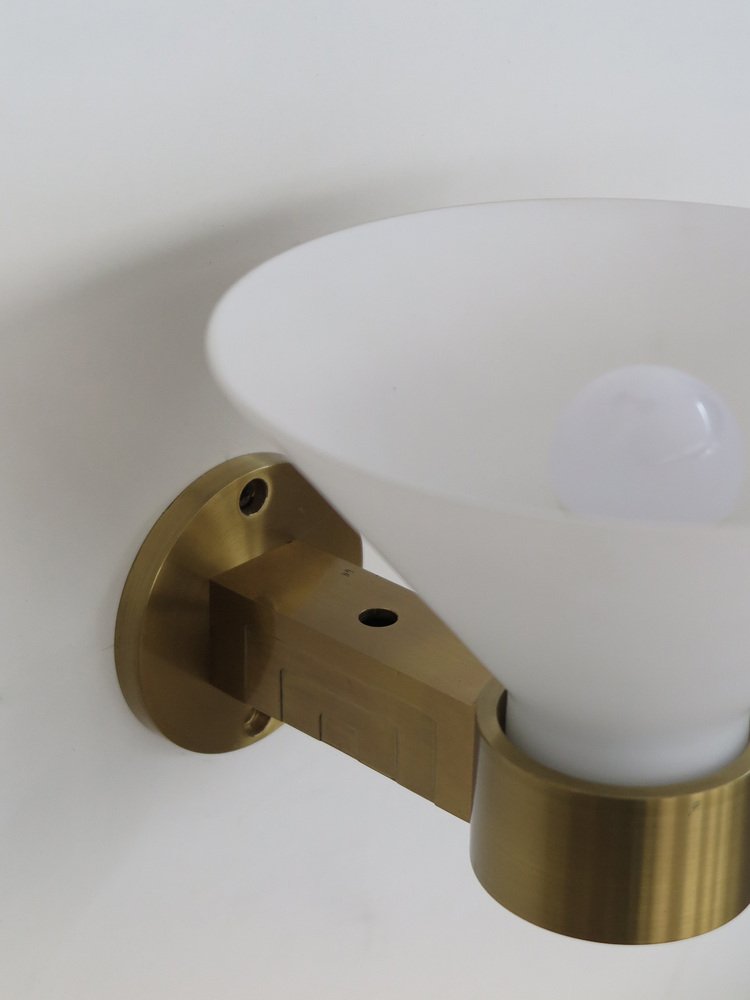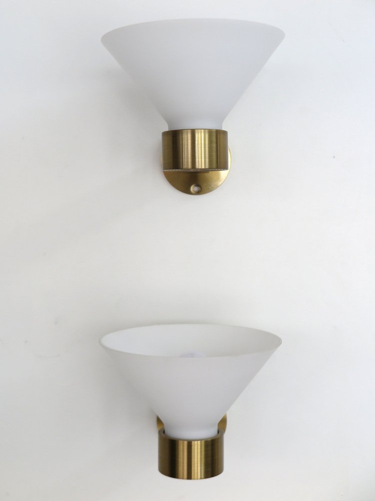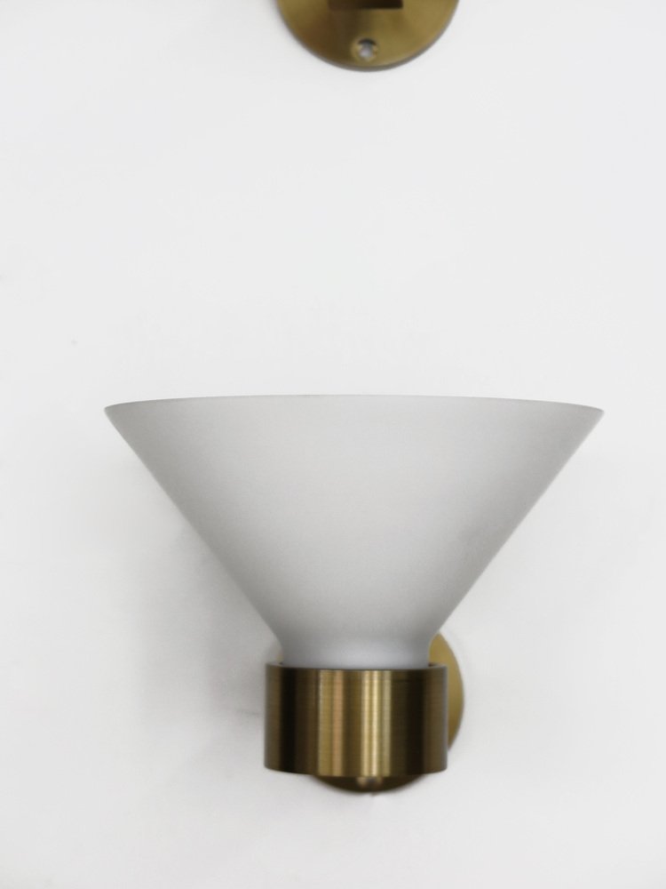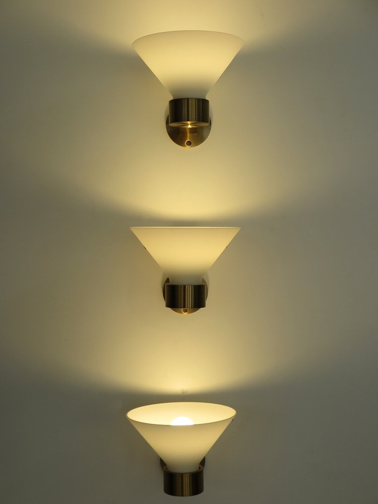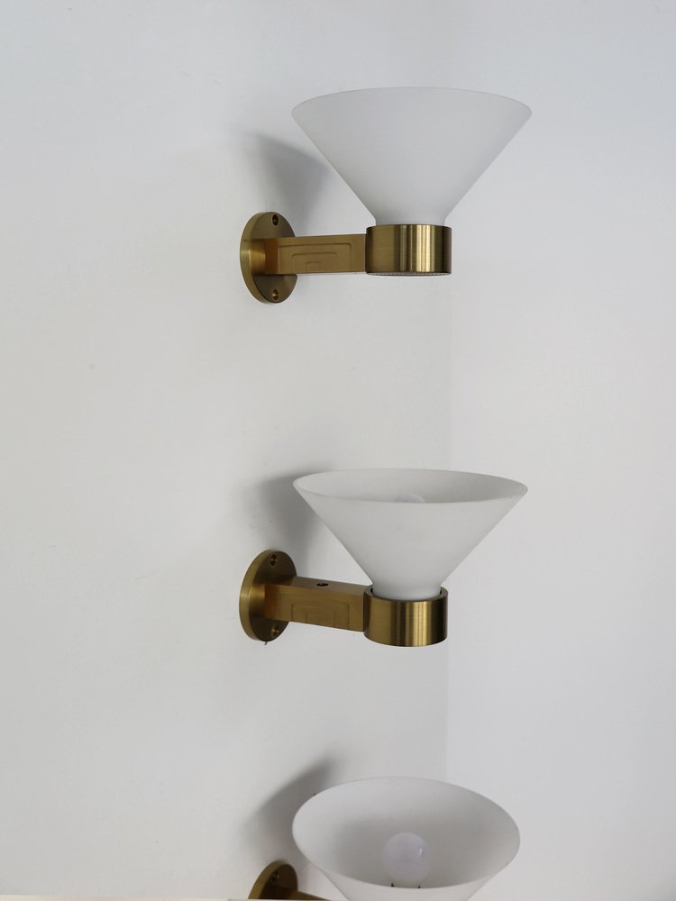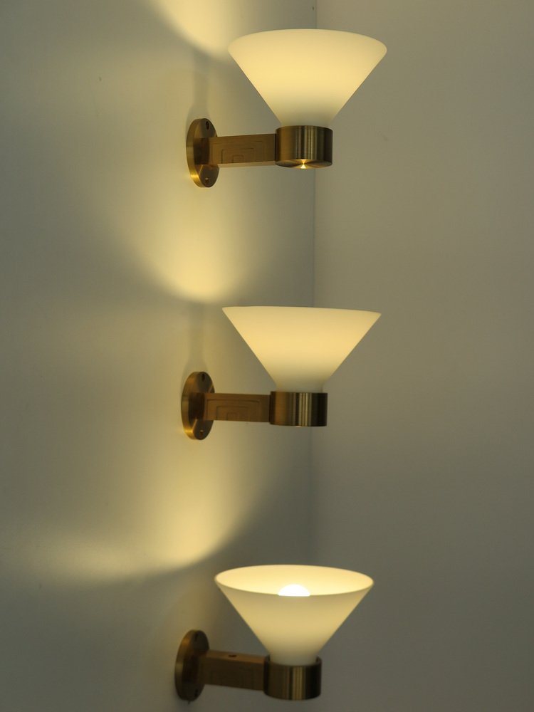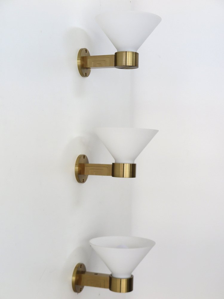 Lampade da parete in ottone e vetro di Murano, Italia, anni '70, set di 3