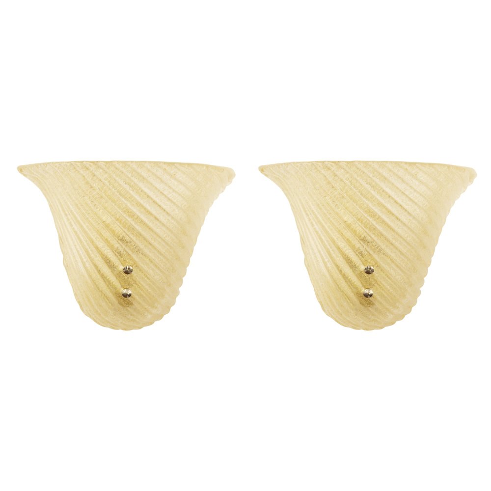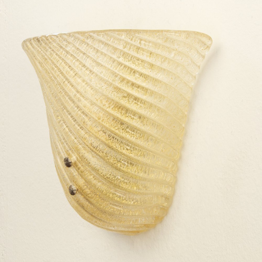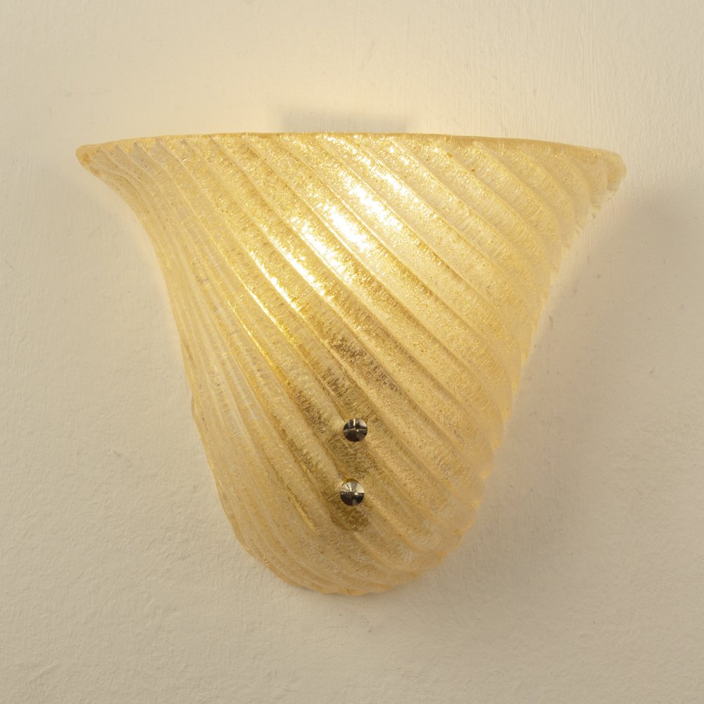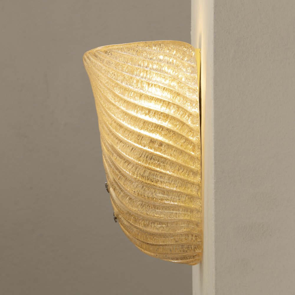 Lampade da parete in vetro di Murano ambrato e dorato, anni '60, set di 2