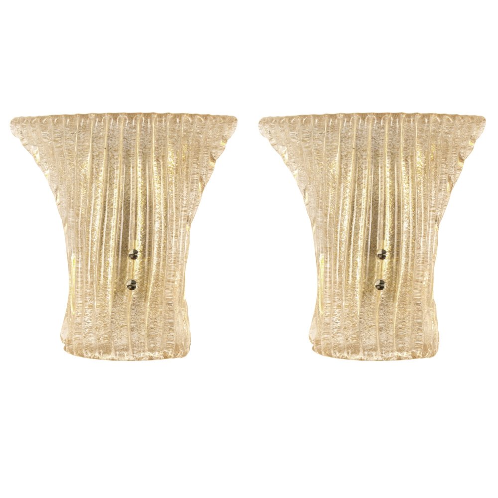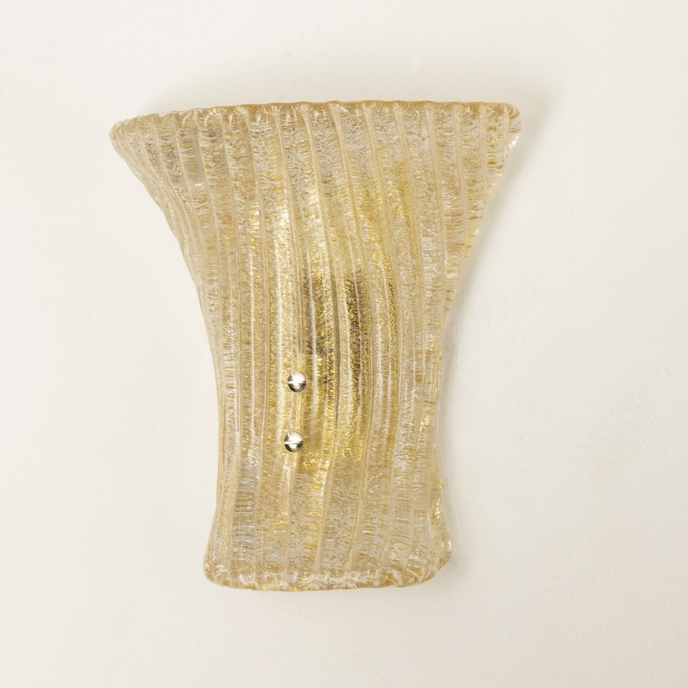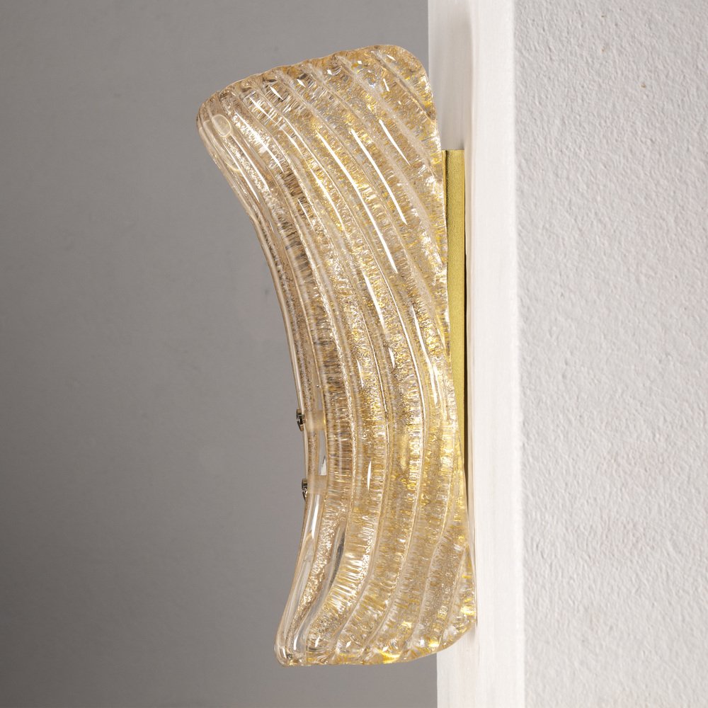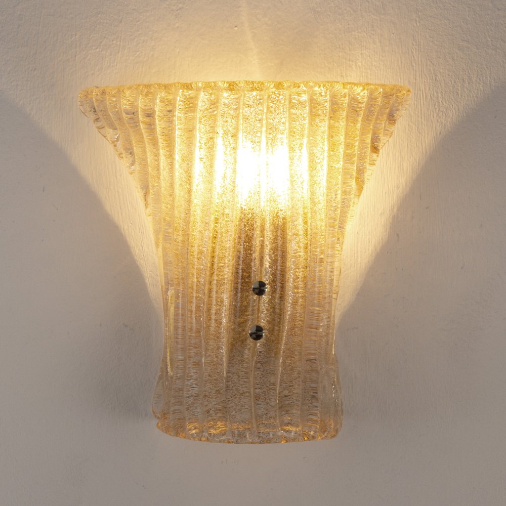 Lampade da parete in vetro di Murano ambrato e dorato, anni '60, set di 2
