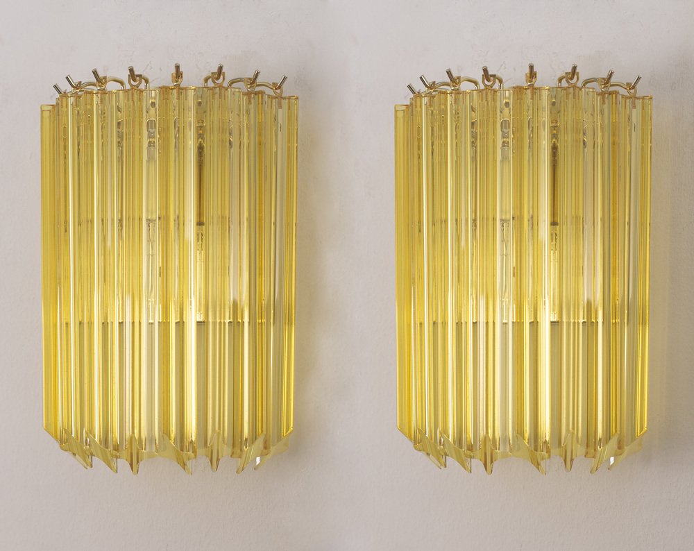 Set di 2 Applique con vetri di Murano quadriedri Made in Italy, elegante lampada da muro
