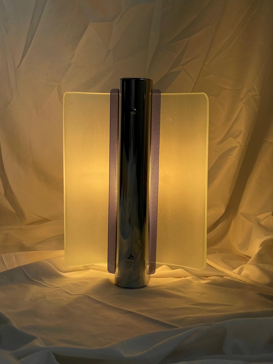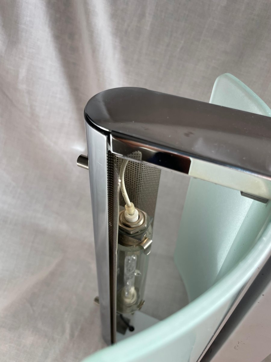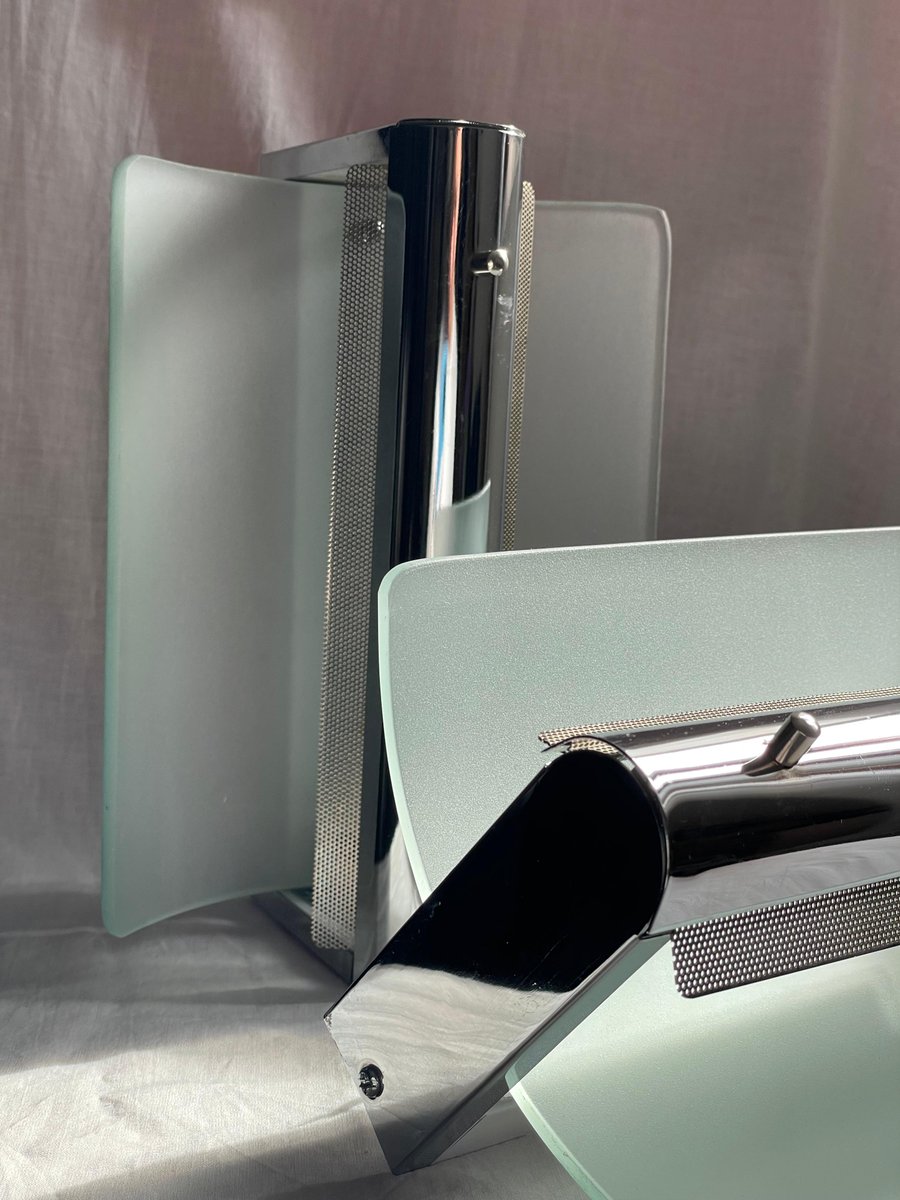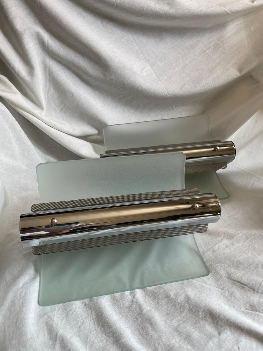 Lampade da parete vintage in metallo cromato e vetro sabbiato, anni '80, set di 2