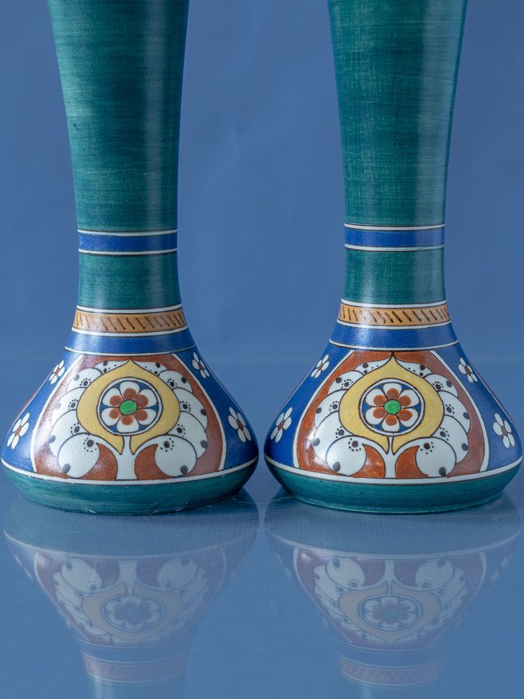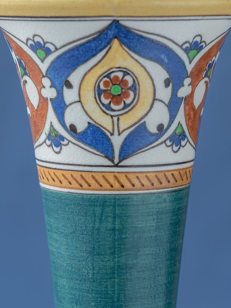 The "Lindus" decor, featured on these vases, was produced between 1910 and 1917—a period marked by a surge in artistic creativity and innovation at the Arnhemsche Fayencefabriek.