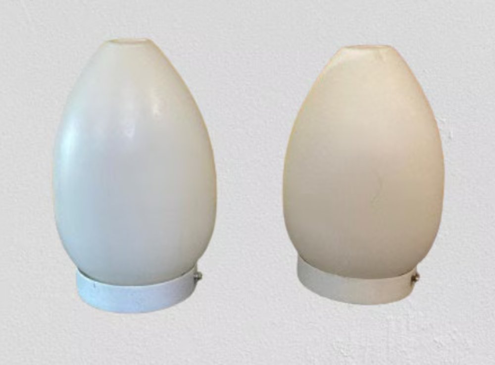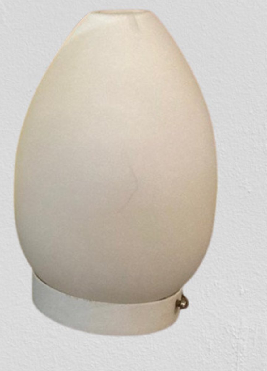 Set di due lampade da tavolo a uovo, pezzi straordinari realizzati con una meticolosa attenzione ai dettagli. Progettate con vetro soffiato satinato a forma di uovo, queste lampade incarnano l'eleganza senza tempo del design in stile Vianne Vintage. La vetreria utilizzata per la loro costruzione presenta un effetto vetro opalino con un foro superiore, che aggiunge un tocco d'arte a qualsiasi spazio. Una meraviglia minimalista, queste lampade combinano una base in metallo semplice, elegante e sobria con un paralume in vetro di ottima fattura.