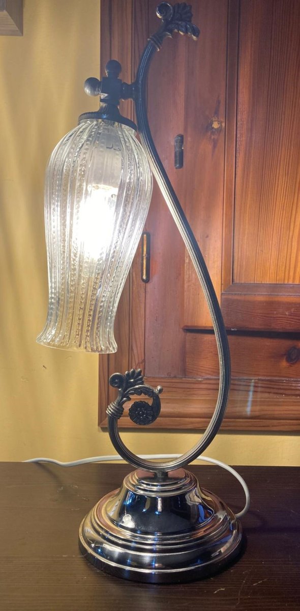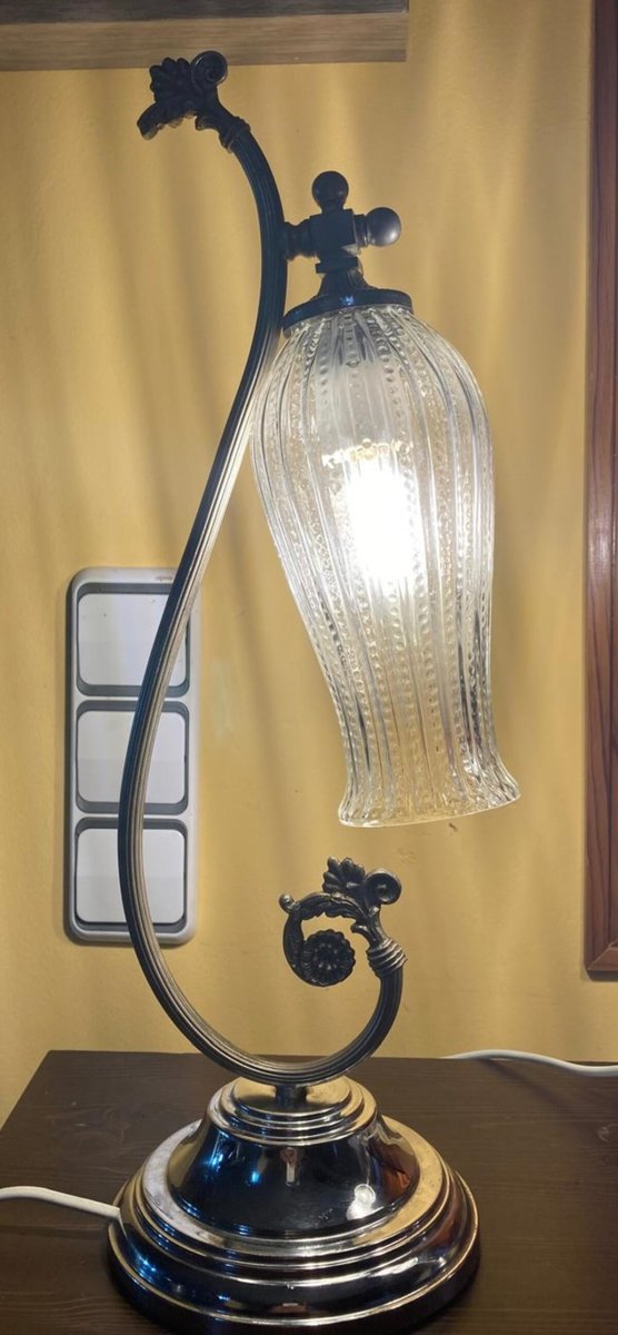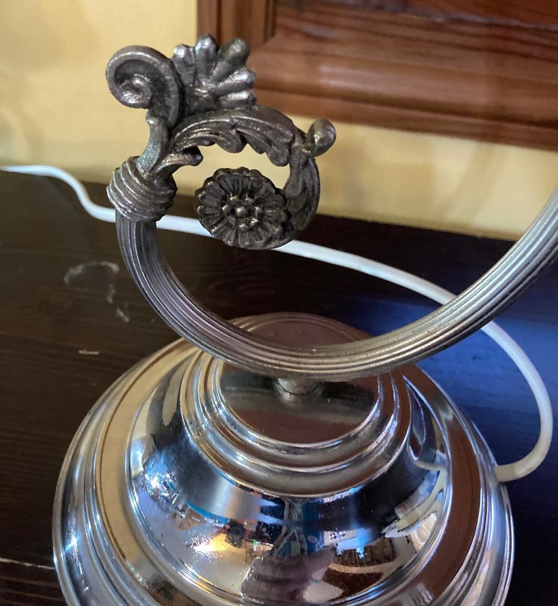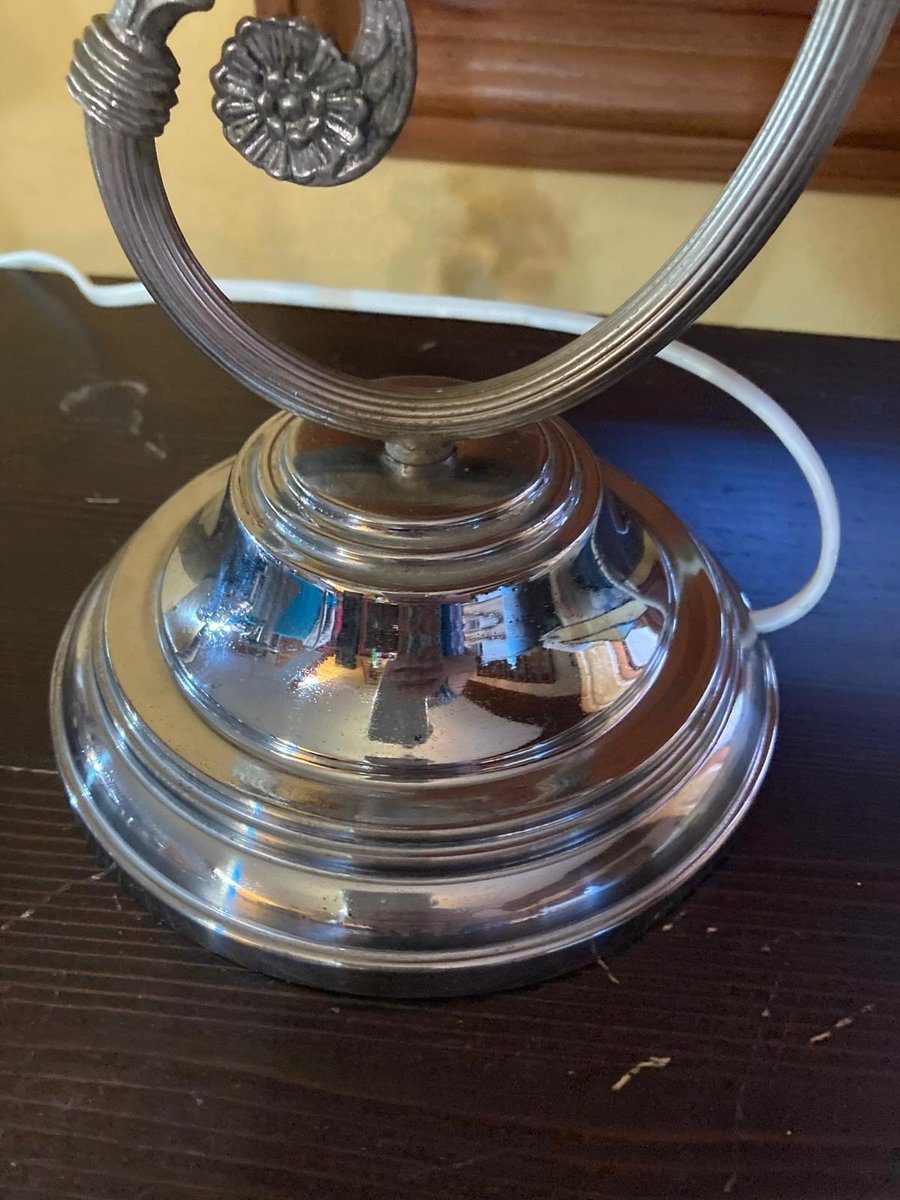 Queste lampade da tavolo vintage in argento e cromo sono pezzi senza tempo che combinano un design neoclassico con un tocco di fascino retrò. Realizzati con materiali di alta qualità, questi pezzi non solo aggiungono un tocco di eleganza a qualsiasi spazio, ma forniscono anche una base robusta per le vostre stoviglie. L'elegante finitura conferisce un aspetto lucido che si integra perfettamente con qualsiasi stile di arredamento, sia esso moderno, industriale o di ispirazione vintage. Il suo fascino vintage aggiunge carattere e calore a qualsiasi ambiente, rendendolo un'aggiunta perfetta alla vostra casa o al vostro ufficio. Elevate il vostro arredamento con la piantana da tavolo Vintage Chrome e godetevi il suo stile duraturo e la sua funzionalità per gli anni a venire.