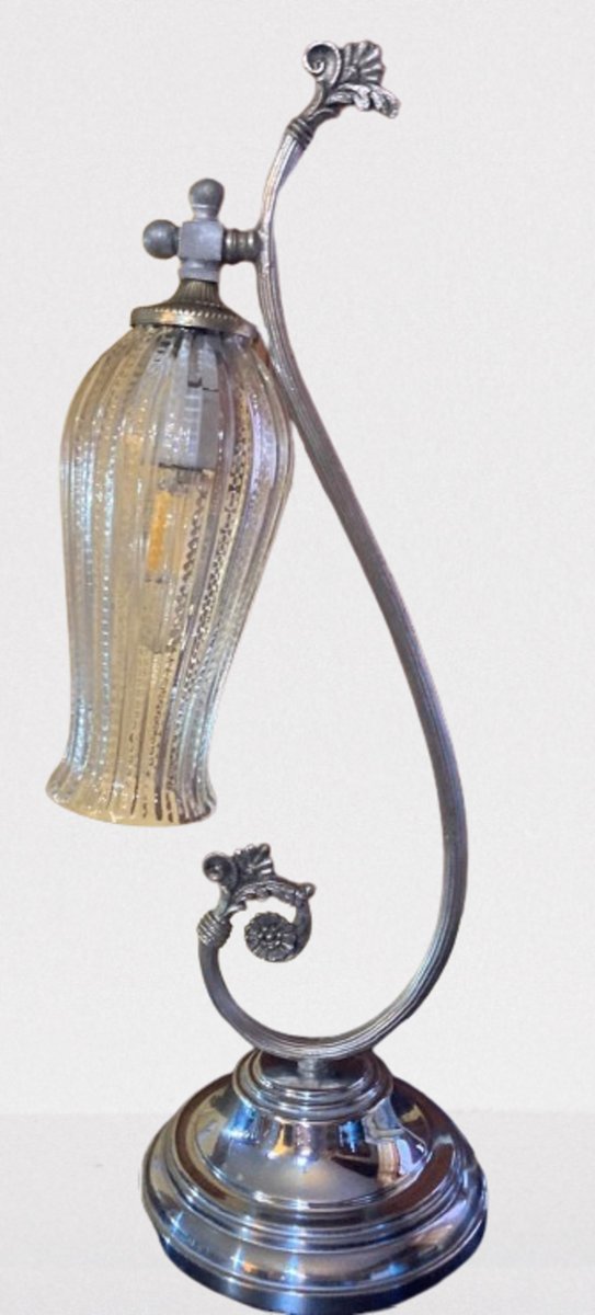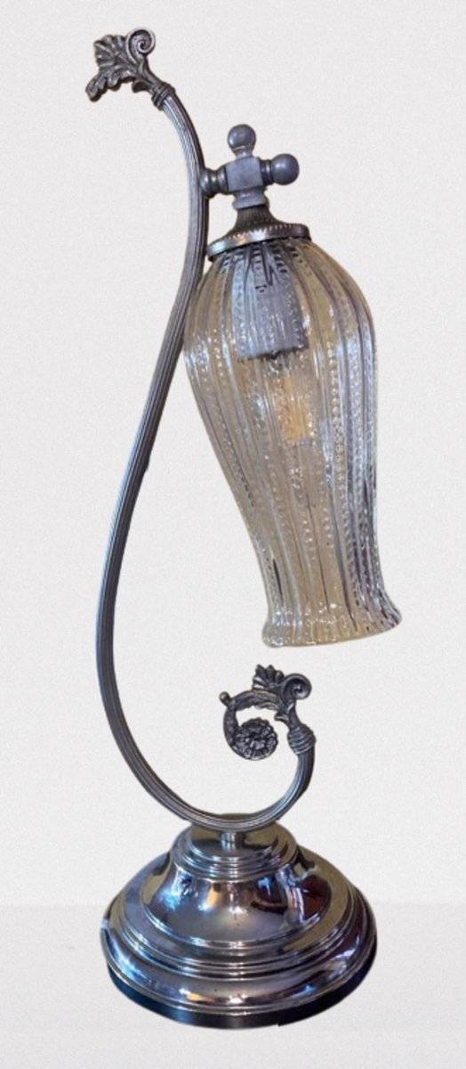 These vintage table lamps in silver and chrome are timeless pieces that combine a neoclassical design with a touch of retro charm. Crafted from high-quality materials, these pieces not only add an elegant touch to any space, but also provide a sturdy base for your tableware. The elegant finish gives them a polished look that effortlessly complements any décor style, whether modern, industrial or vintage-inspired. Its vintage appeal adds character and warmth to any room, making it a perfect addition to your home or office. Elevate your interior design with the Vintage Chrome Table Stand and enjoy its long-lasting style and functionality for years to come.