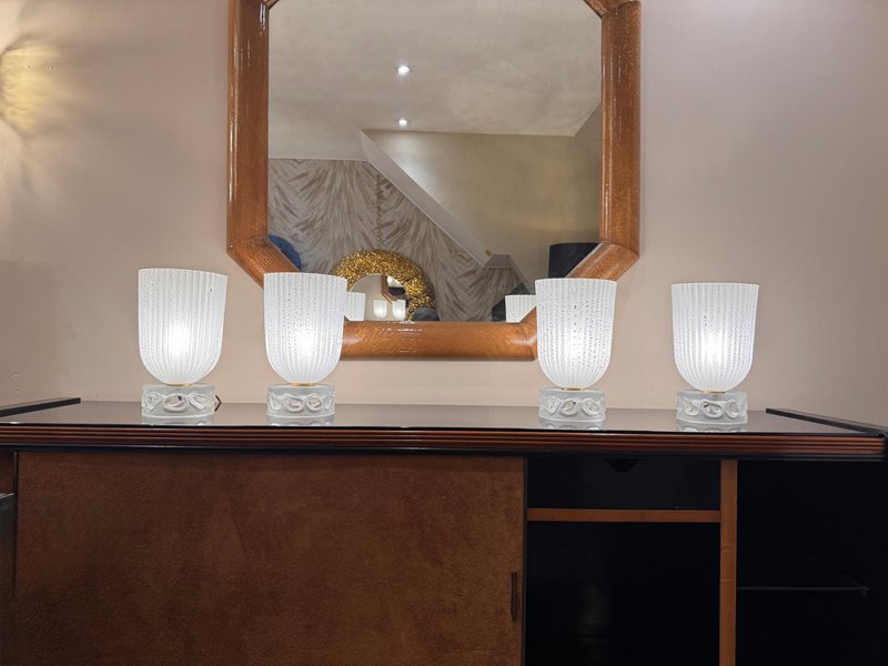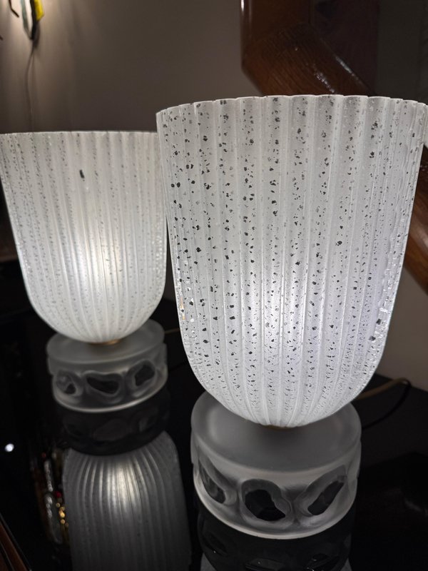Lampade da tavolo Torchiere Art Déco in cristallo a coste, Francia, set di 2