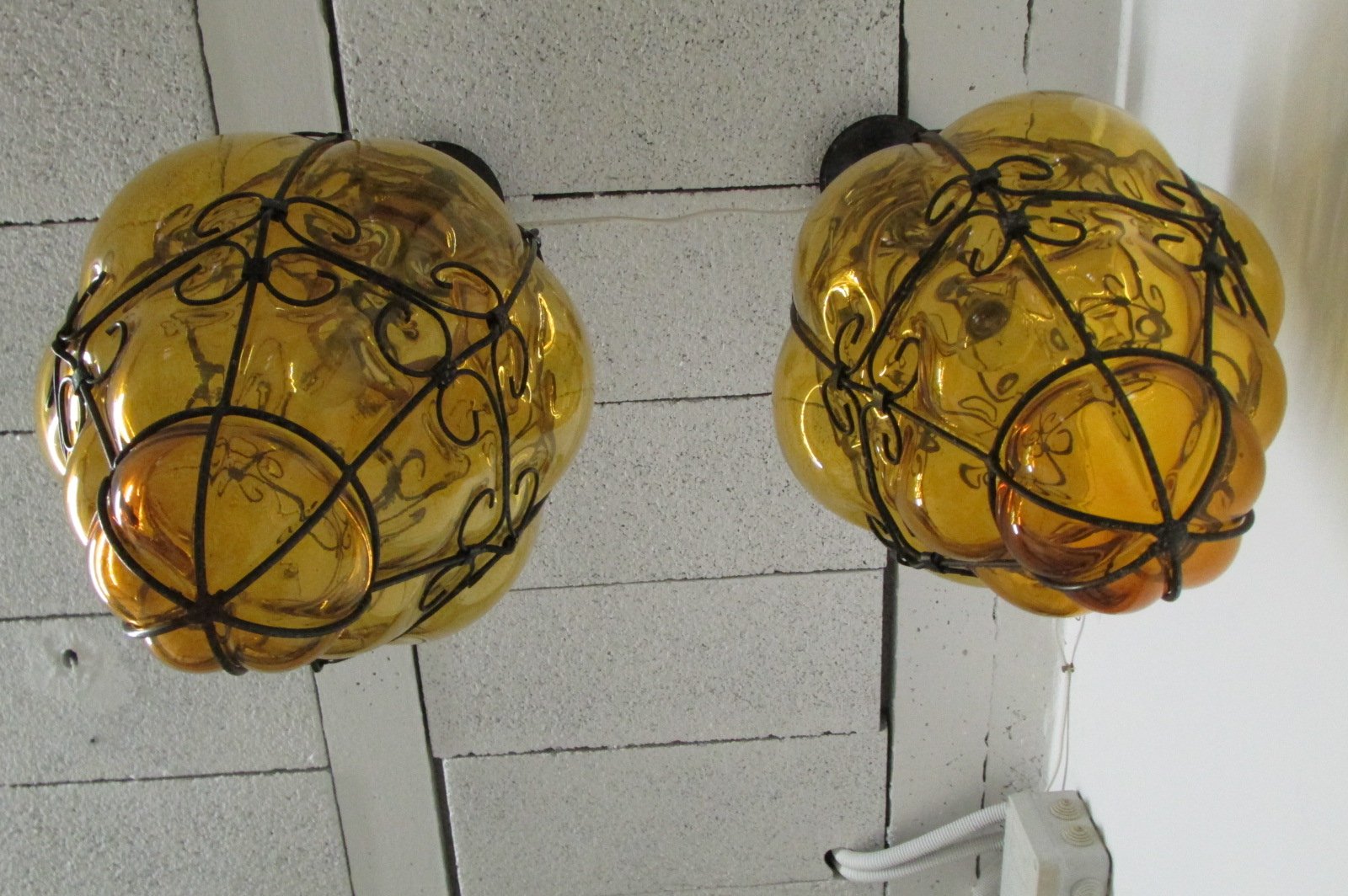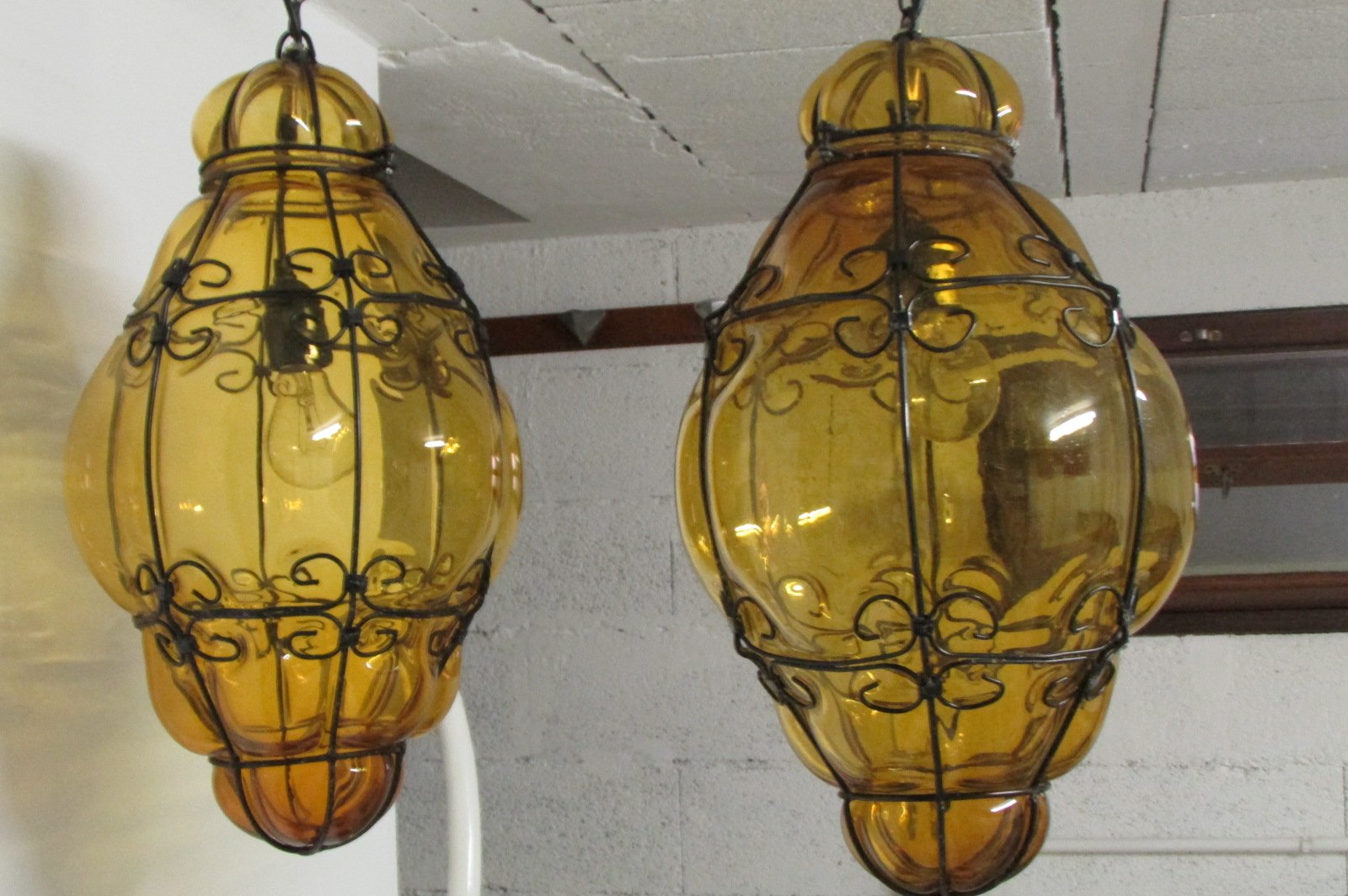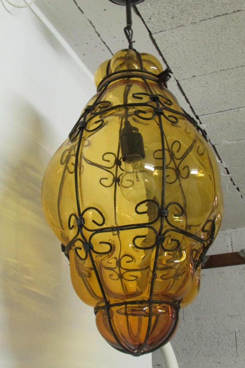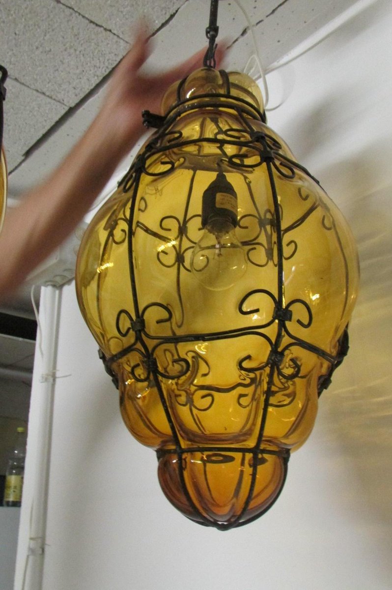 Lanterne veneziane in vetro giallo, anni '40, set di 2
