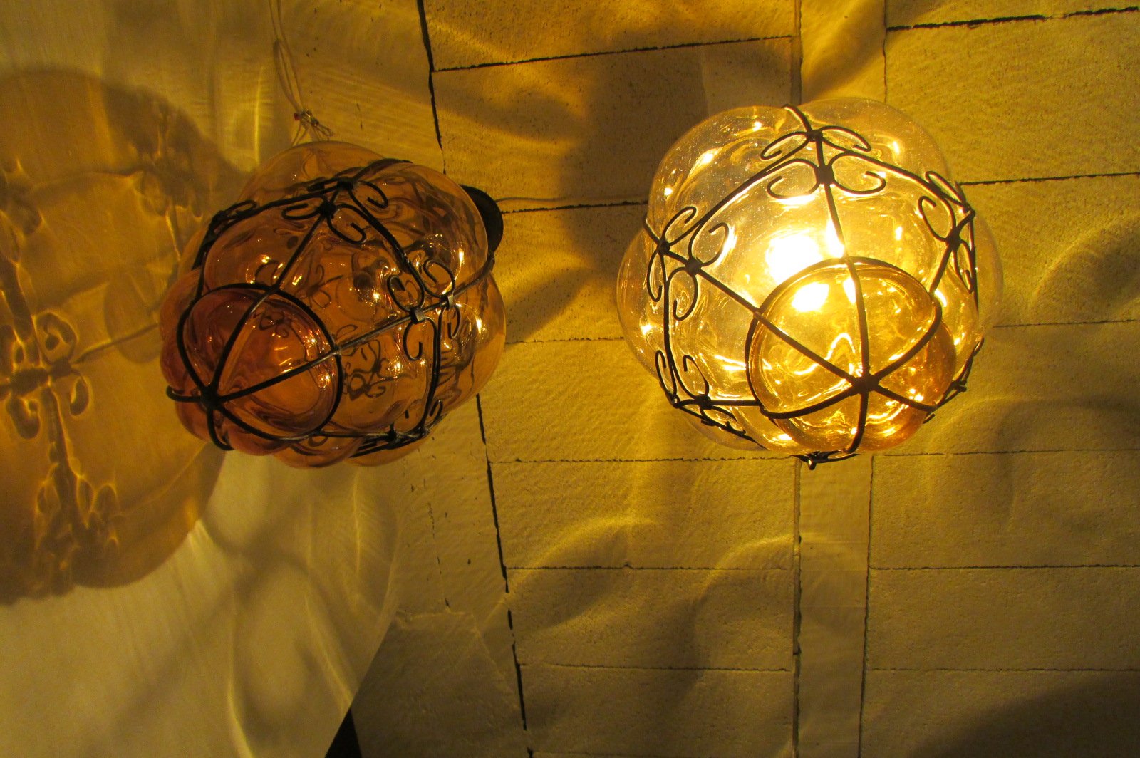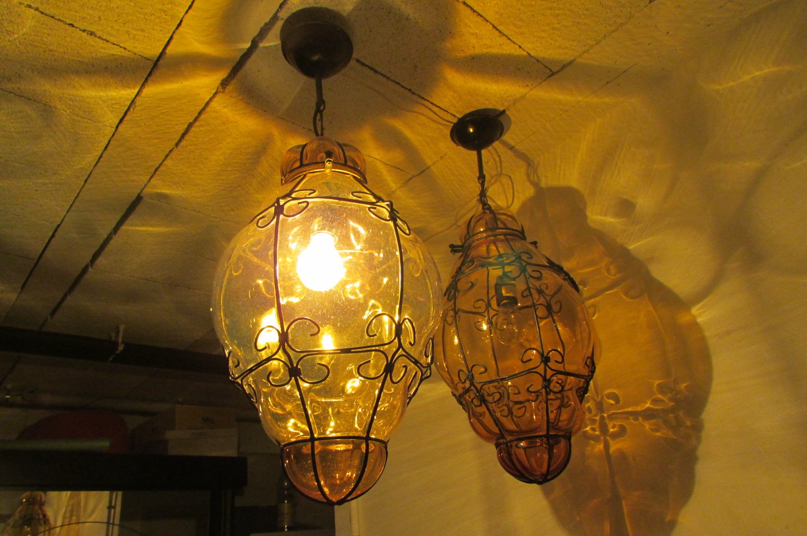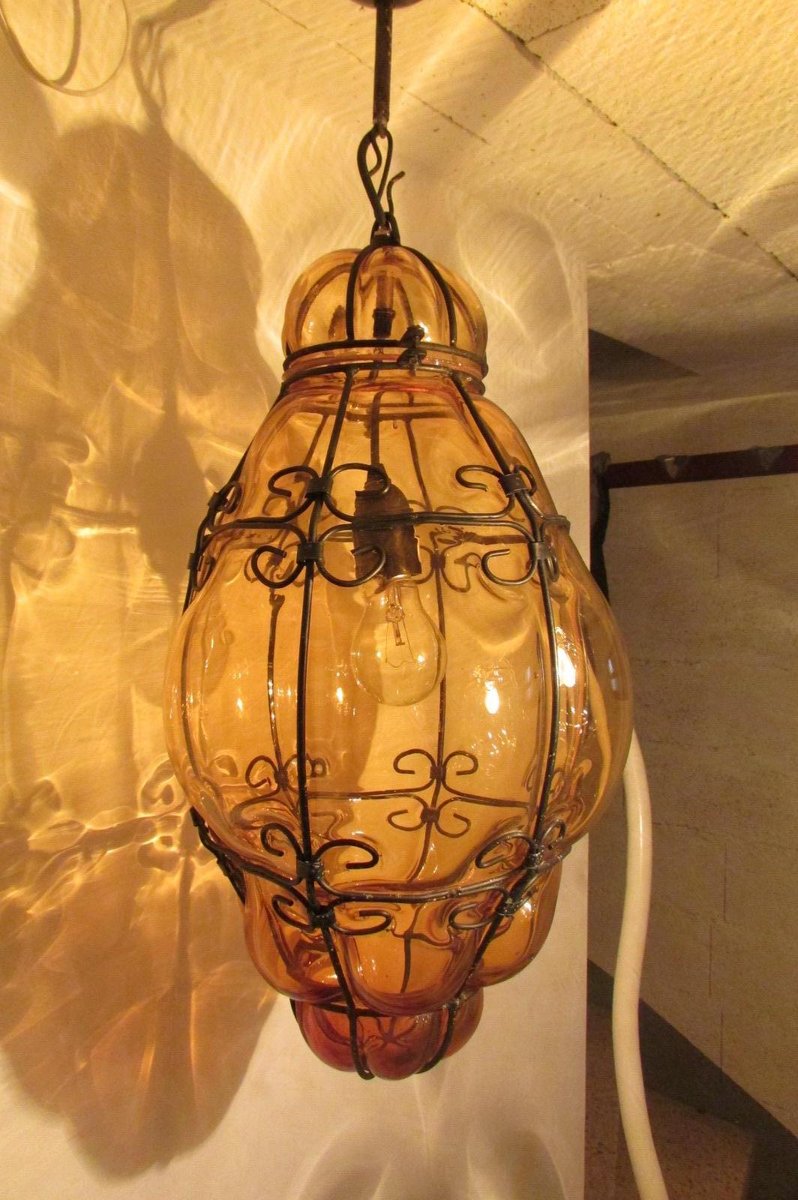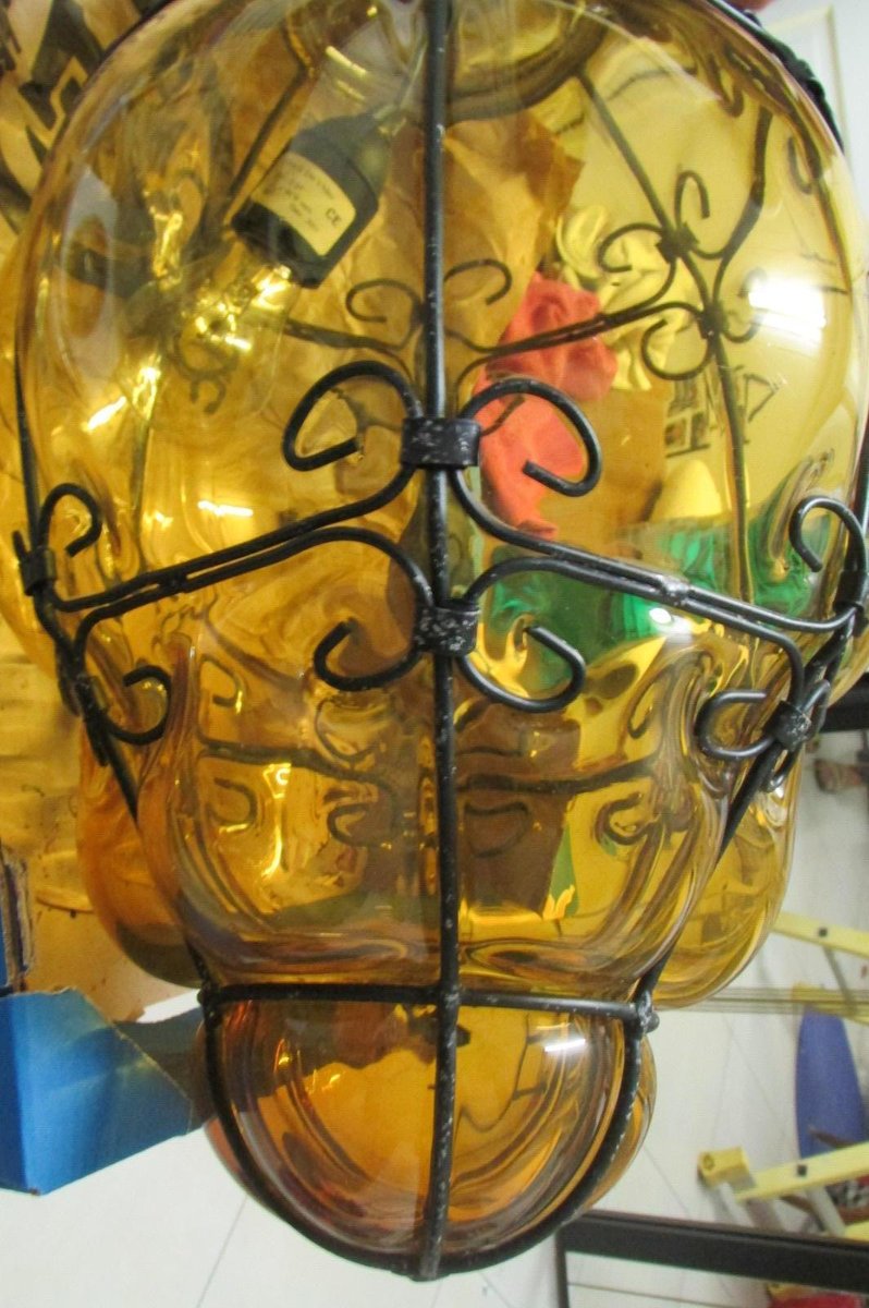 Lanterne veneziane in vetro giallo, anni '40, set di 2