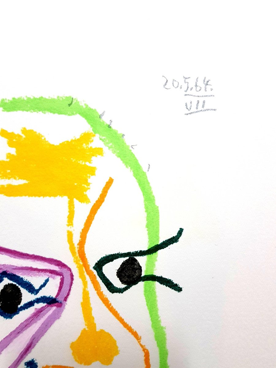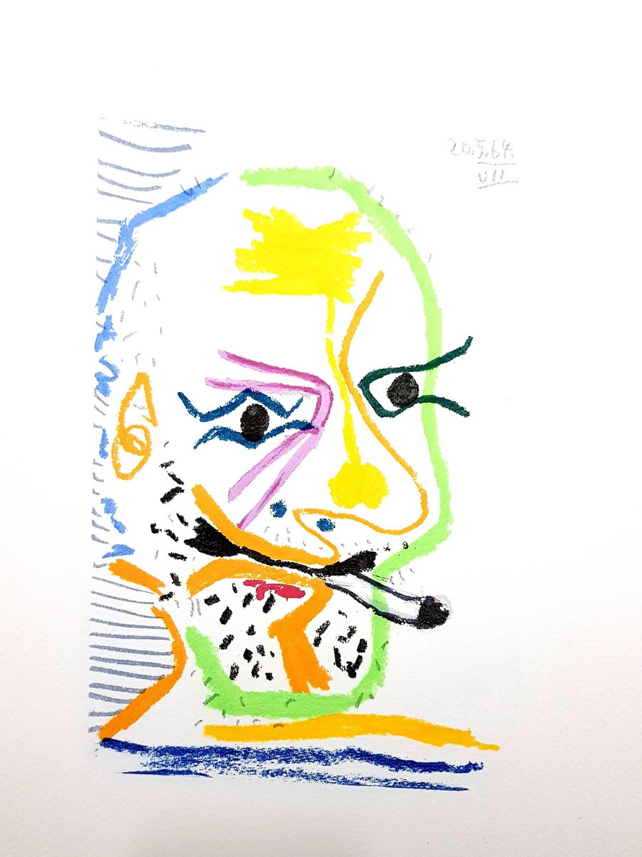 Artist: Pablo Picasso (after) Medium: lithograph, Arches paper Portfolio: Le Goût de Bonheur Year: 1970 Edition: Total of 1998 copies (666 each in German, French and English) Sheet Size: 13'' x 10'' It was produced under the direct supervision of Pablo Picasso Excellent Conditions Picasso - Le Gout Du Bonheur - A Suite Of Happy, Playful And Erotic Drawings - This is the sole edition of re-creations that will ever be made of these unpublished drawings - three publishers have collaborated in its creation - the porfolios have been numbered from 1 to 666. Picasso is not just a man and his work. Picasso is always a legend, indeed almost a myth. In the public view he has long since been the personification of genius in modern art. Picasso is an idol, one of those rare creatures who act as crucibles in which the diverse and often chaotic phenomena of culture are focussed, who seem to body forth the artistic life of their age in one person. The same thing happens in politics, science, sport. And it happens in art. Early life Born in Malaga, Spain, in October of 1881, he was the first child born in the family. His father worked as an artist, and was also a professor at the school of fine arts; he also worked as a curator for the museum in Malaga. Pablo Picasso studied under his father for one year, then went to the Academy of Arts for one year, prior to moving to Paris. In 1901 he went to Paris, which he found as the ideal place to practice new styles, and experiment with a variety of art forms. It was during these initial visits, which he began his work in surrealism and cubism style, which he was the founder of, and created many distinct pieces which were influenced by these art forms. Updates in style During his stay in Paris, Pablo Picasso was constantly updating his style; he did work from the blue period, the rose period, African influenced style, to cubism, surrealism, and realism. Not only did he master these styles, he was a pioneer in each of these movements, and influenced the styles to follow throughout the 20th century, from the initial works he created. In addition to the styles he introduced to the art world, he also worked through the many different styles which appeared, while working in Paris. Not only did he continually improve his style, and the works he created, he is well known because of the fact that he had the ability to create in any style which was prominent during the time. Russian ballet In 1917, Pablo Picasso joined the Russian Ballet, which toured in Rome; during this time he met Olga Khoklova, who was a ballerina; the couple eventually wed in 1918, upon returning to Paris. The couple eventually separated in 1935; Olga came from nobility, and an upper class lifestyle, while Pablo Picasso led a bohemian lifestyle, which conflicted. Although the couple separated, they remained officially married, until Olga's death, in 1954. In addition to works he created of Olga, many of his later pieces also took a centralized focus on his two other love interests, Marie Theresa Walter and Dora Maar. Pablo Picasso remarried Jacqueline Roque in 1961; the couple remained married until his death 12 years later, in 1973. Work as a pacifist Pablo Picasso was a pacifist, and large scale paintings he created, showcased this cry for peace, and change during the time. A 1937 piece he created, after the German bombing of Guernica, was one such influential piece of the time. Not only did this become his most famous piece of art work, but the piece which showed the brutality of war, and death, also made him a prominent political figure of the time. To sell his work, and the message he believed in, art, politics, and eccentricity, were among his main selling points. Conflicting with social views Many things Pablo Picasso did during the 1950s, conflicted with the general public. Viciousness towards his children, exaggerated virility towards women, and joining the Communist party, were some of the many scandals which he was involved in during his lifetime. Although most of the things he did were viewed negatively by a minority of the general public, admirers of Pablo Picasso turned a blind eye, and still accepted him as a prominent figure in their society. Following the end of WWII, Pablo Picasso turned back towards his classic style of work, and he created the ''Dove of Peace.'' Even though he became a member of the Communist party, and supported Stalin and his political views and rule, Pablo Picasso could do no wrong. In the eyes of his admirers and supporters, he was still a prominent figure, and one which they would follow, regardless of what wrongs he did. He was not only an influence because of the works he created, but he was also an influential figure in the political realm. Influence outside of art Although Pablo Picasso is mainly known for his influence to the art world, he was an extremely prominent figure during his time, and to the 20th century in general. He spread his influences to the art world, but also to many aspects of the cultural realm of life as well. He played several roles in film, where he always portrayed himself; he also followed a bohemian lifestyle, and seemed to take liberties as he chose, even during the later stages of his life. He even died in style, while hosting a dinner party in his home. Collection of work Pablo Picasso is recognized as the world's most prolific painter. His career spanned over a 78 year period, in which he created: 13,500 paintings, 100,000 prints and engravings, and 34,000 illustrations which were used in books. He also produced 300 sculptures and ceramic pieces during this expansive career. It is also estimated that over 350 pieces which he created during his career, have been stolen; this is a figure that is far higher than any other artist throughout history. Sale of his works Pablo Picasso has also sold more pieces, and his works have brought in higher profit margins, than any other artist of his time. His pieces rank among the most ex