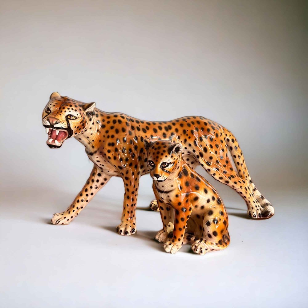 Leopardi vintage in ceramica, Italia, anni '50, set di 2