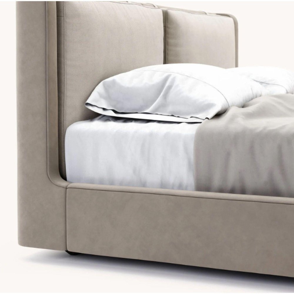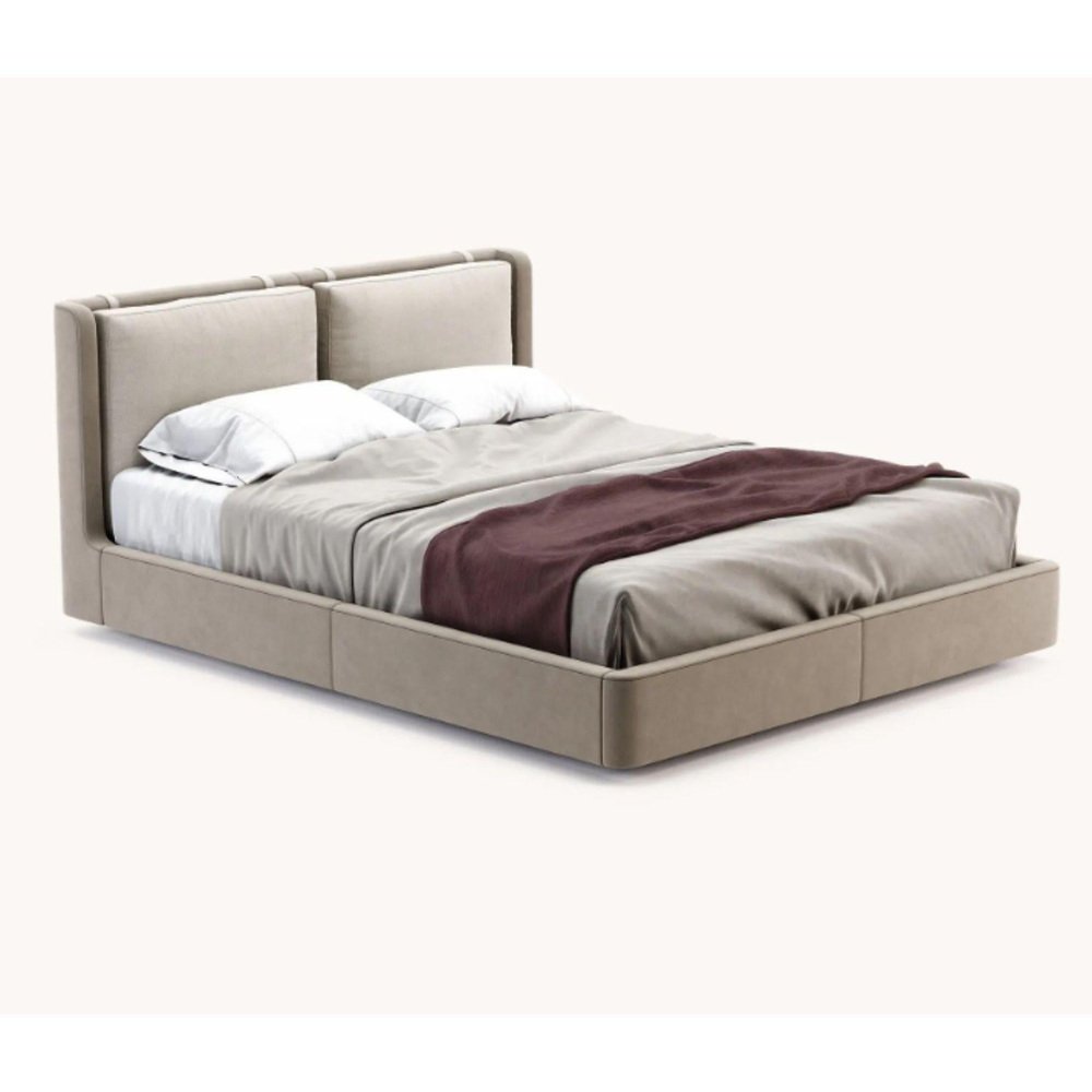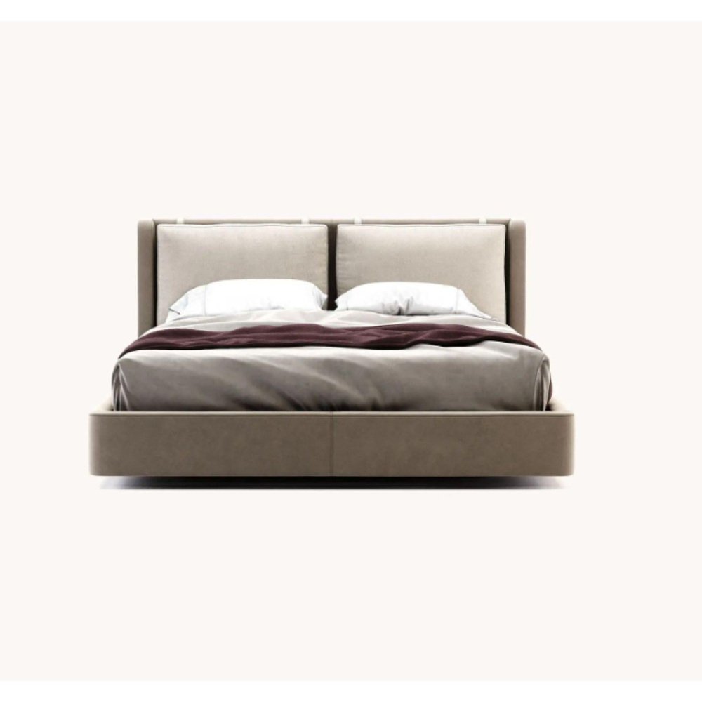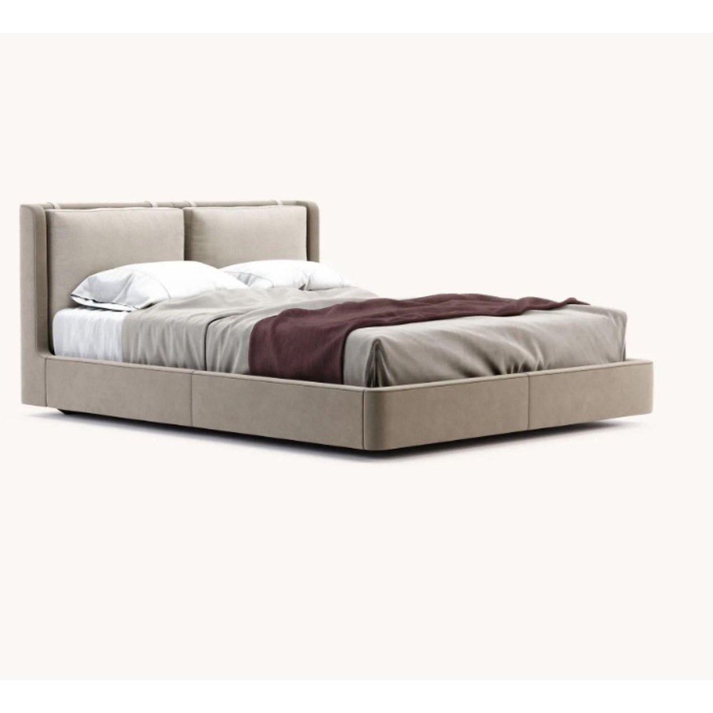 Queen Size Kelsi bed by Domkapa Dimensions: W 168 x D 231 x H 95 cm. Materials: Microfiber (Tarn 03), patterned fabric (Verdon 01), rose gold brushed. May be available separately in different materials. Kelsi is an outstanding design and handcraft work, combining unique production techniques and fine materials to create a rare piece. The wingback headboard is the focal point of this bed, rich in details. It features two large padded cushions for extreme comfort, supported by two lavish metallic tubes. Along with the structure, you can find other small details, the result of exclusive craftsmanship. Domkapa holds a tremendous passion for detailed stitching, presenting several similarities to the haute-couture philosophy focused on the value of a “made by hand”. Based in Portugal, Domkapa was founded in 2009 as a Private Label. The long and fruitful path, full of experience and achievements inspired the brand’s new identity and independence, in 2017. Domkapa challenges its team to create the perfect daily meeting between design and comfort in each piece of the brand’s collections. Our design team works side by side with the production, and this organic synergy allows the creation of innovative designs.
