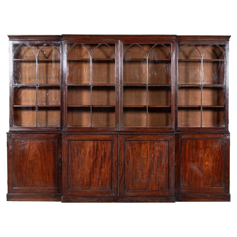 Libreria Breakfront in mogano smaltato, inizio XIX secolo, inizio XIX secolo